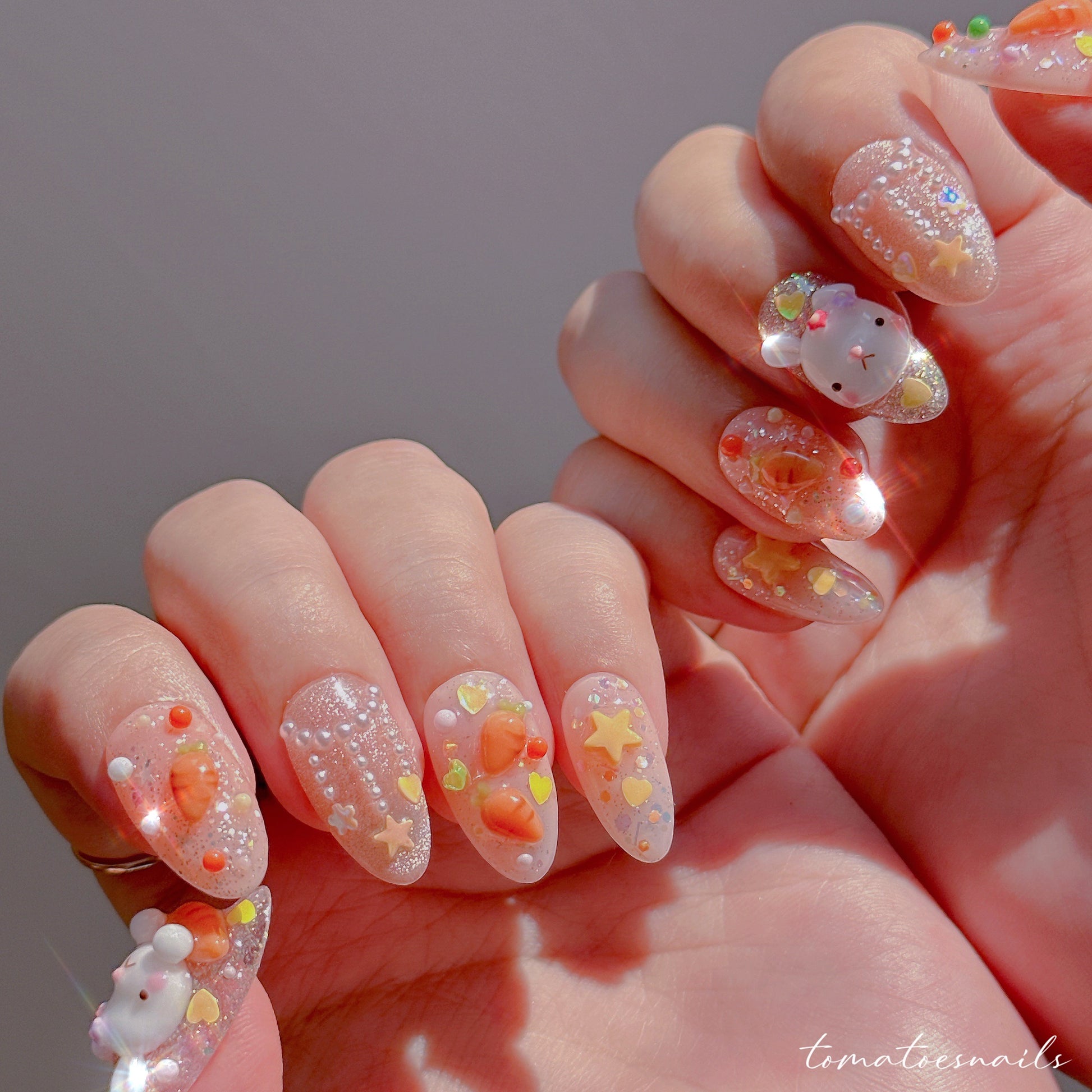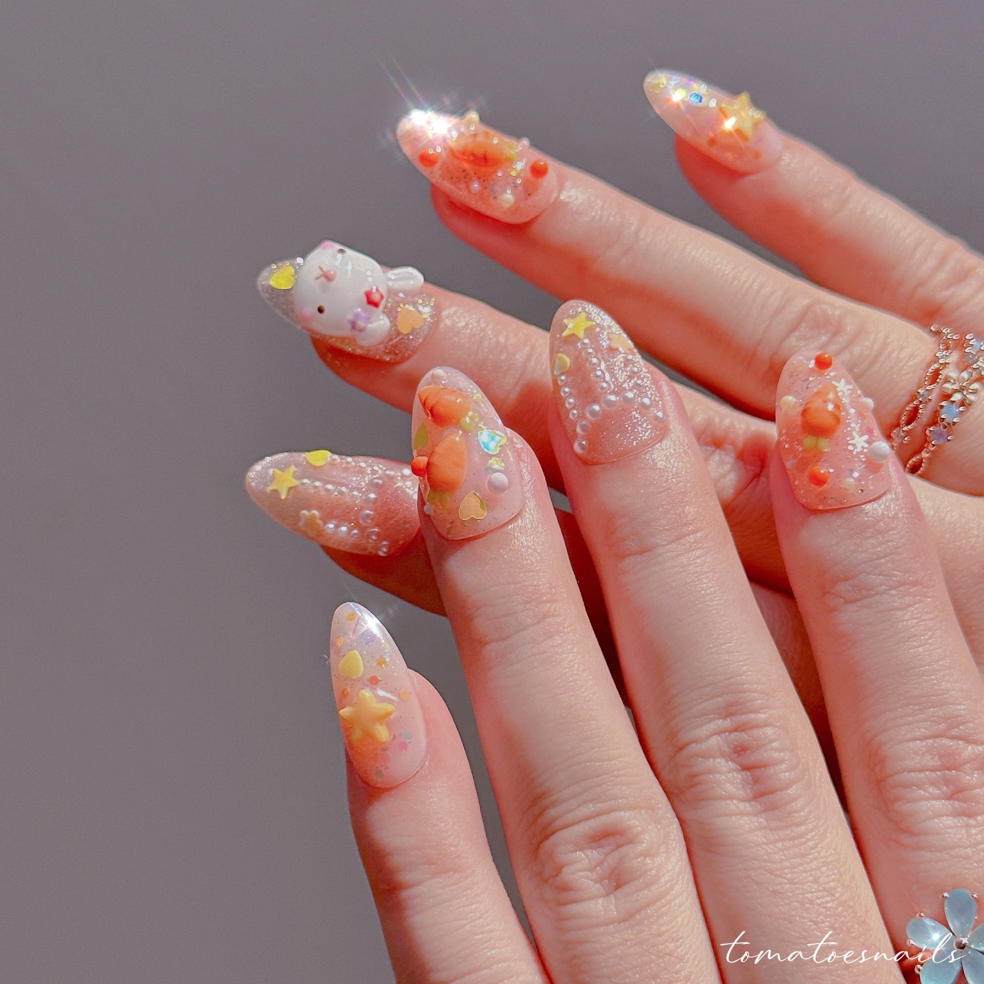 If you order a shorter nail length, some charms will need to be adjusted to make the design look pretty and fit on a smaller nail tip ʕ•́ᴥ•̀ʔっ.