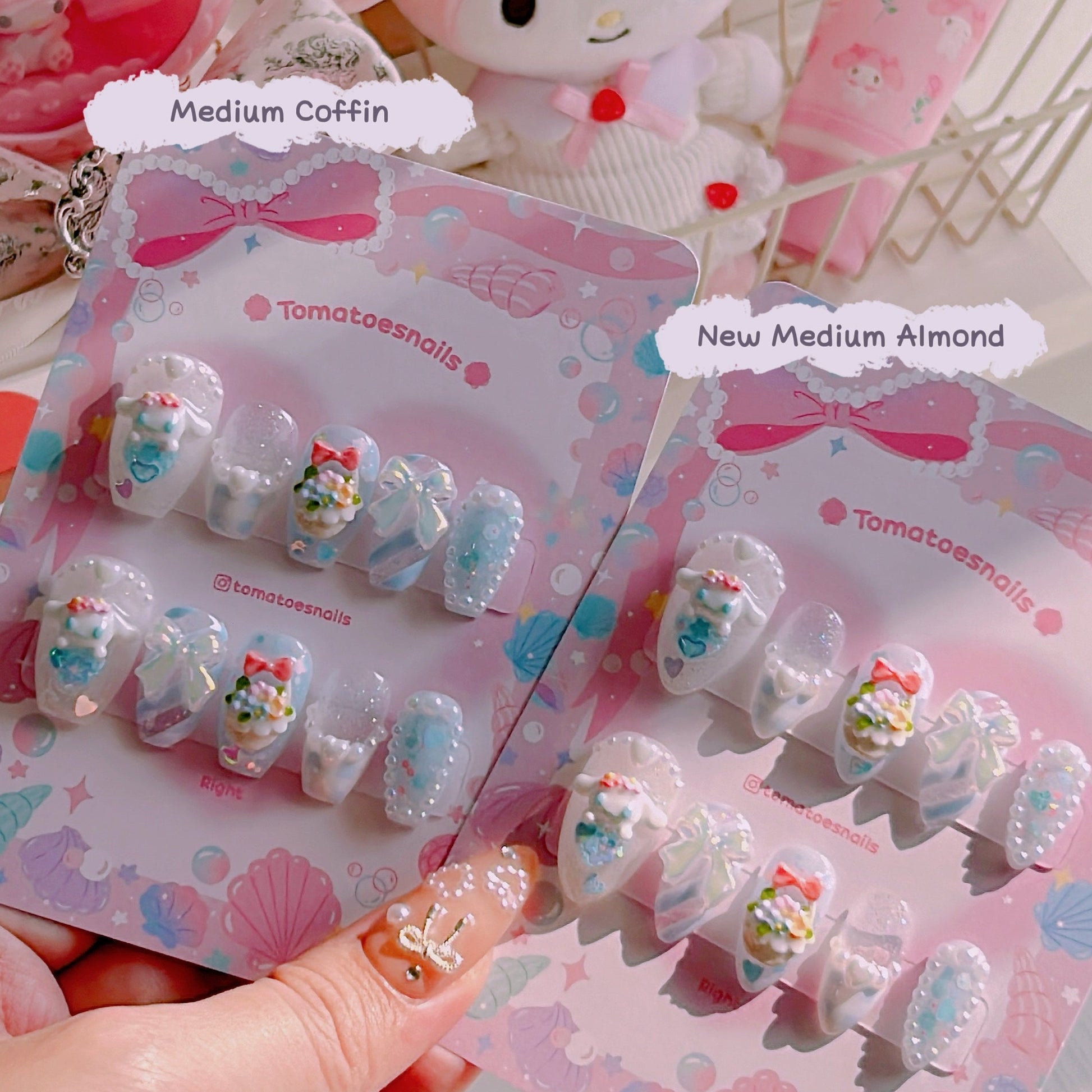 If you order a shorter nail length, some charms will need to be adjusted to make the design look pretty and fit on a smaller nail tip ʕ•́ᴥ•̀ʔっ.