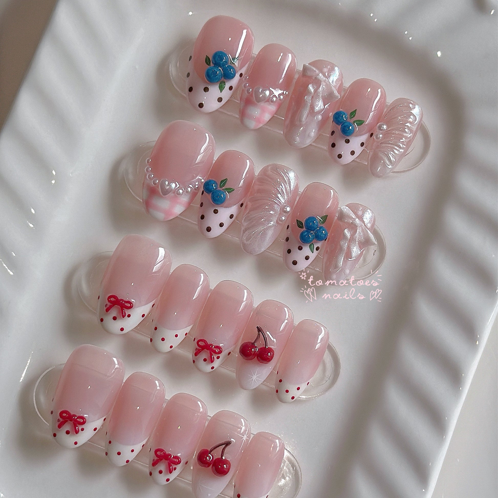 If you order a shorter nail length, some charms will need to be adjusted to make the design look pretty and fit on a smaller nail tip ʕ•́ᴥ•̀ʔっ.