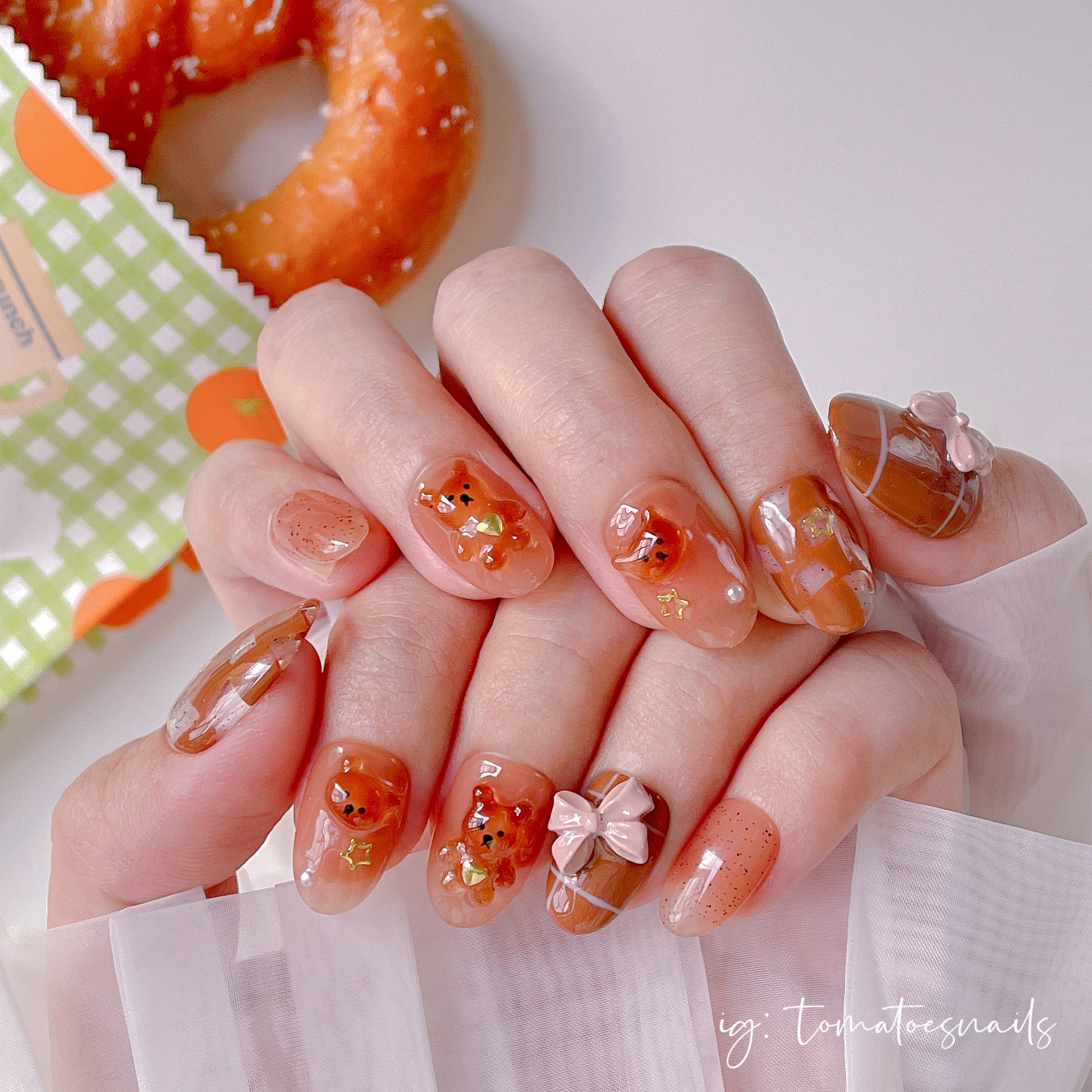If you order a shorter nail length, some charms will need to be adjusted to make the design look pretty and fit on a smaller nail tip ʕ•́ᴥ•̀ʔっ.
