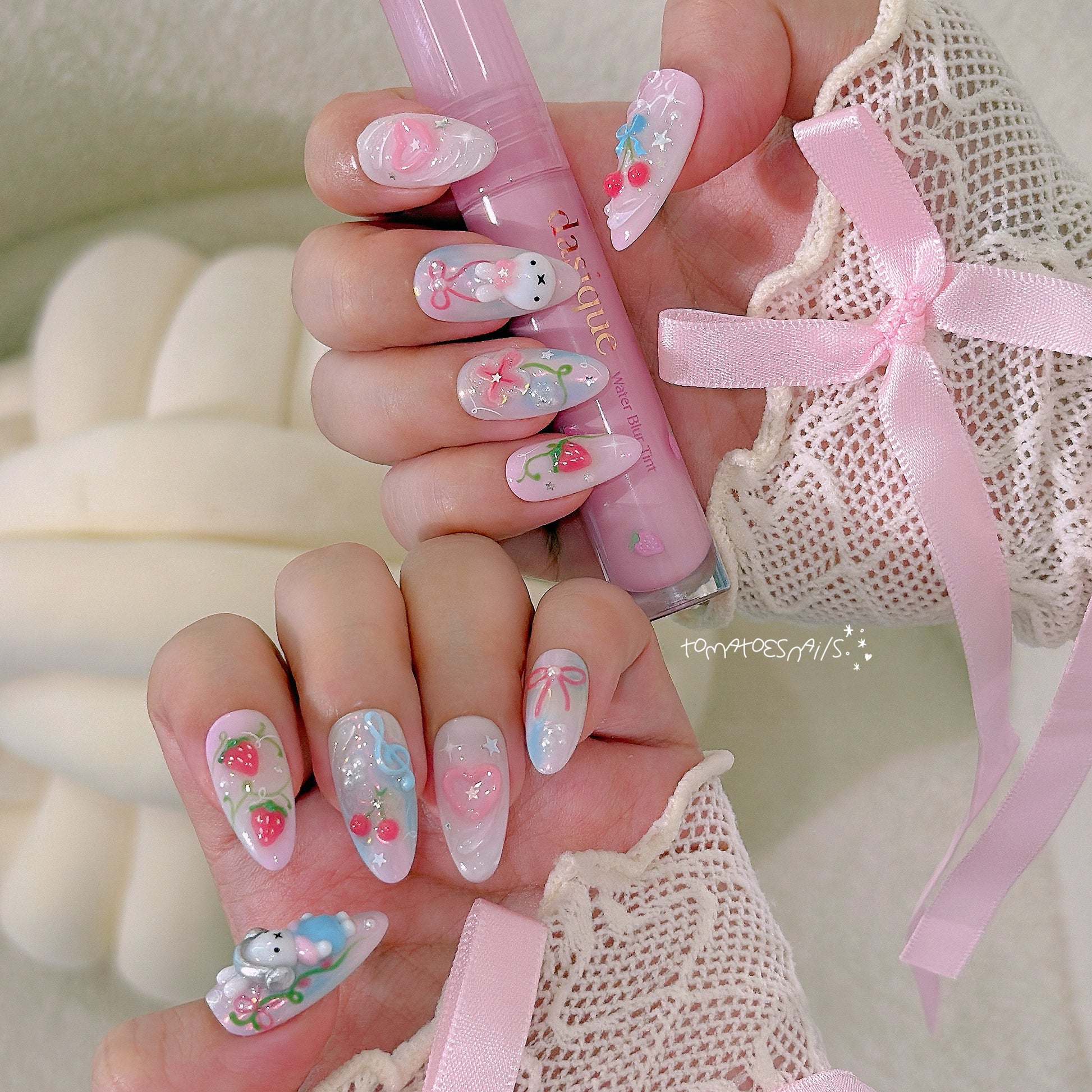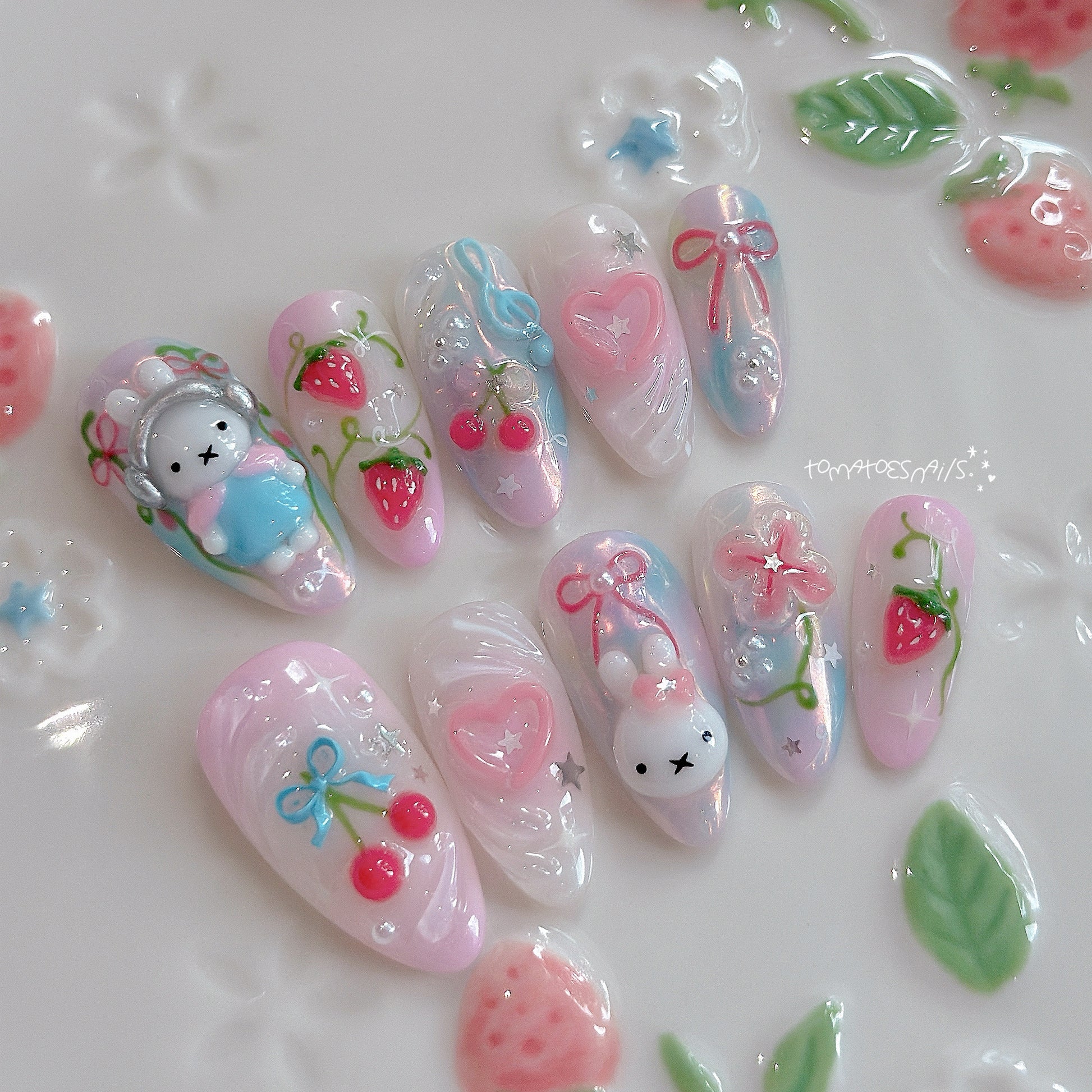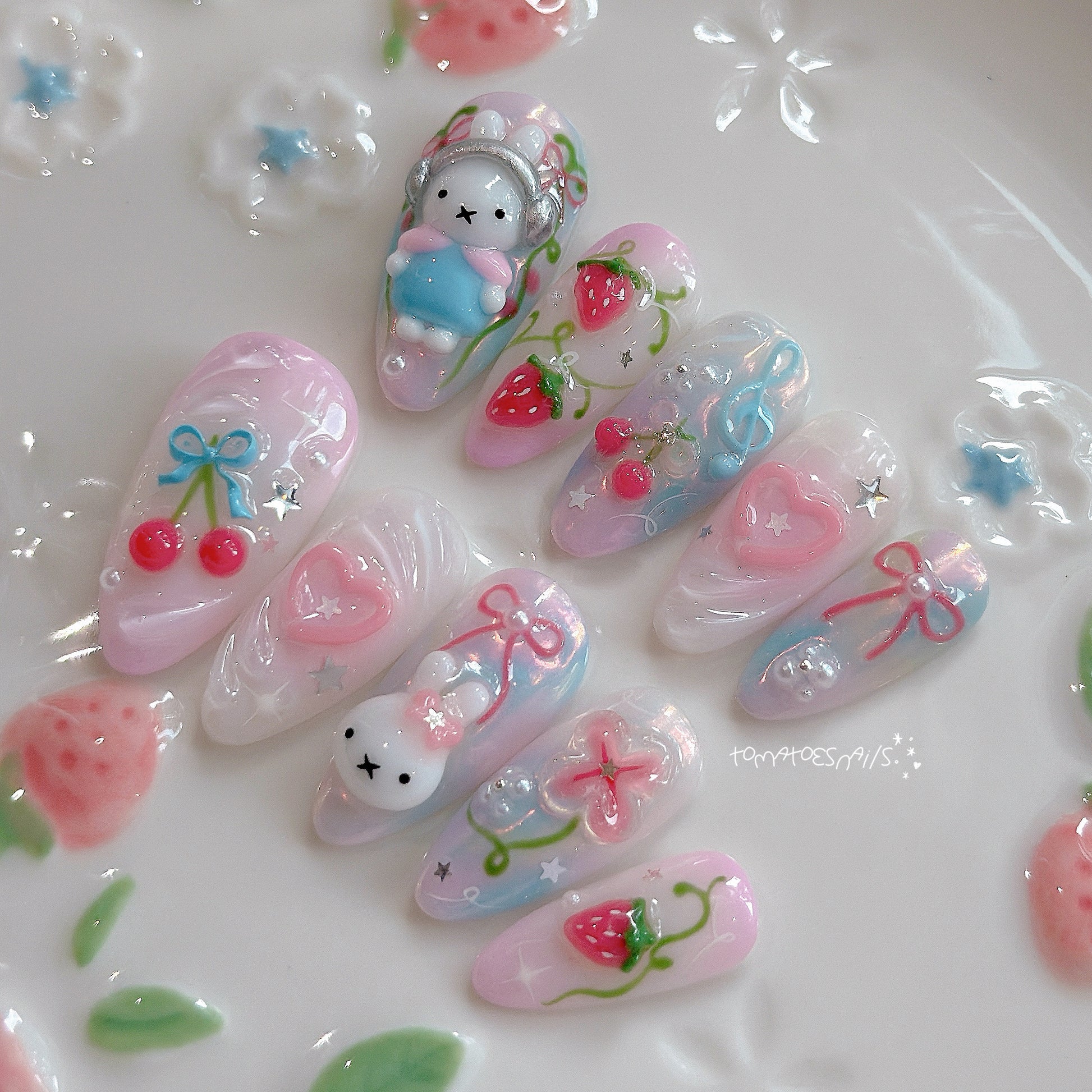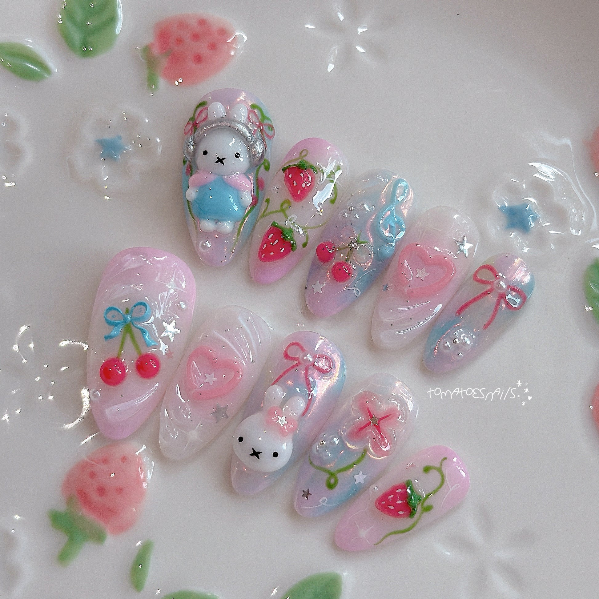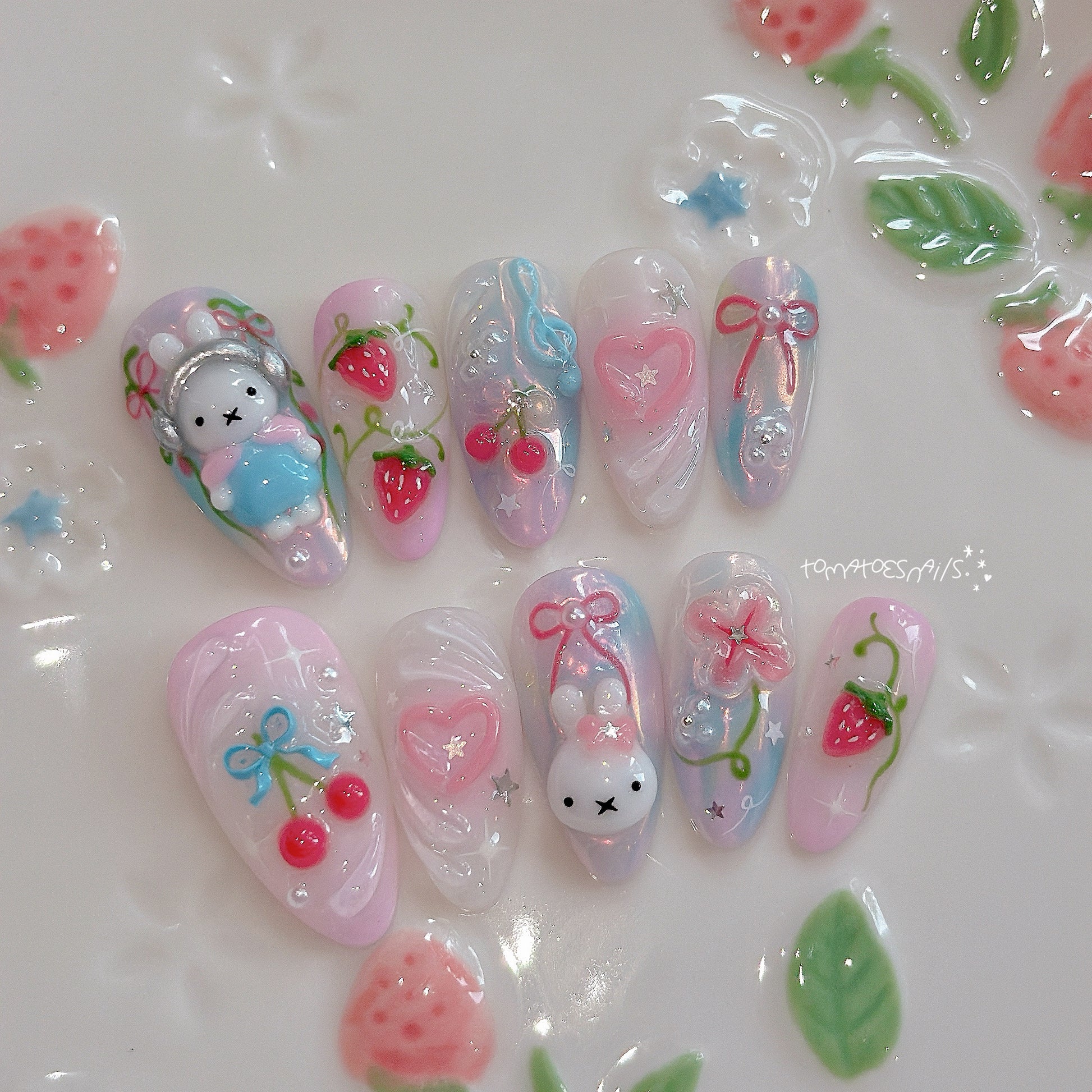 If you order a shorter nail length, some charms will need to be adjusted to make the design look pretty and fit on a smaller nail tip ʕ•́ᴥ•̀ʔっ.