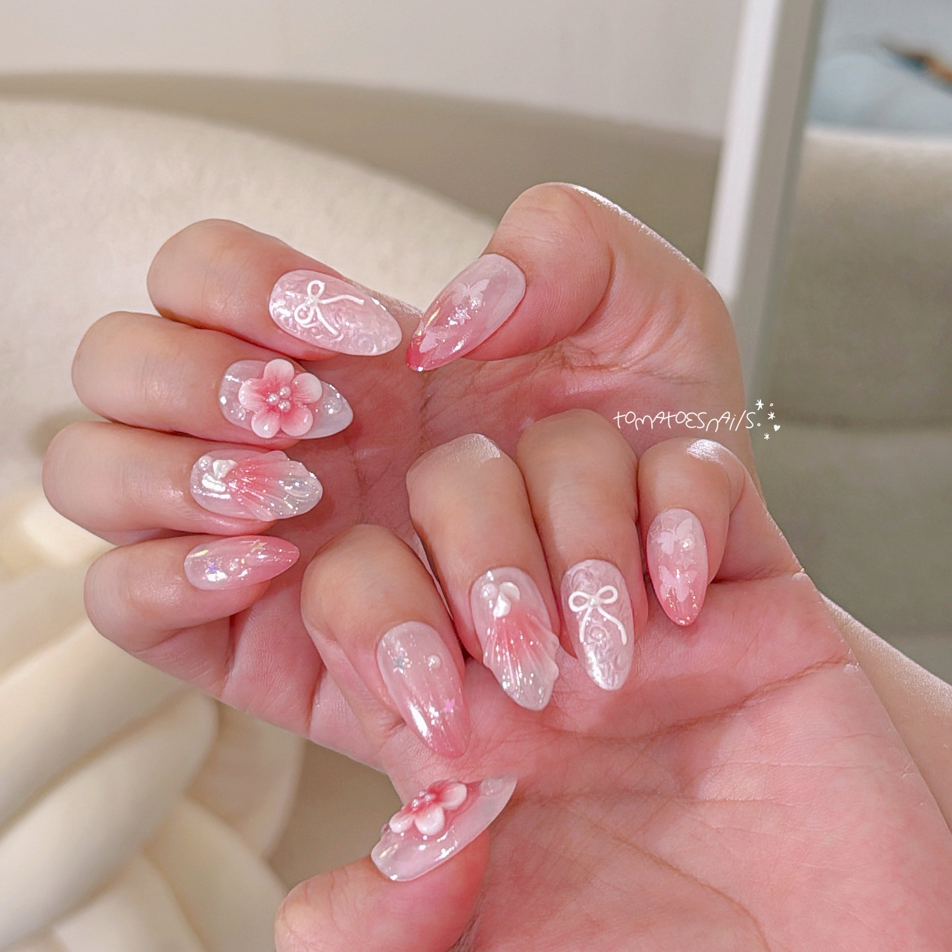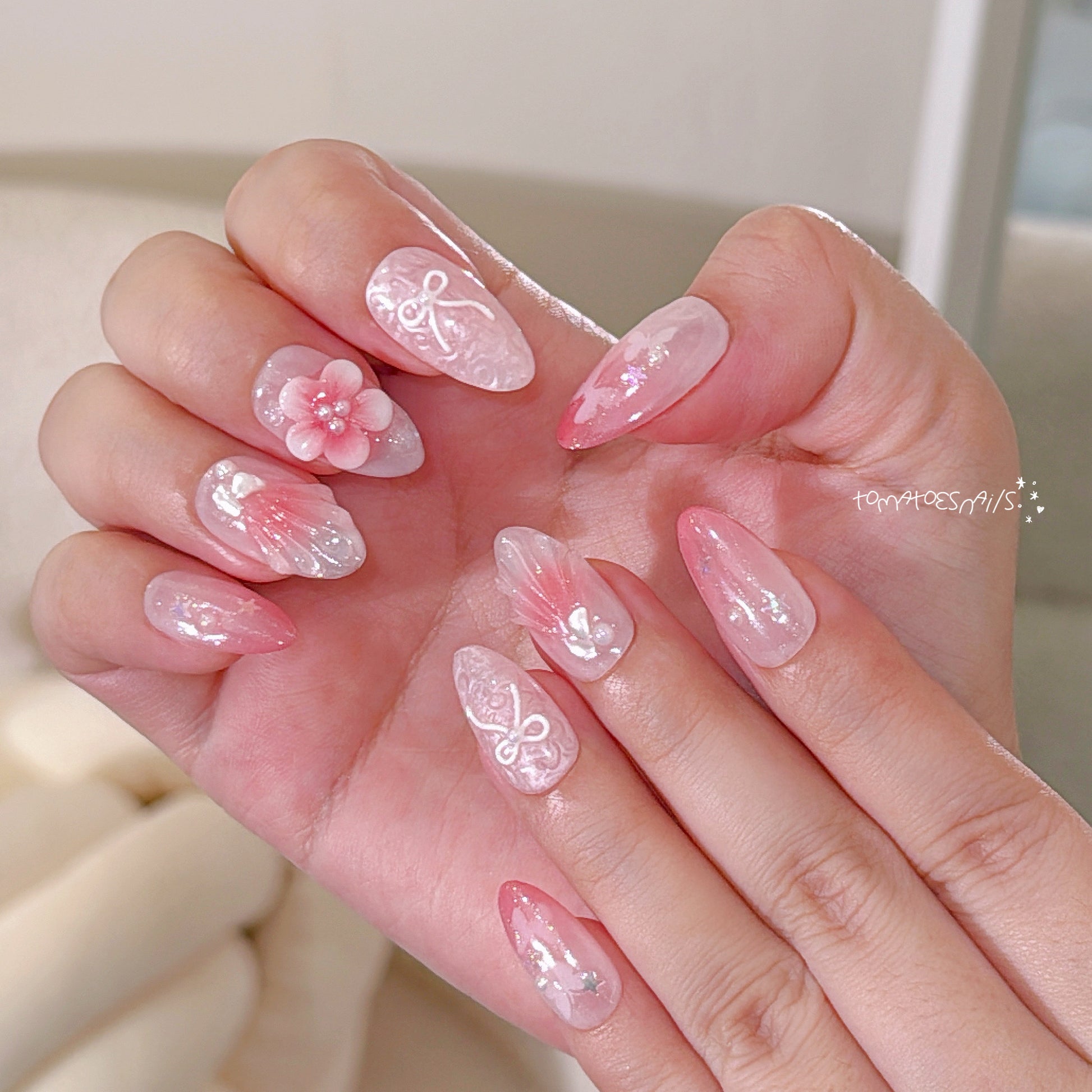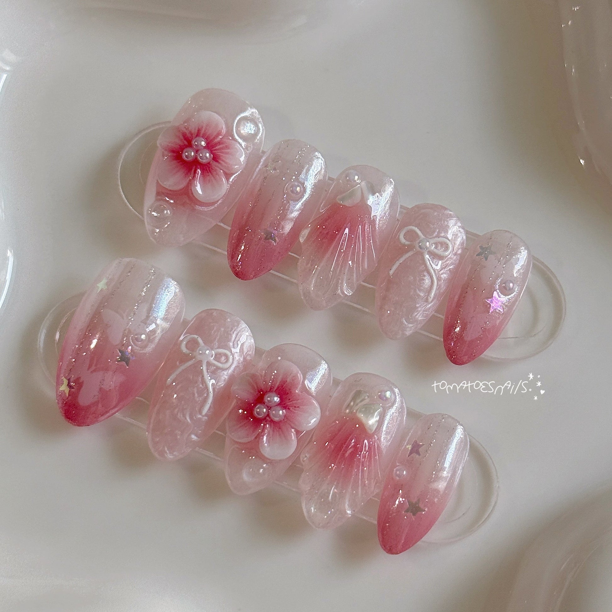 If you order a shorter nail length, some charms will need to be adjusted to make the design look pretty and fit on a smaller nail tip ʕ•́ᴥ•̀ʔっ.