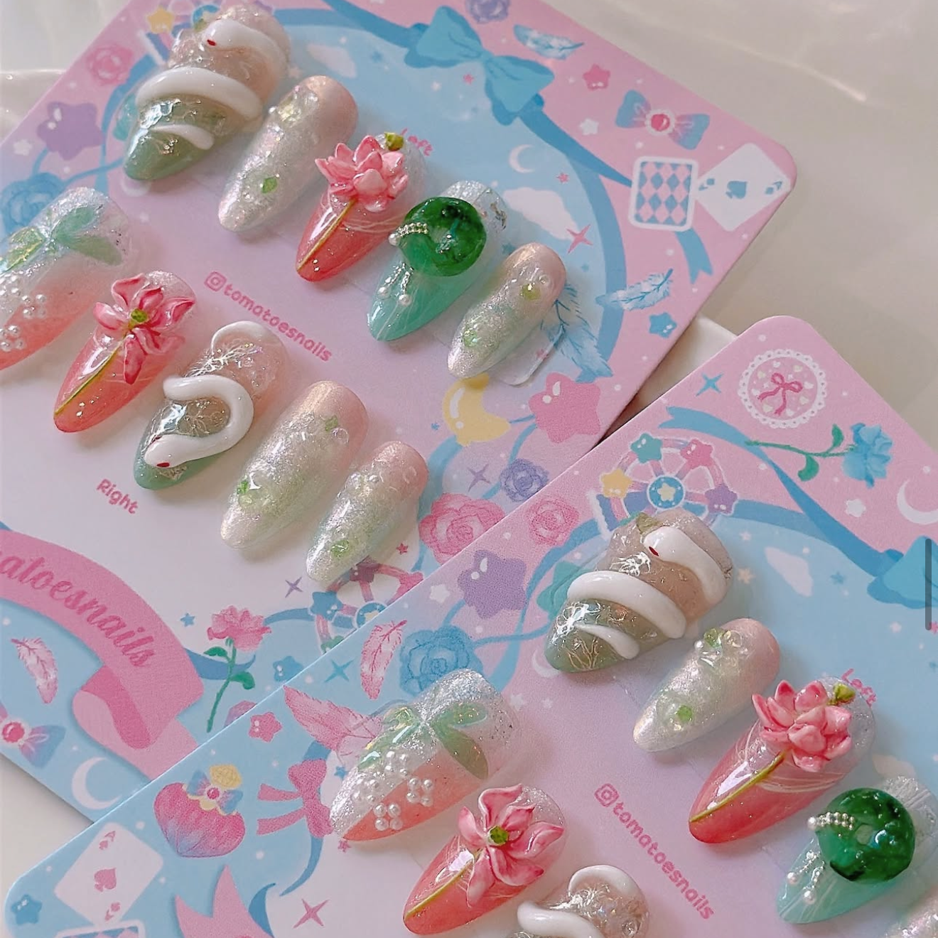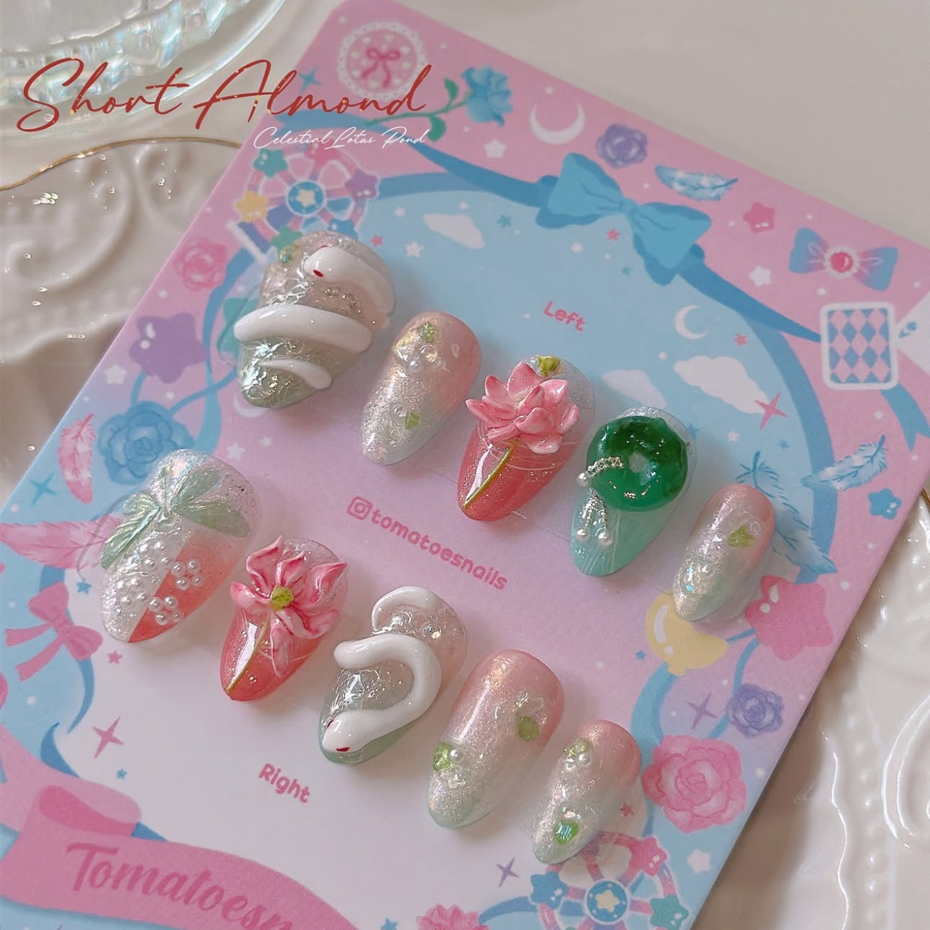 If you order a shorter nail length, some charms will need to be adjusted to make the design look pretty and fit on a smaller nail tip ʕ•́ᴥ•̀ʔっ.