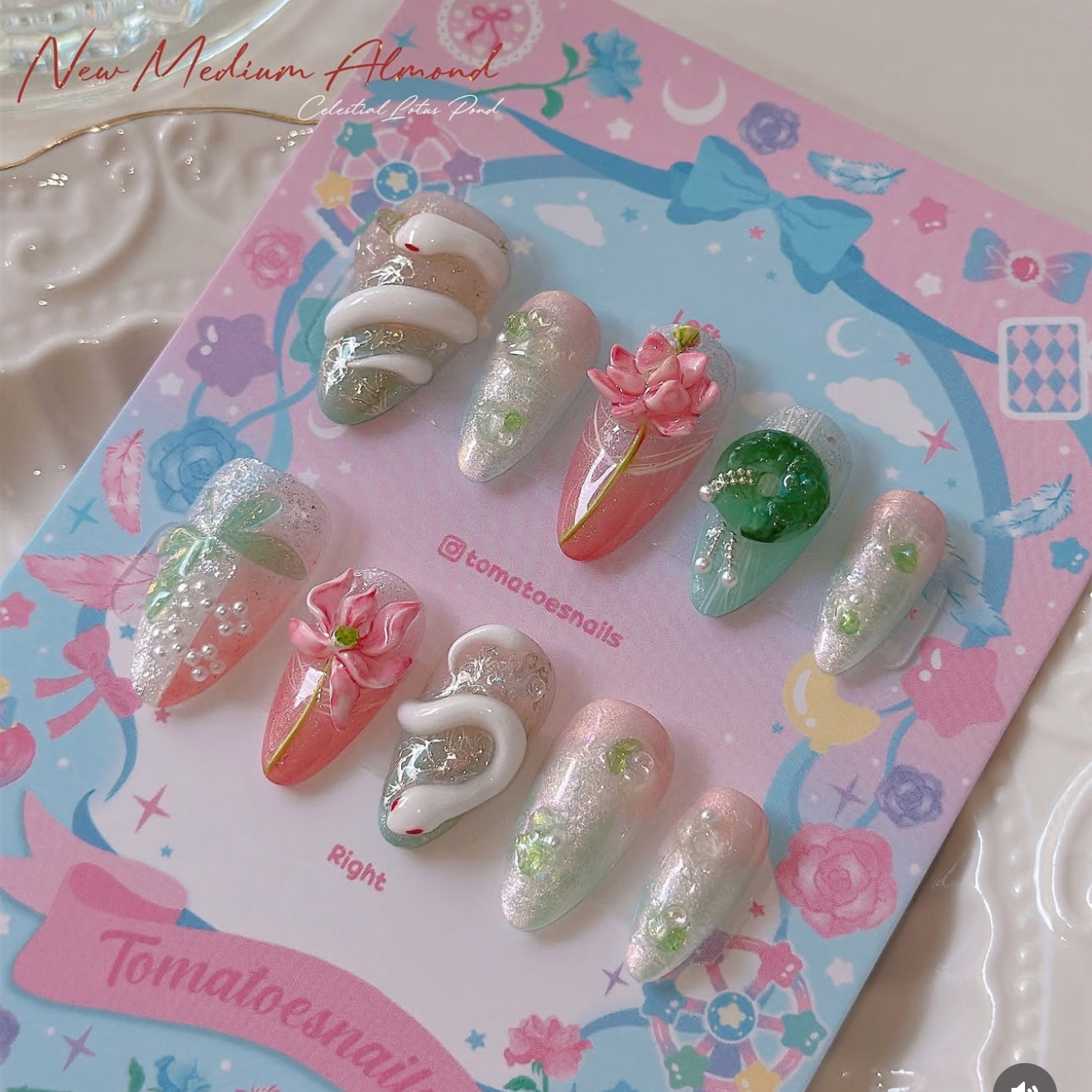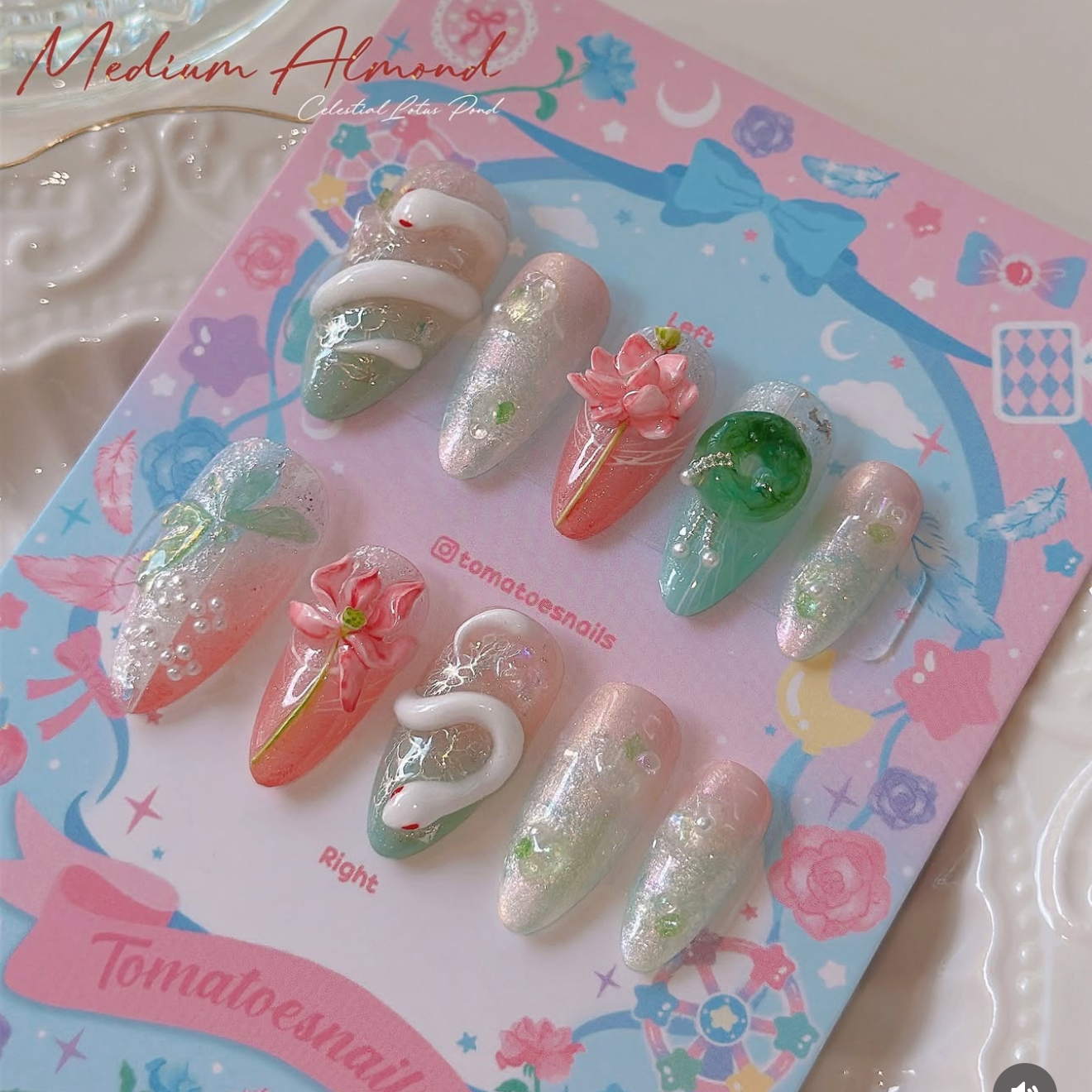 ☆ CUSTOM SIZE: Please leave a note of your own measurements if you don't have my sizing kit in millimeters; for example: Left & Right = thumb 15/index 11/mid 12/ring 11/pinky 8 mm. OR nail size numbers according to the standard chart (e.g., 1/5/4/5/8)