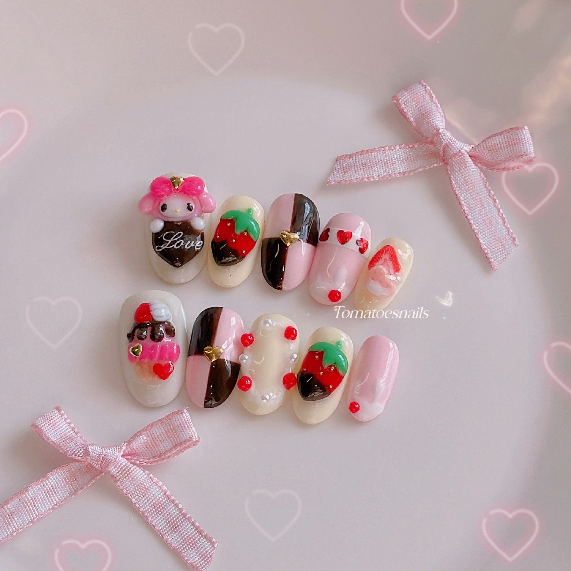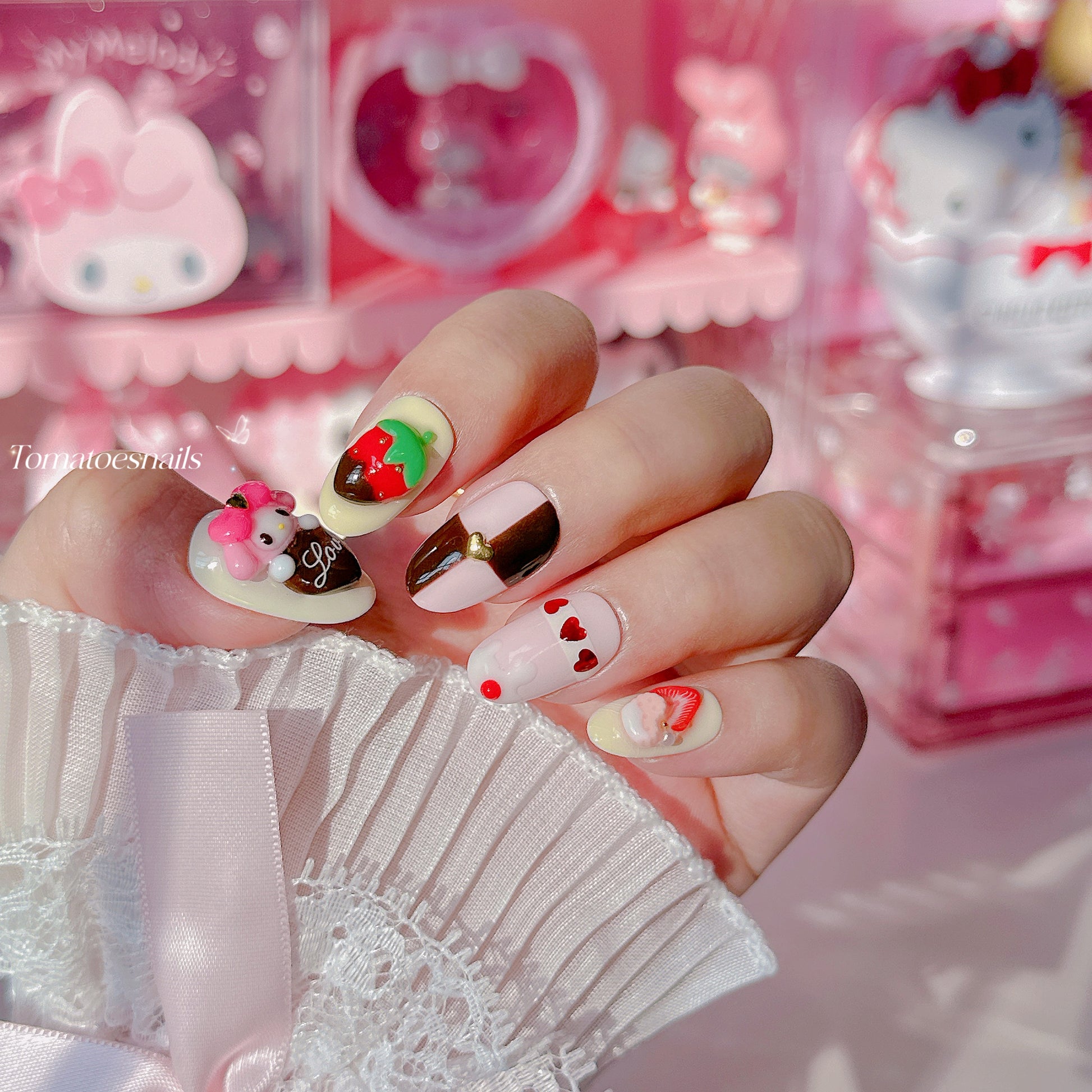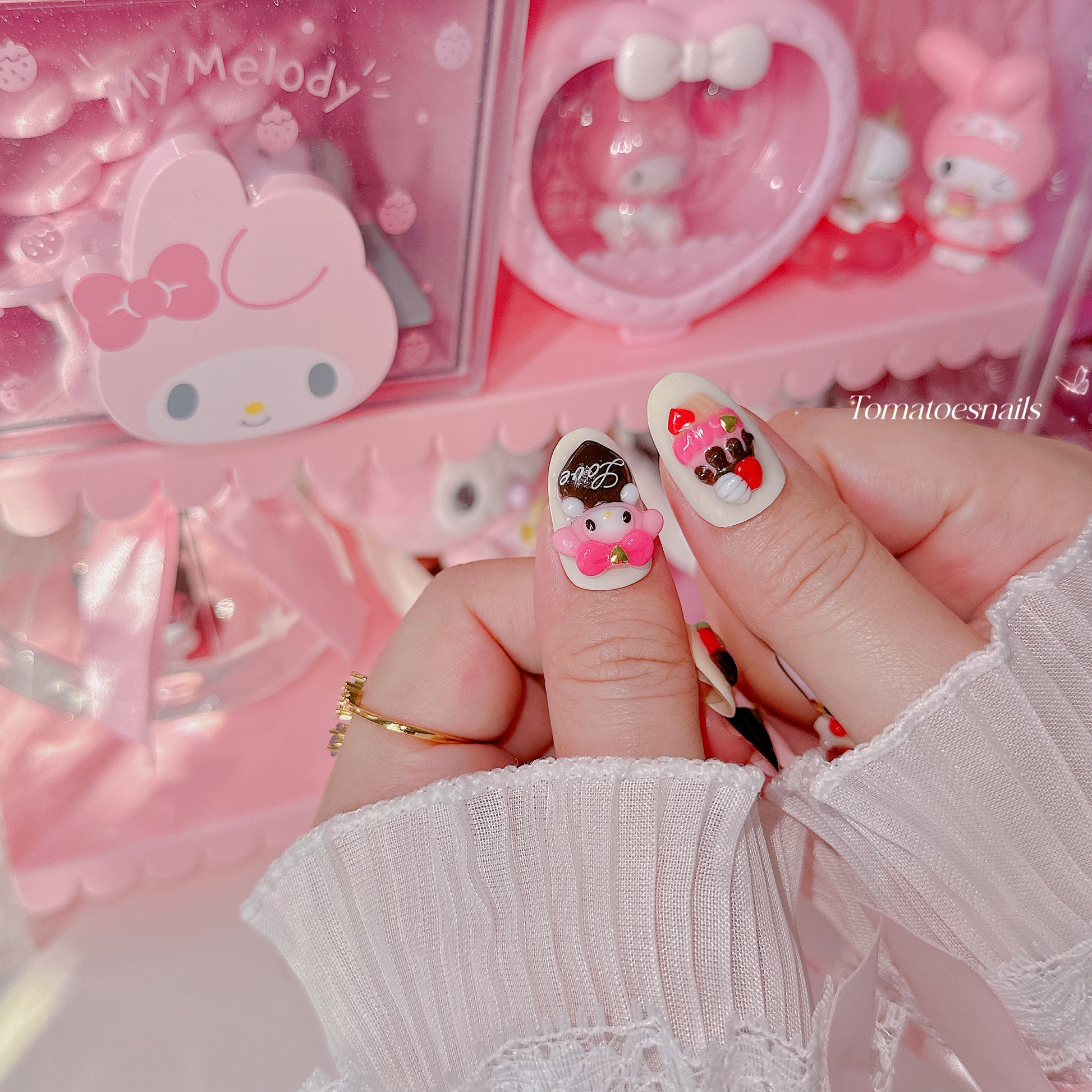 my melody, sanrio nails