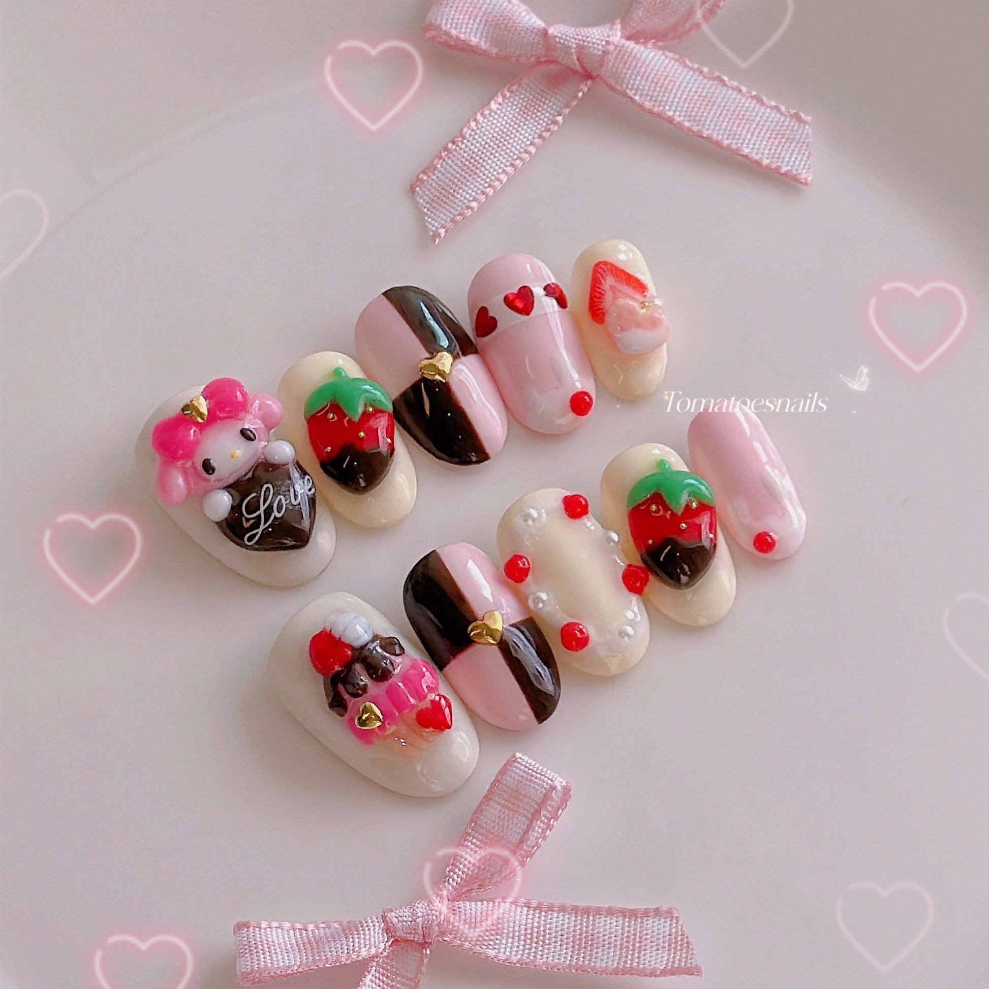 If you order a shorter nail length, some charms will need to be adjusted to make the design look pretty and fit on a smaller nail tip ʕ•́ᴥ•̀ʔっ.