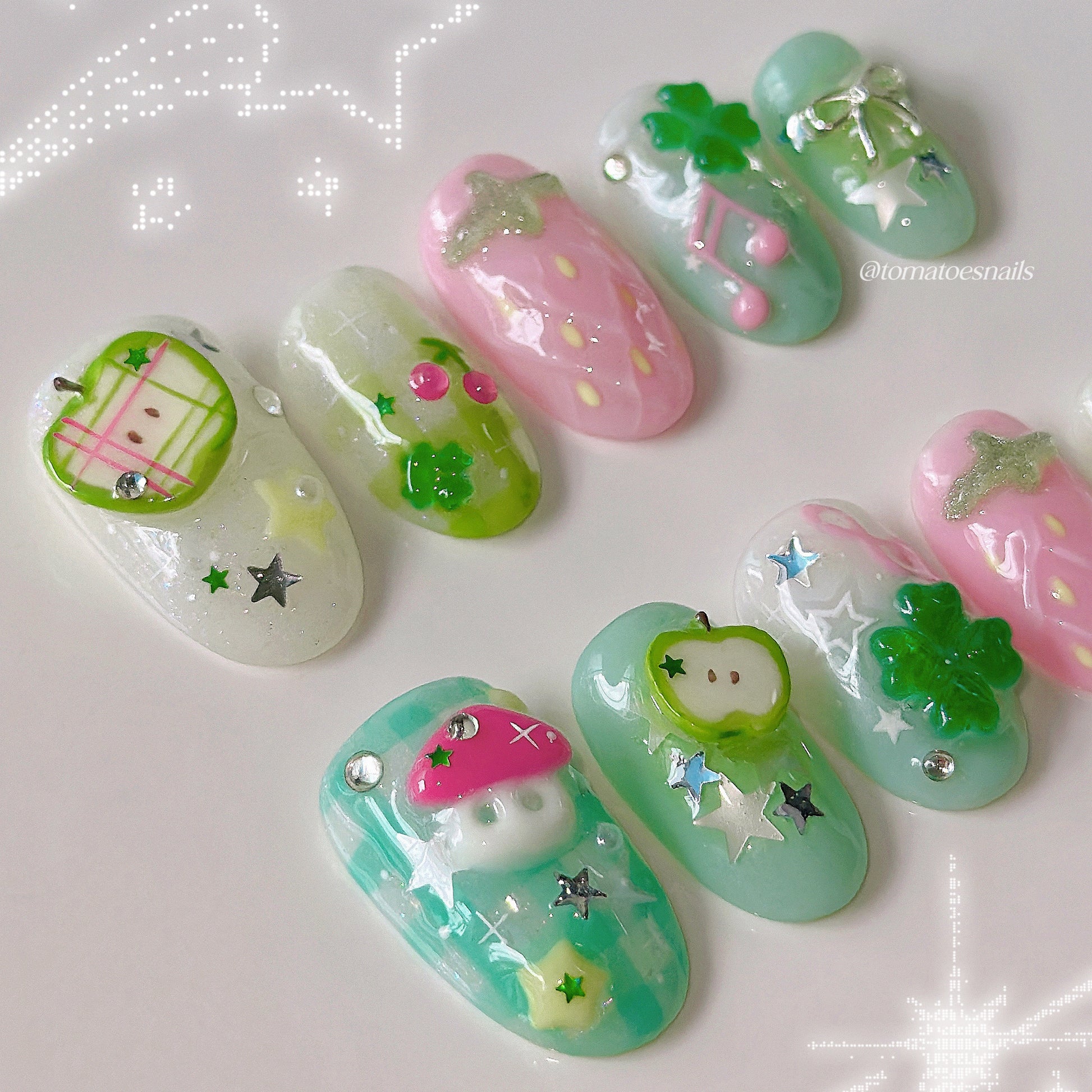 If you order a shorter nail length, some charms will need to be adjusted to make the design look pretty and fit on a smaller nail tip Źā¢Ģį“„ā¢ĢŹć£.