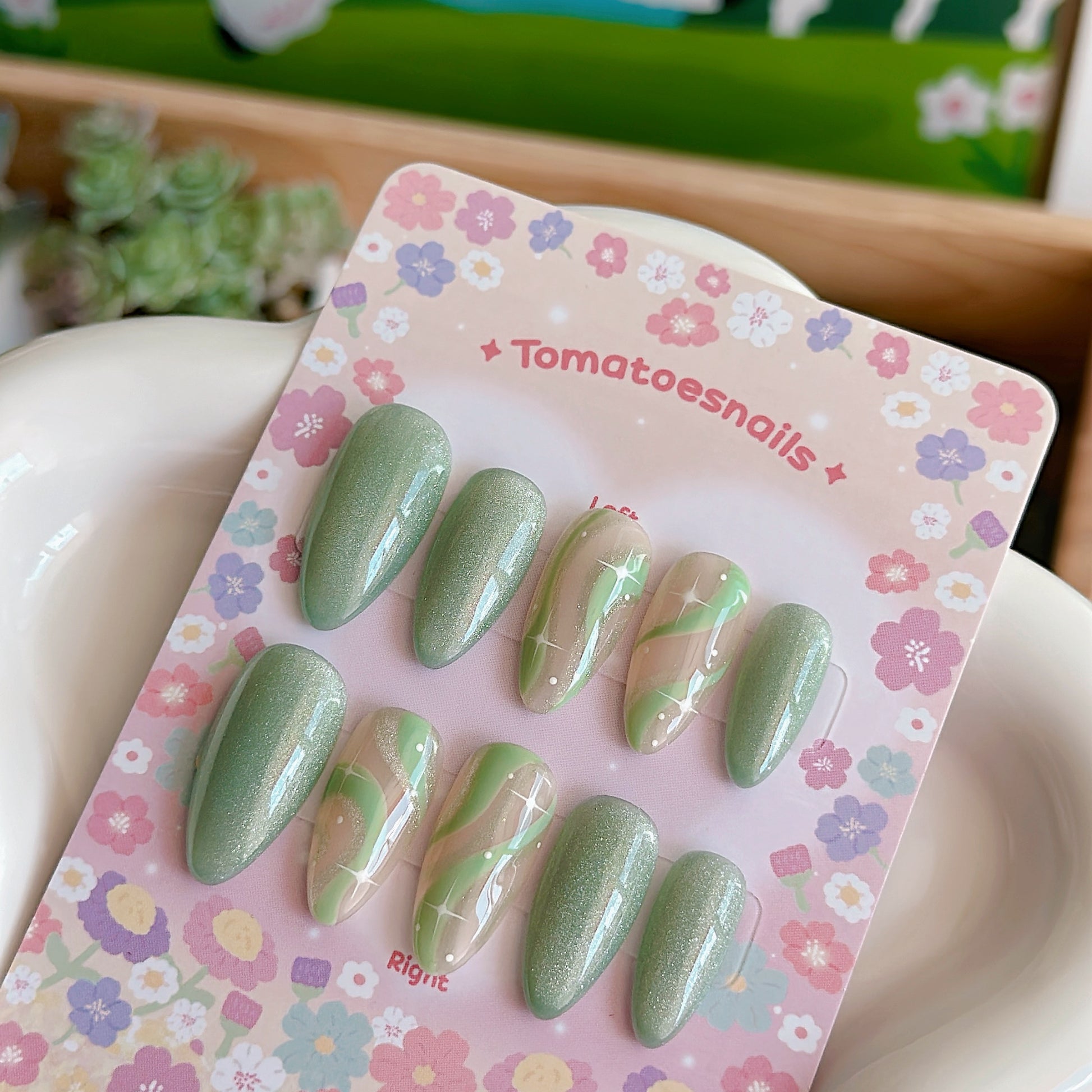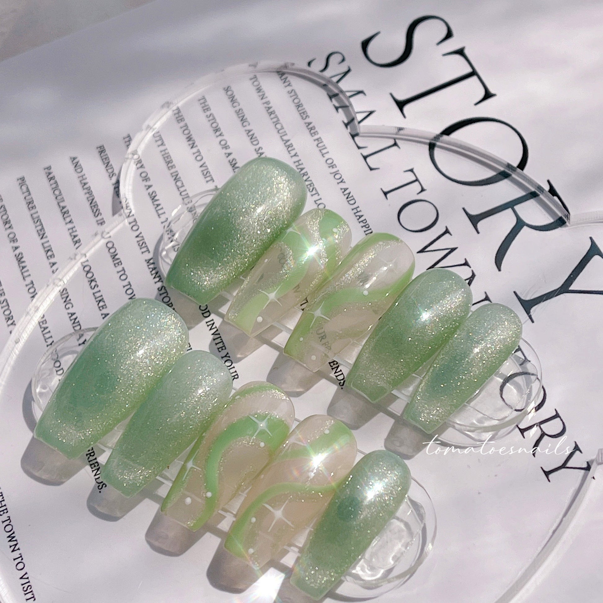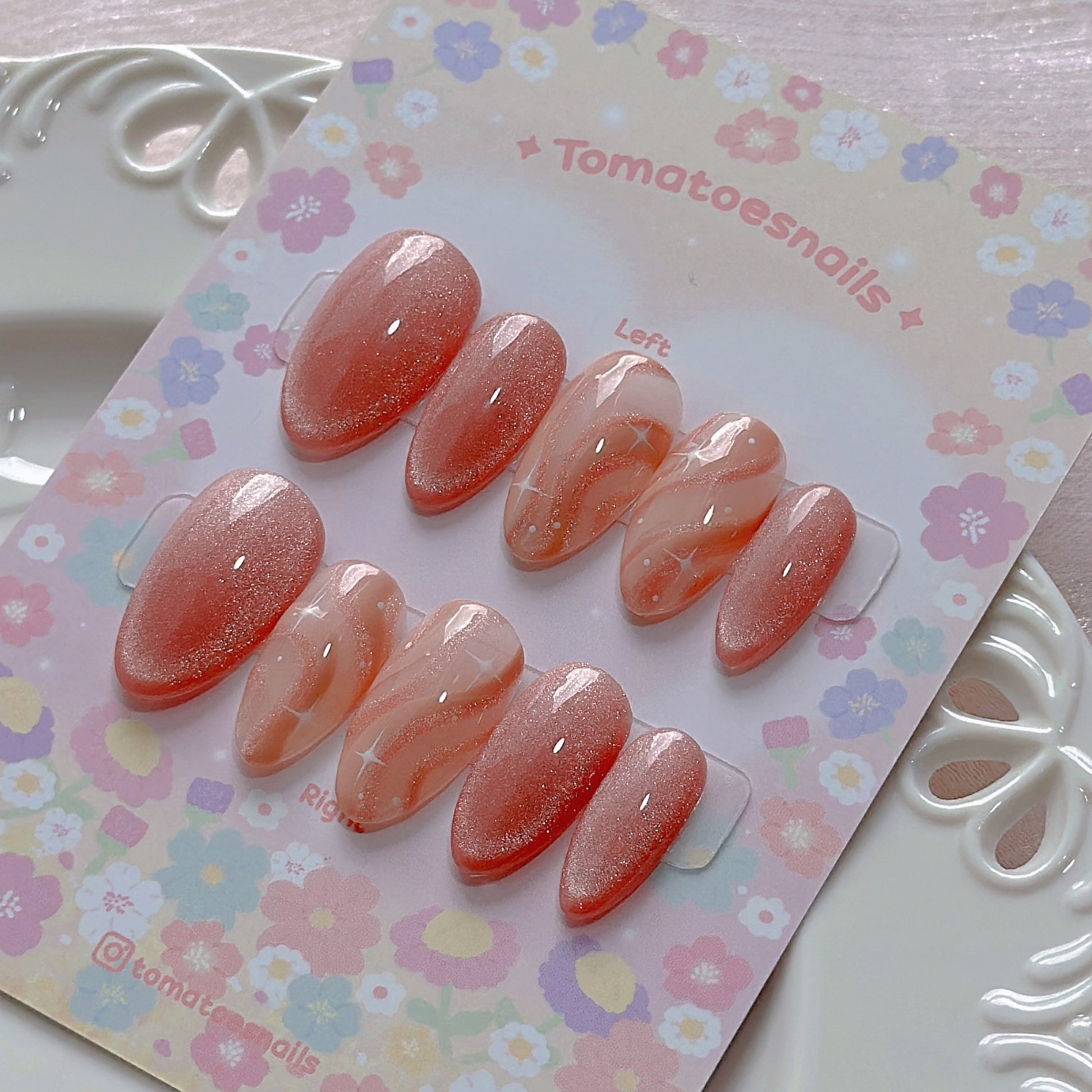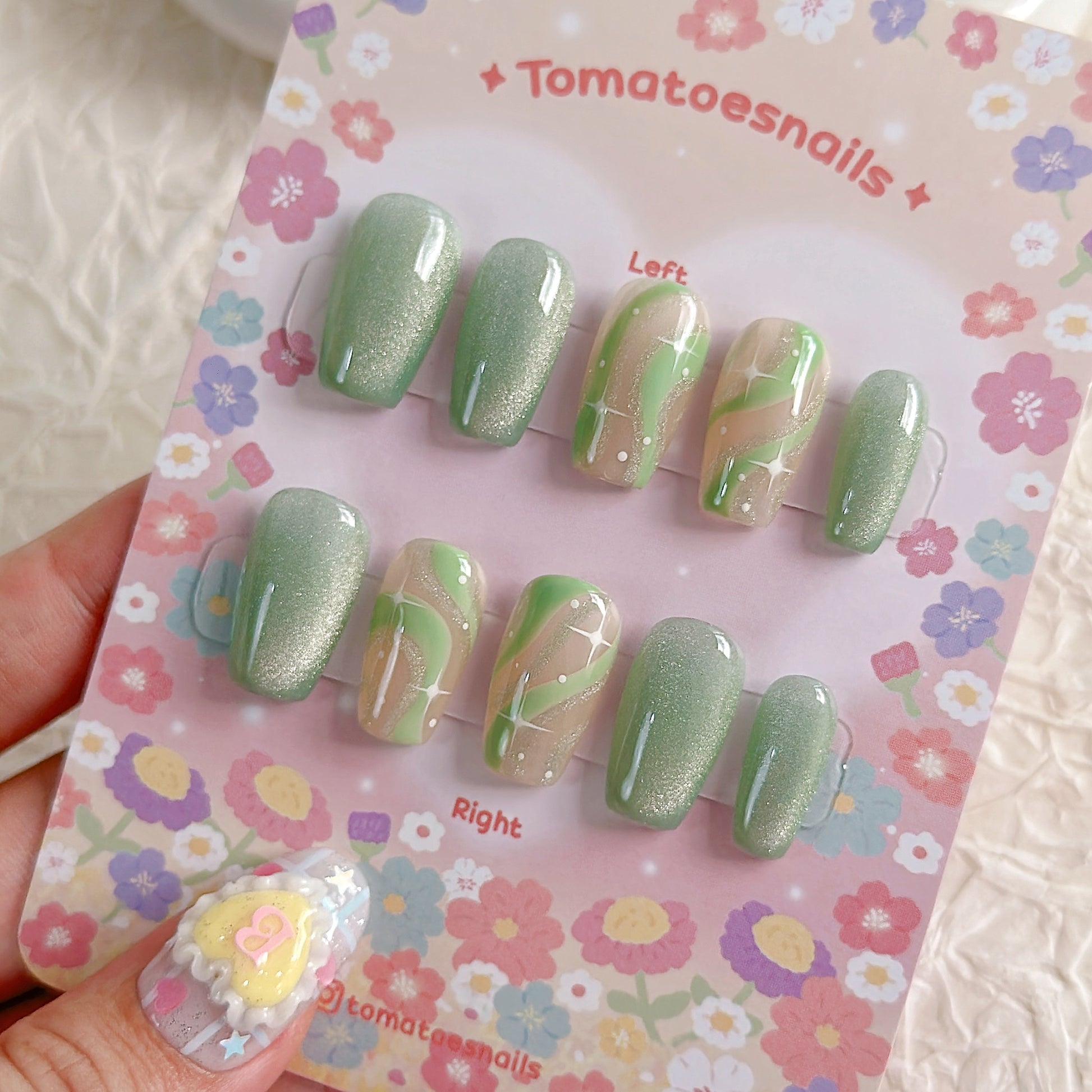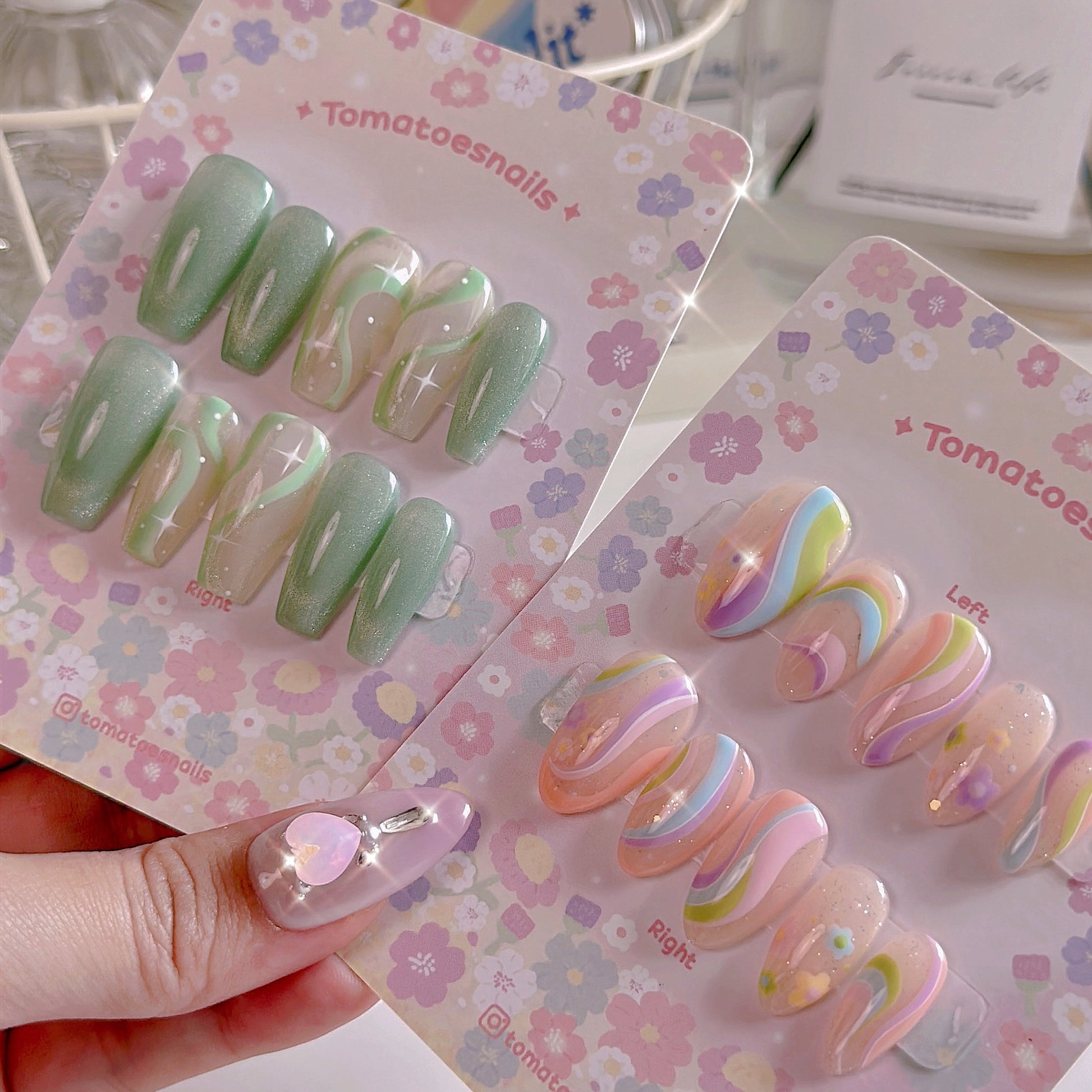 ☆ CUSTOM SIZE: Please leave a note of your own measurements if you don't have my sizing kit in millimeters; for example: Left & Right = thumb 15/index 11/mid 12/ring 11/pinky 8 mm. OR nail size numbers according to the standard chart (e.g., 1/5/4/5/8)