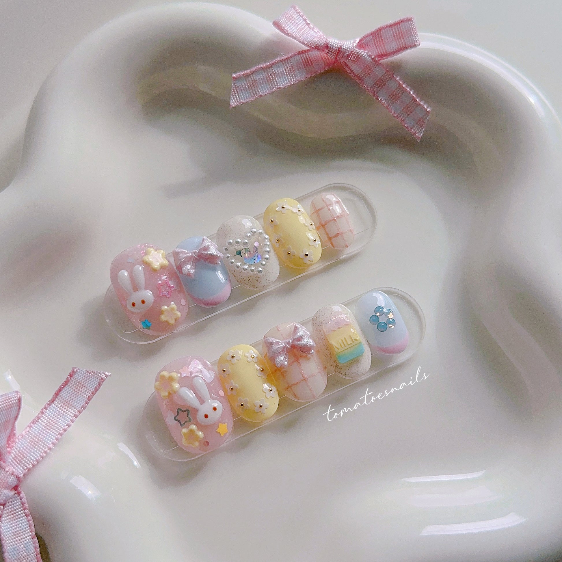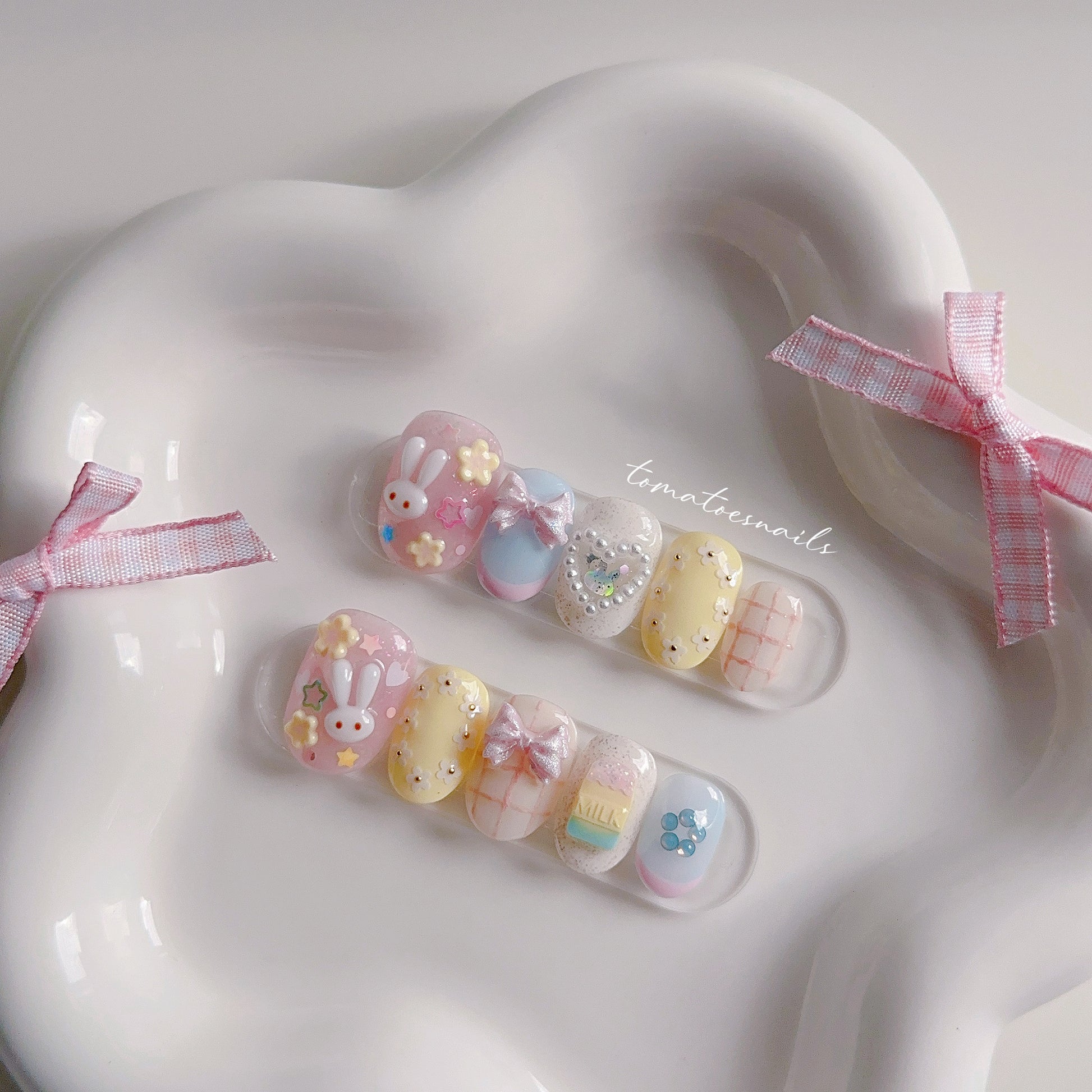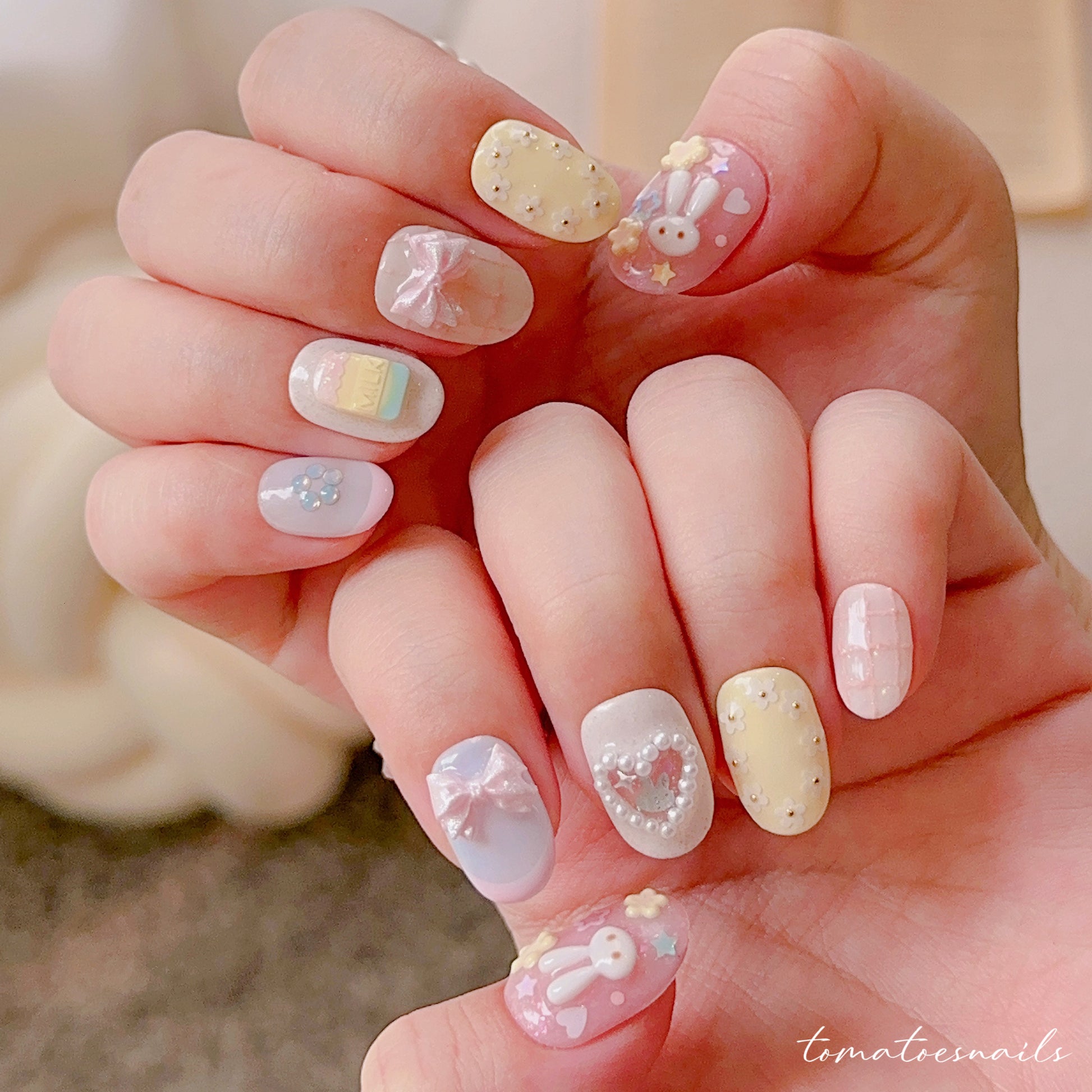 If you order a shorter nail length, some charms will need to be adjusted to make the design look pretty and fit on a smaller nail tip ʕ•́ᴥ•̀ʔっ.