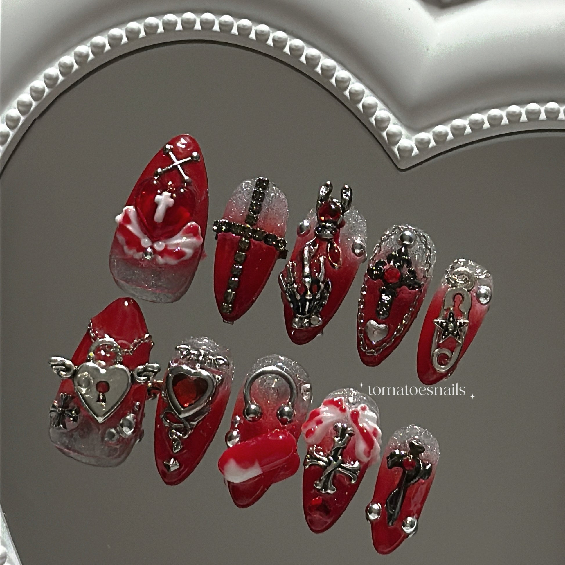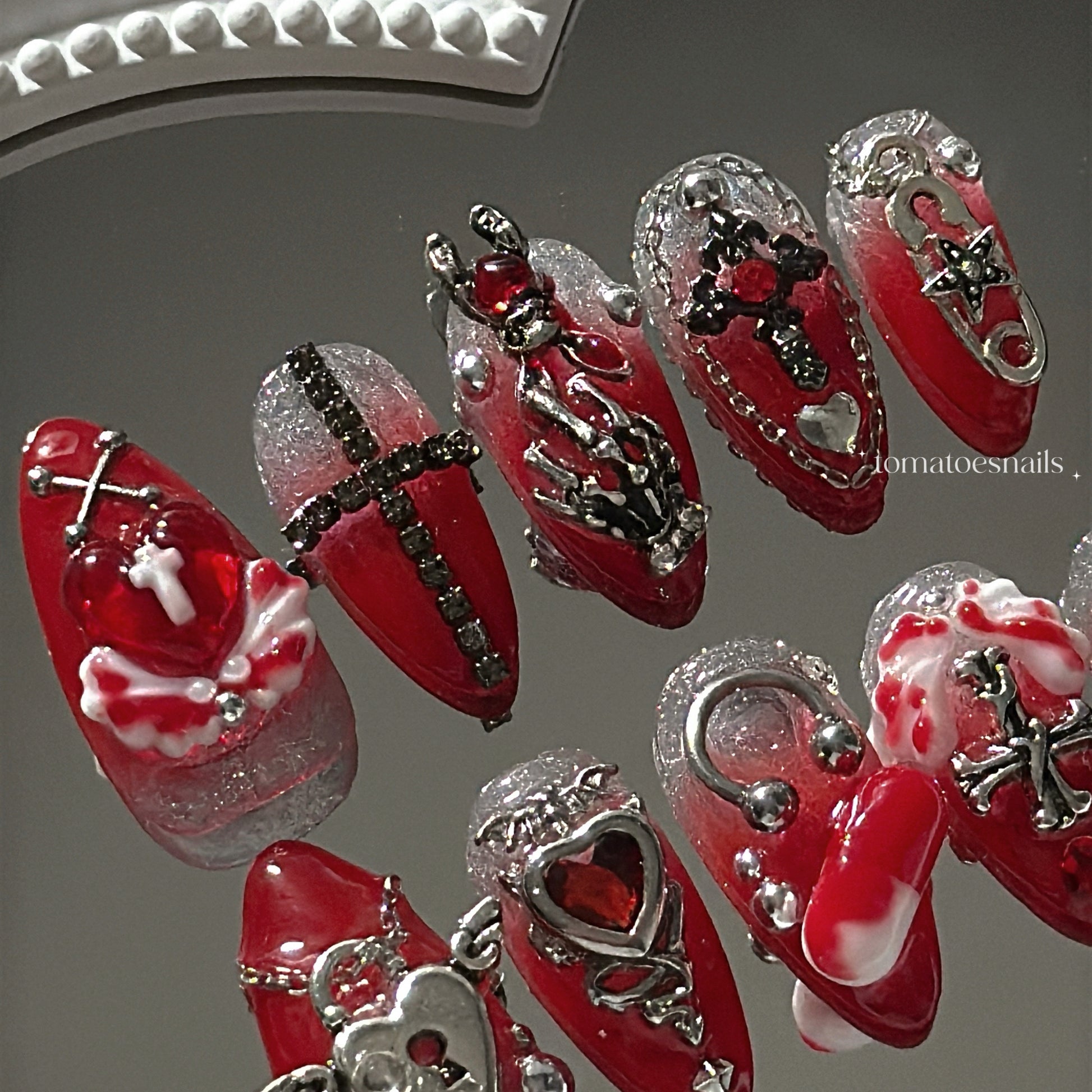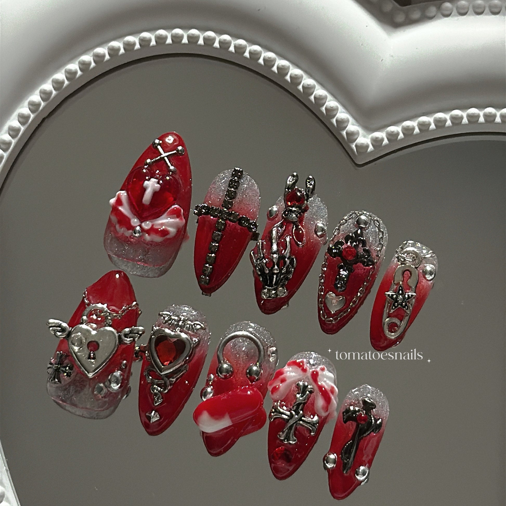 ☆ CUSTOM SIZE: Please leave a note of your own measurements if you don't have my sizing kit in millimeters; for example: Left & Right = thumb 15/index 11/mid 12/ring 11/pinky 8 mm. OR nail size numbers according to the standard chart (e.g., 1/5/4/5/8)