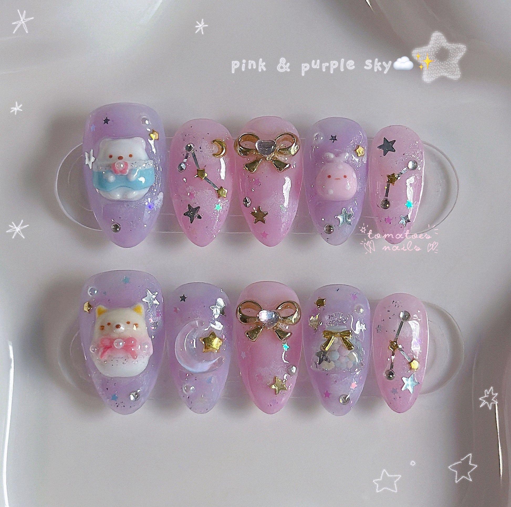 If you order a shorter nail length, some charms will need to be adjusted to make the design look pretty and fit on a smaller nail tip ʕ•́ᴥ•̀ʔっ.