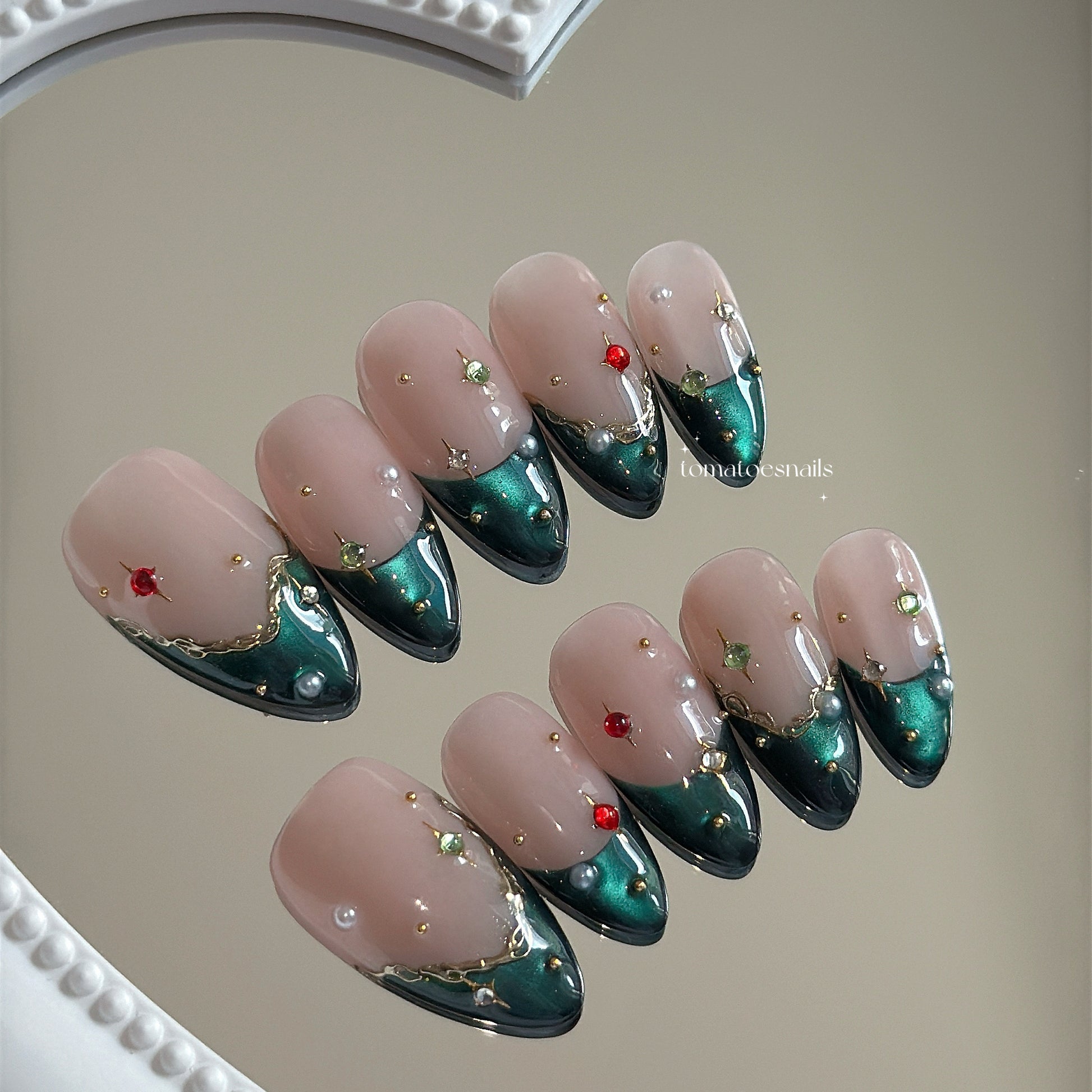 ☆ CUSTOM SIZE: Please leave a note of your own measurements if you don't have my sizing kit in millimeters; for example: Left & Right = thumb 15/index 11/mid 12/ring 11/pinky 8 mm. OR nail size numbers according to the standard chart (e.g., 1/5/4/5/8)