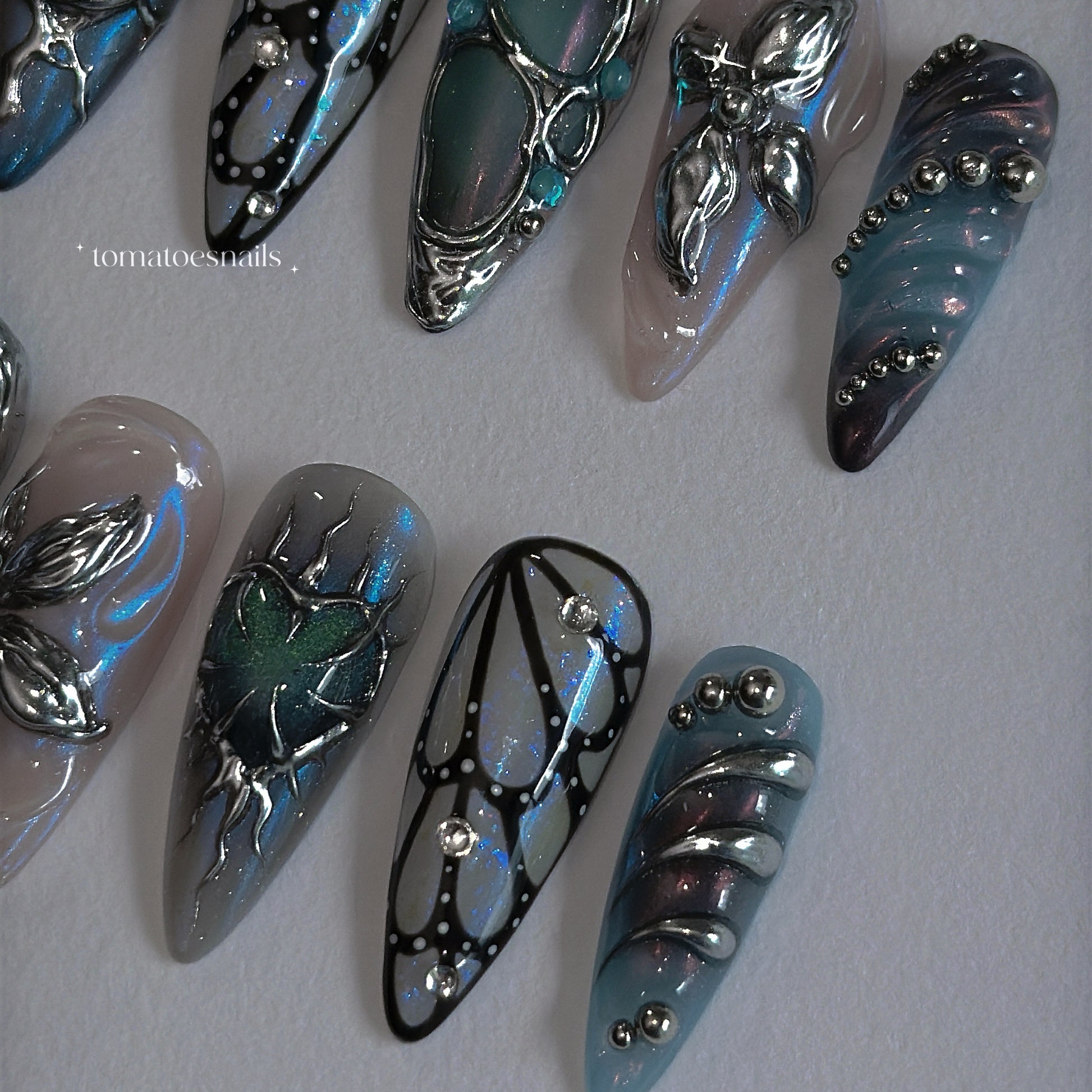 ☆ CUSTOM SIZE: Please leave a note of your own measurements if you don't have my sizing kit in millimeters; for example: Left & Right = thumb 15/index 11/mid 12/ring 11/pinky 8 mm. OR nail size numbers according to the standard chart (e.g., 1/5/4/5/8)