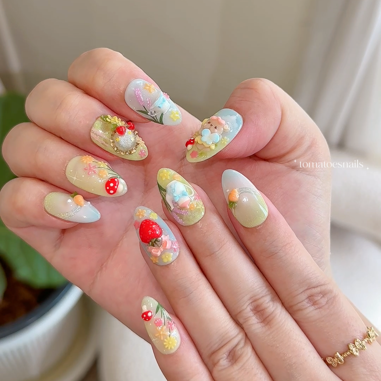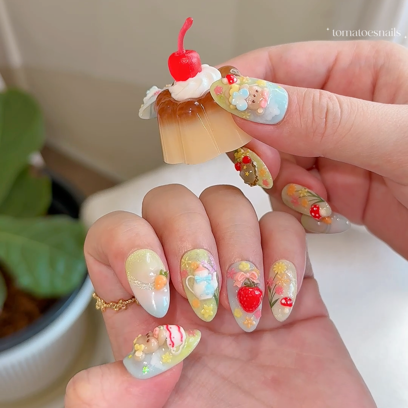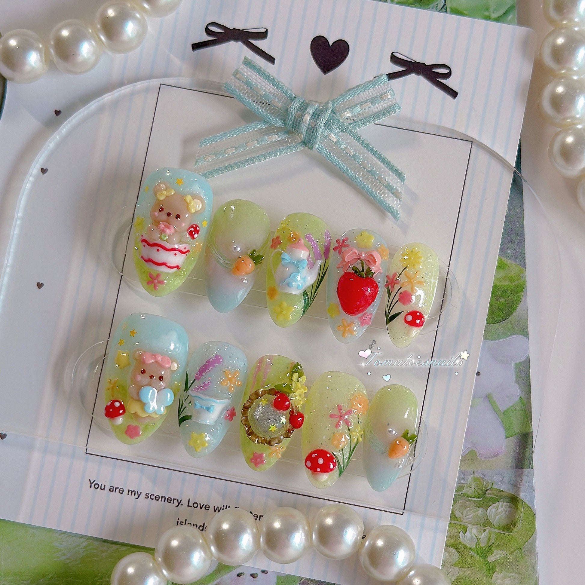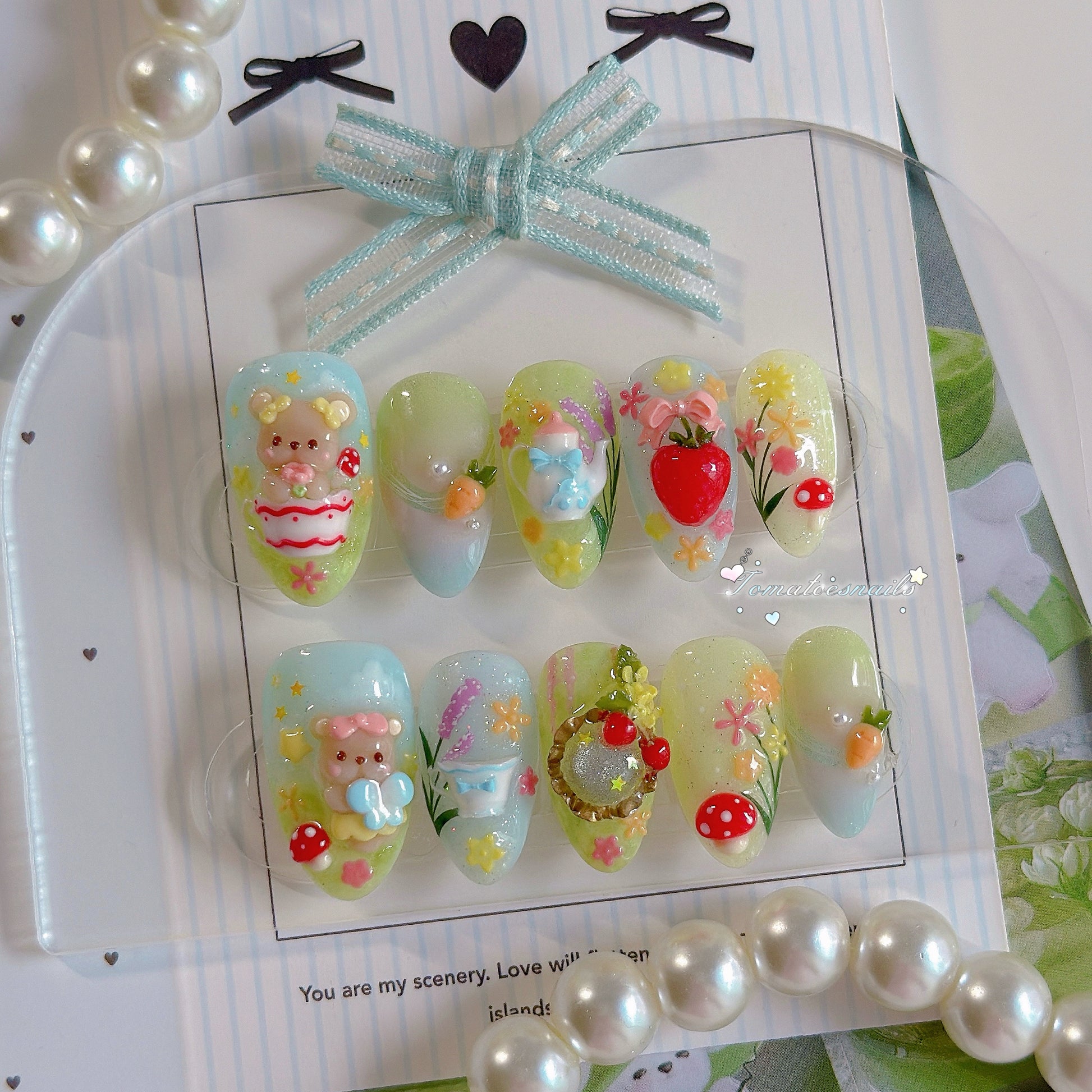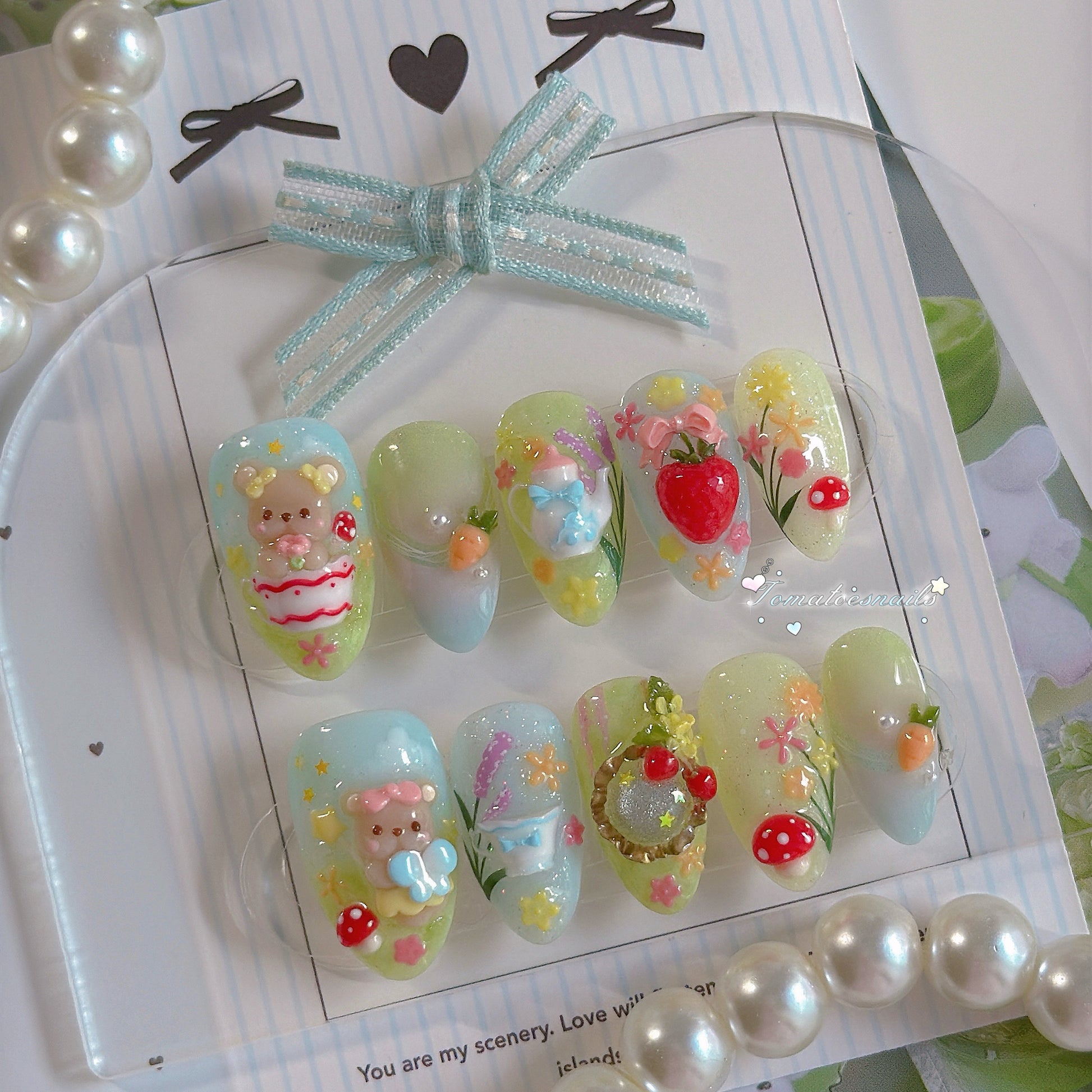 If you order a shorter nail length, some charms will need to be adjusted to make the design look pretty and fit on a smaller nail tip ʕ•́ᴥ•̀ʔっ.