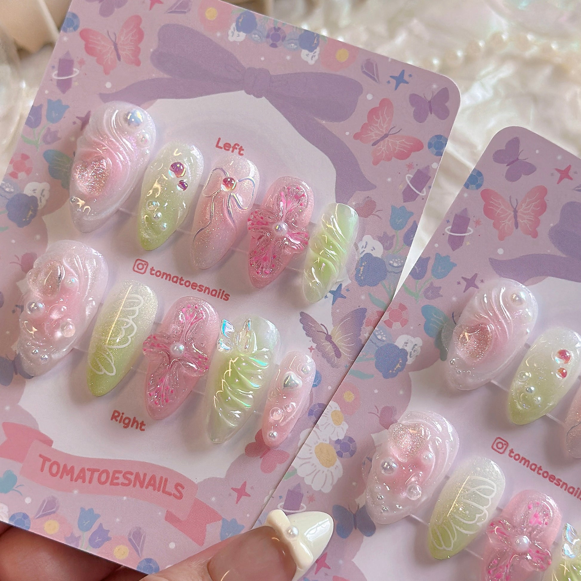 If you order a shorter nail length, some charms will need to be adjusted to make the design look pretty and fit on a smaller nail tip ʕ•́ᴥ•̀ʔっ.