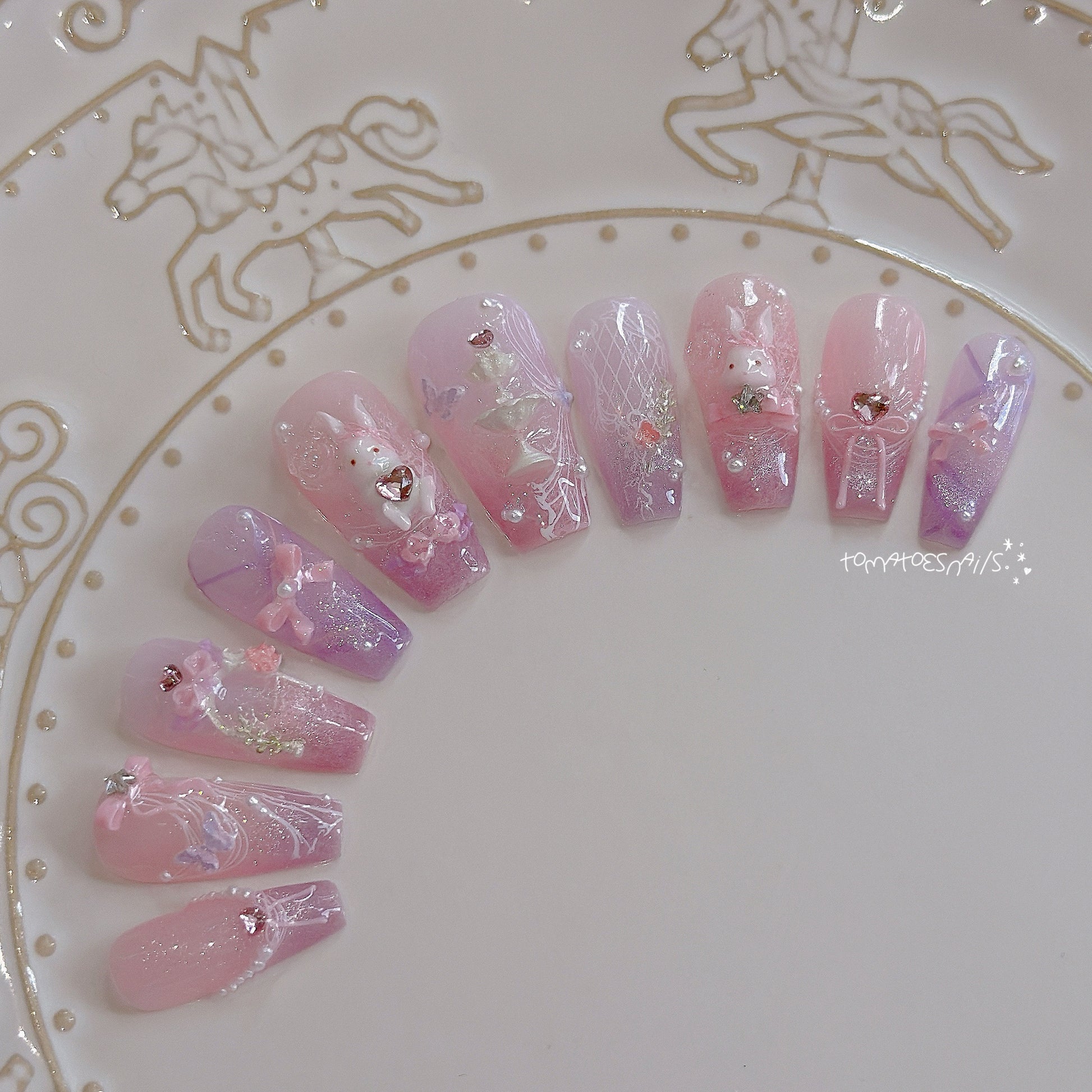 If you order a shorter nail length, some charms will need to be adjusted to make the design look pretty and fit on a smaller nail tip ʕ•́ᴥ•̀ʔっ.