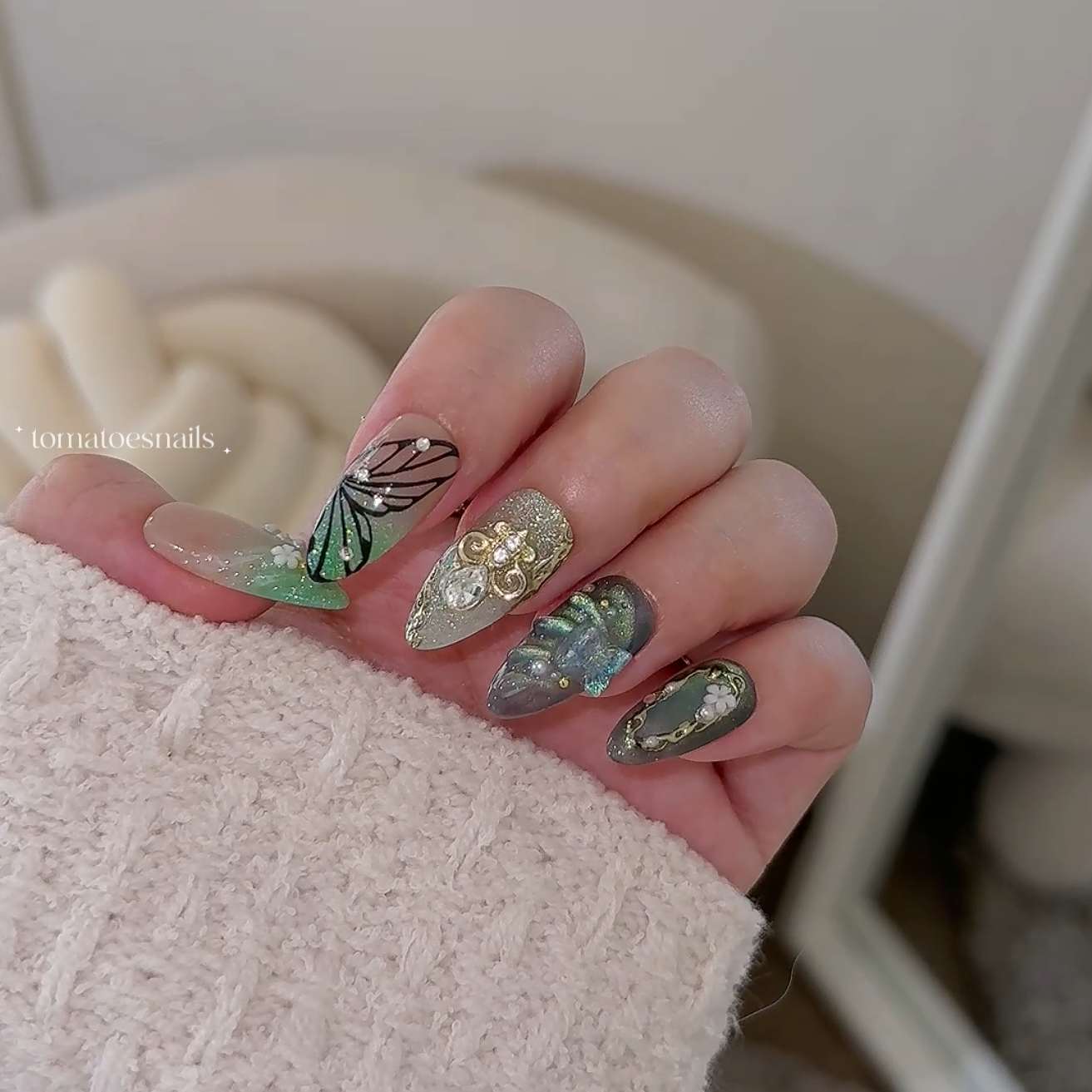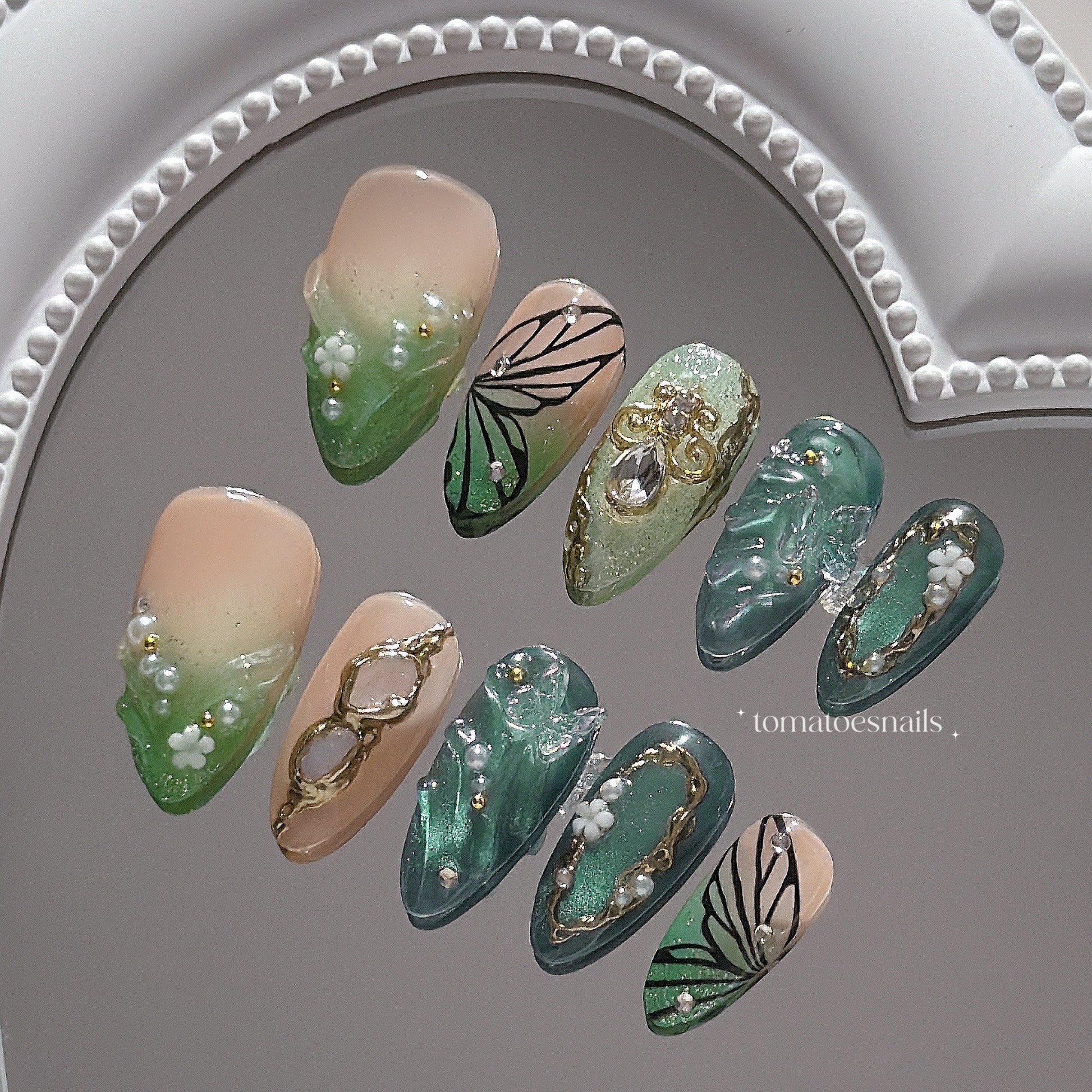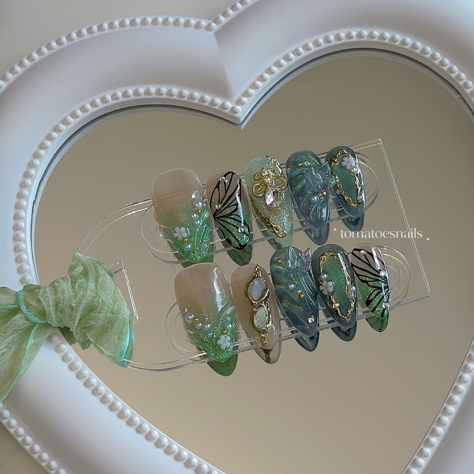 ☆ CUSTOM SIZE: Please leave a note of your own measurements if you don't have my sizing kit in millimeters; for example: Left & Right = thumb 15/index 11/mid 12/ring 11/pinky 8 mm. OR nail size numbers according to the standard chart (e.g., 1/5/4/5/8)