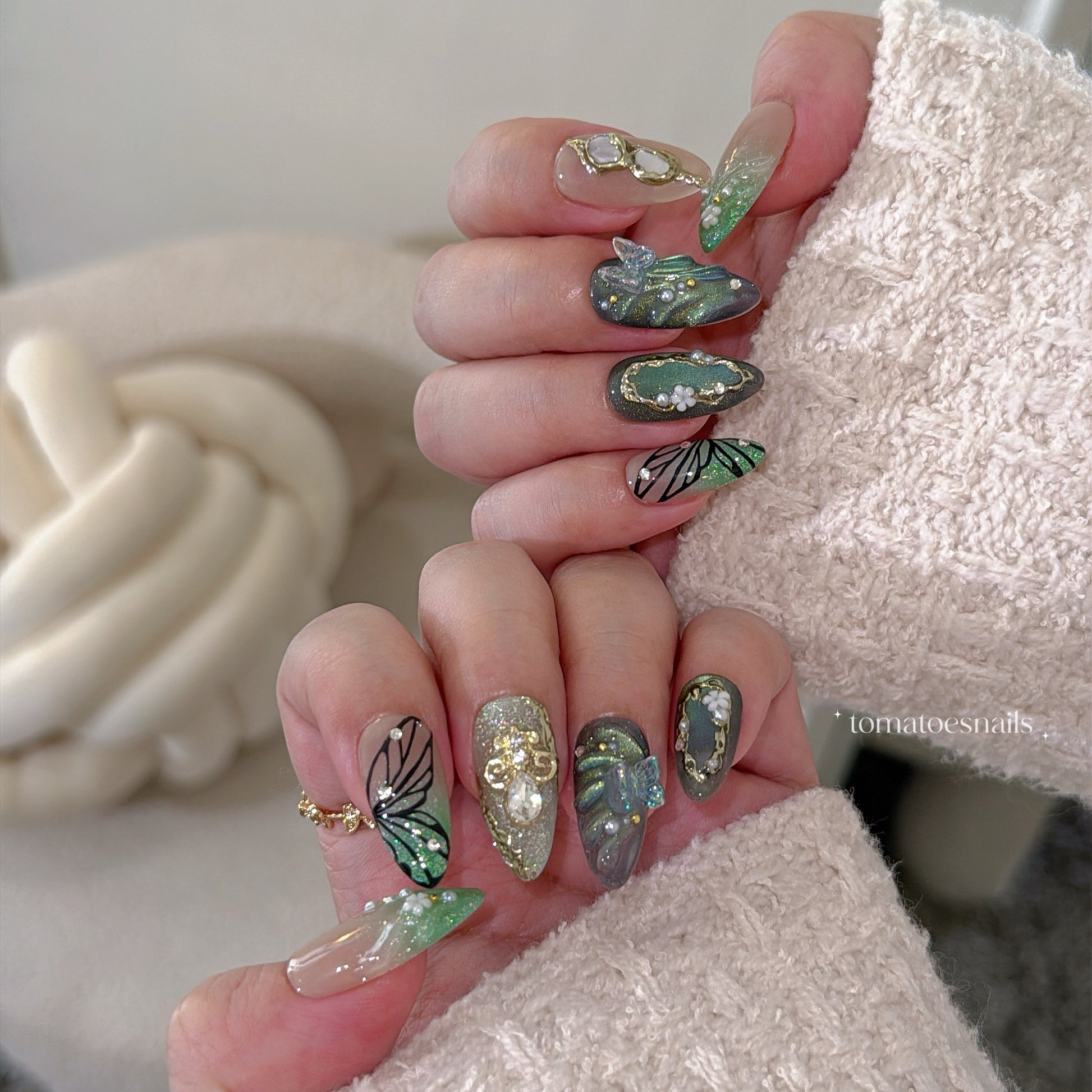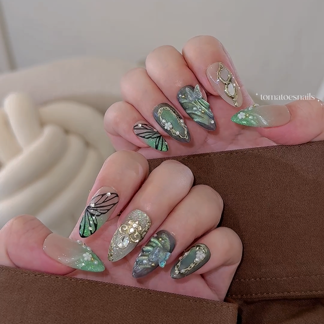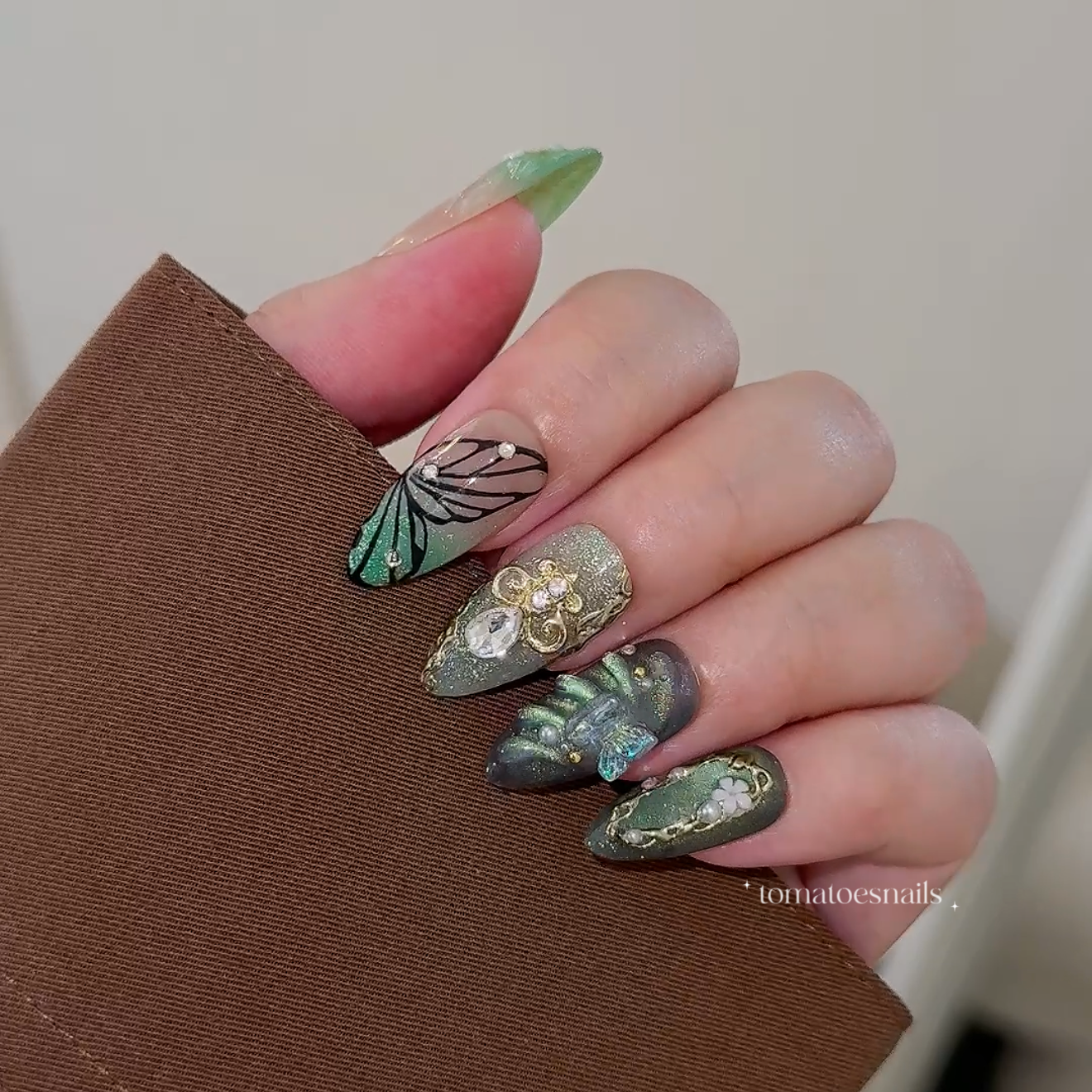 ☆ CUSTOM SIZE: Please leave a note of your own measurements if you don't have my sizing kit in millimeters; for example: Left & Right = thumb 15/index 11/mid 12/ring 11/pinky 8 mm. OR nail size numbers according to the standard chart (e.g., 1/5/4/5/8)