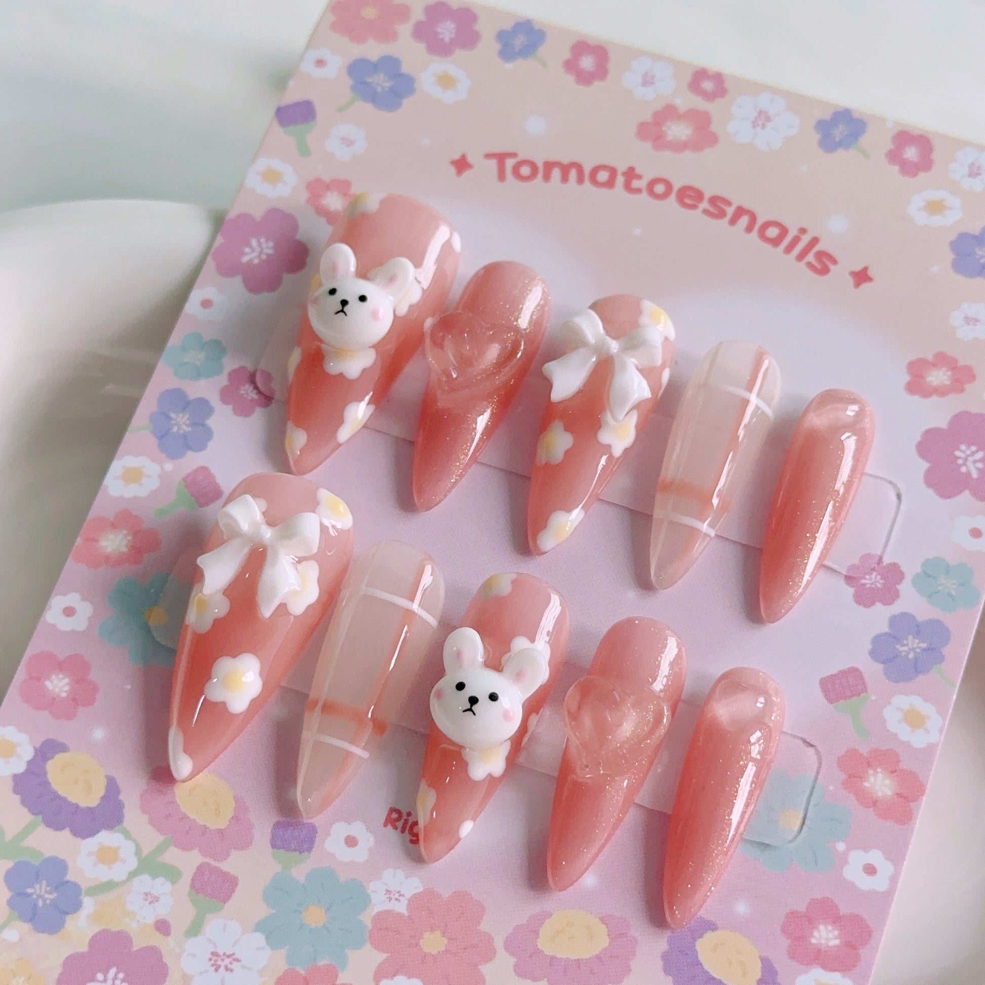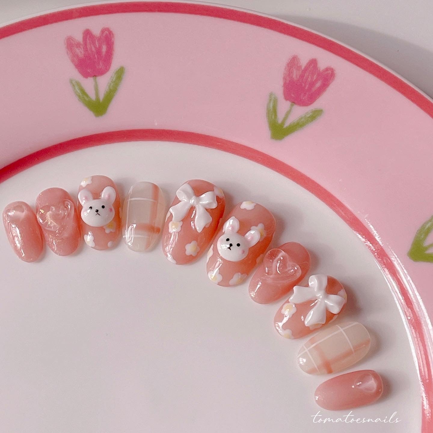 If you order a shorter nail length, some charms will need to be adjusted to make the design look pretty and fit on a smaller nail tip ʕ•́ᴥ•̀ʔっ.
