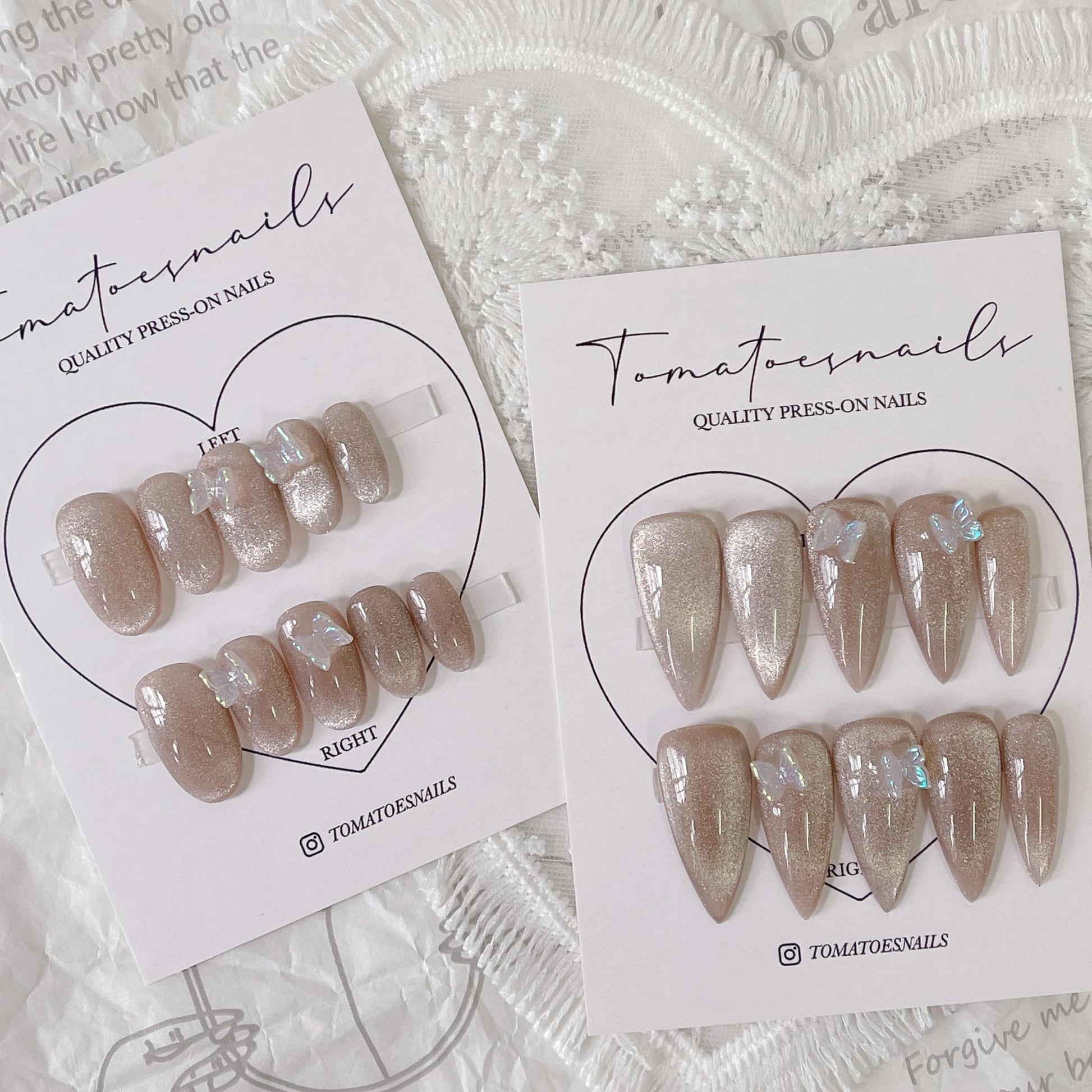 ☆ CUSTOM SIZE: Please leave a note of your own measurements if you don't have my sizing kit in millimeters; for example: Left & Right = thumb 15/index 11/mid 12/ring 11/pinky 8 mm. OR nail size numbers according to the standard chart (e.g., 1/5/4/5/8)