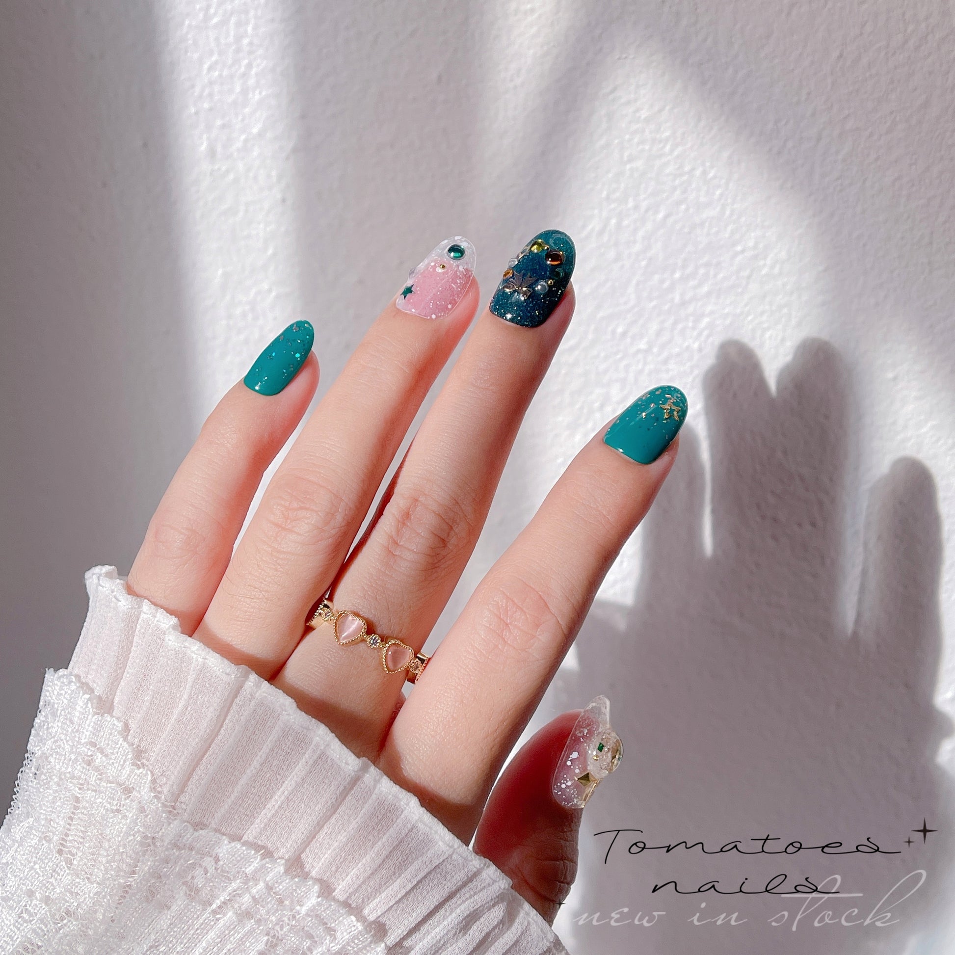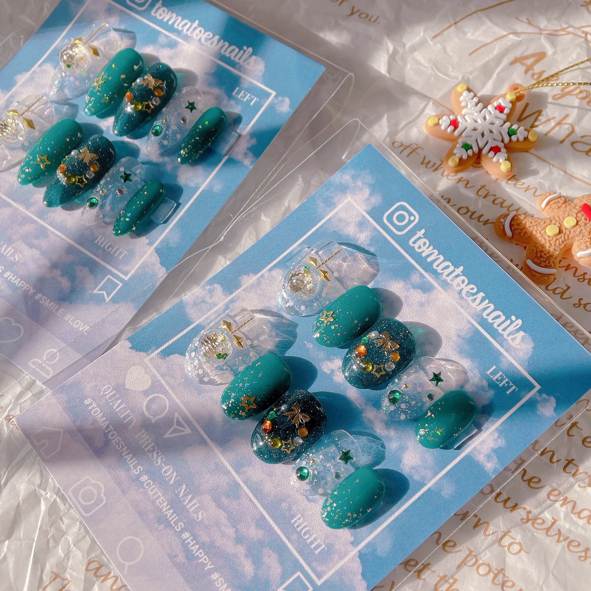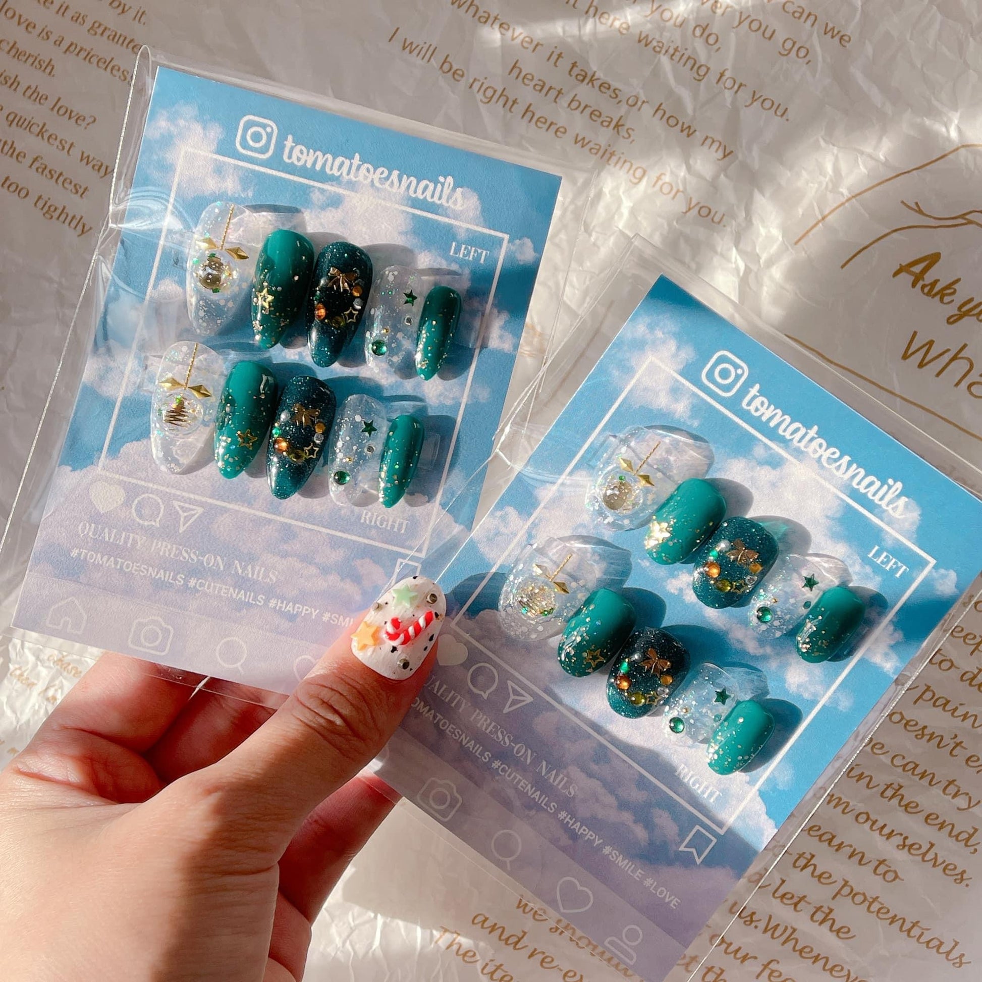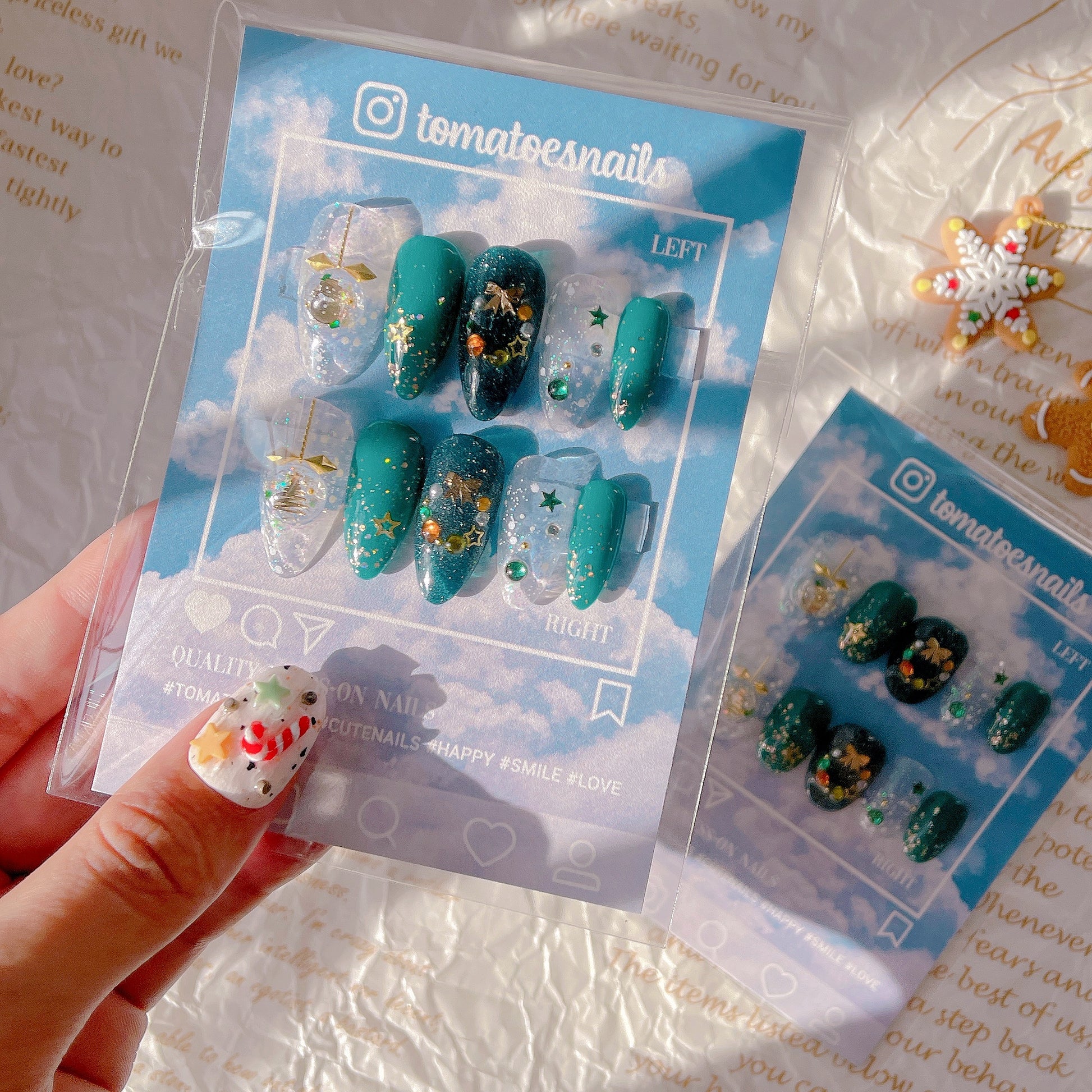 ☆ CUSTOM SIZE: Please leave a note of your own measurements if you don't have my sizing kit in millimeters; for example: Left & Right = thumb 15/index 11/mid 12/ring 11/pinky 8 mm. OR nail size numbers according to the standard chart (e.g., 1/5/4/5/8)
