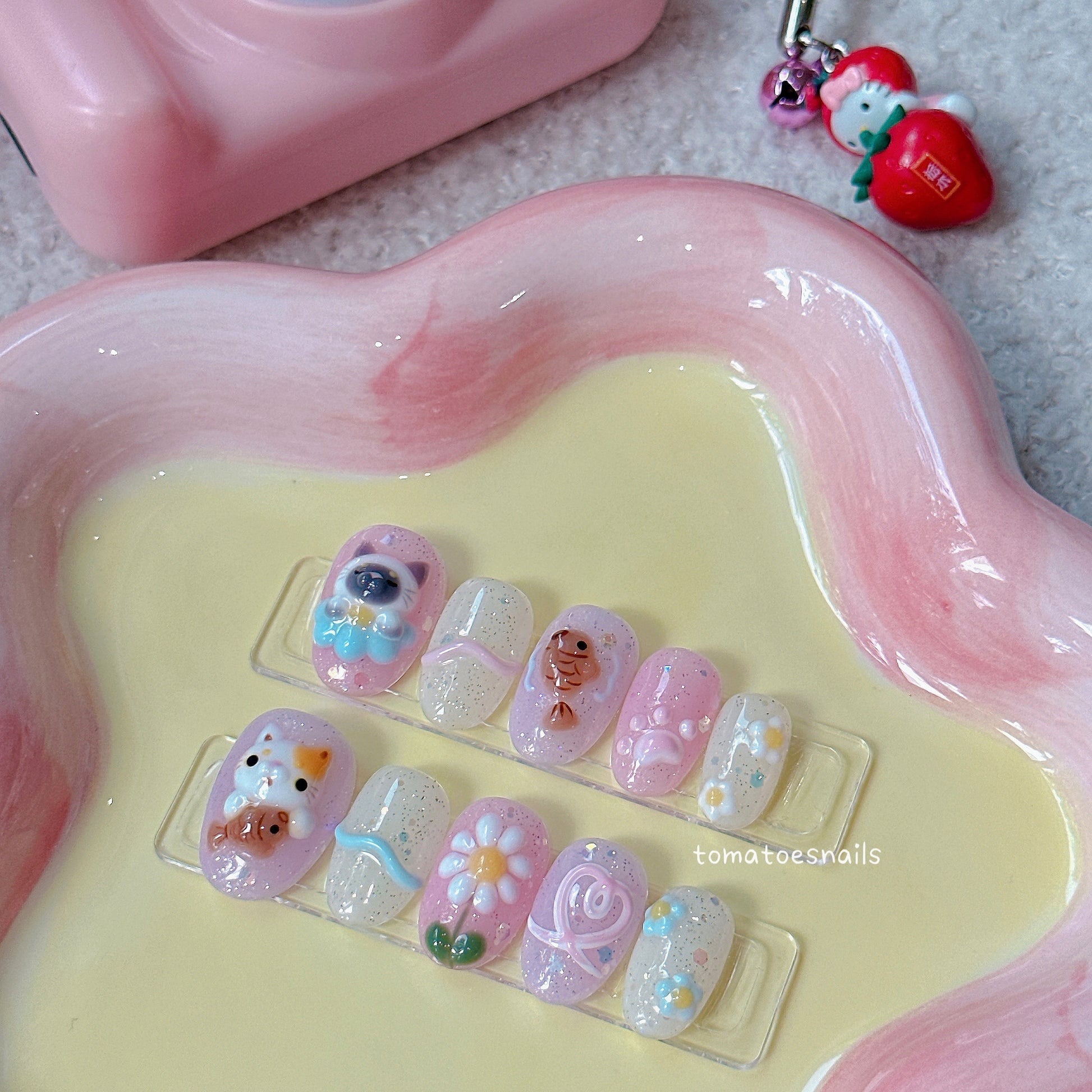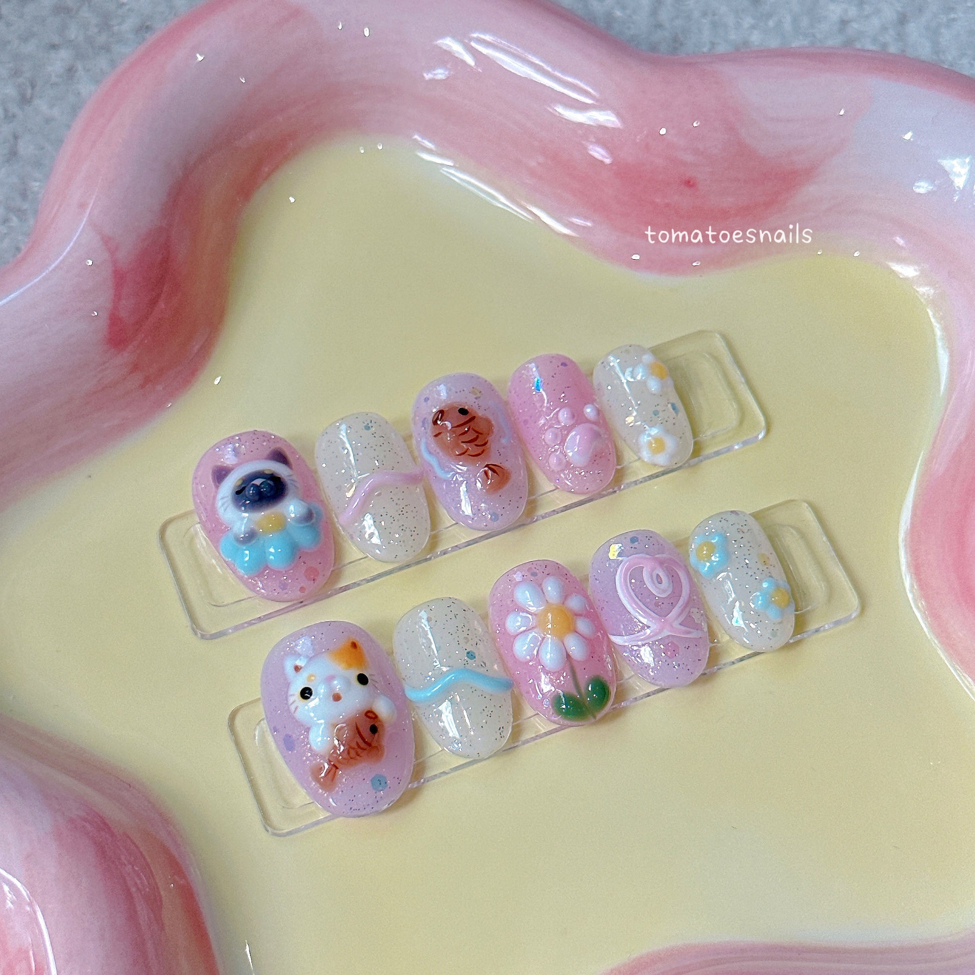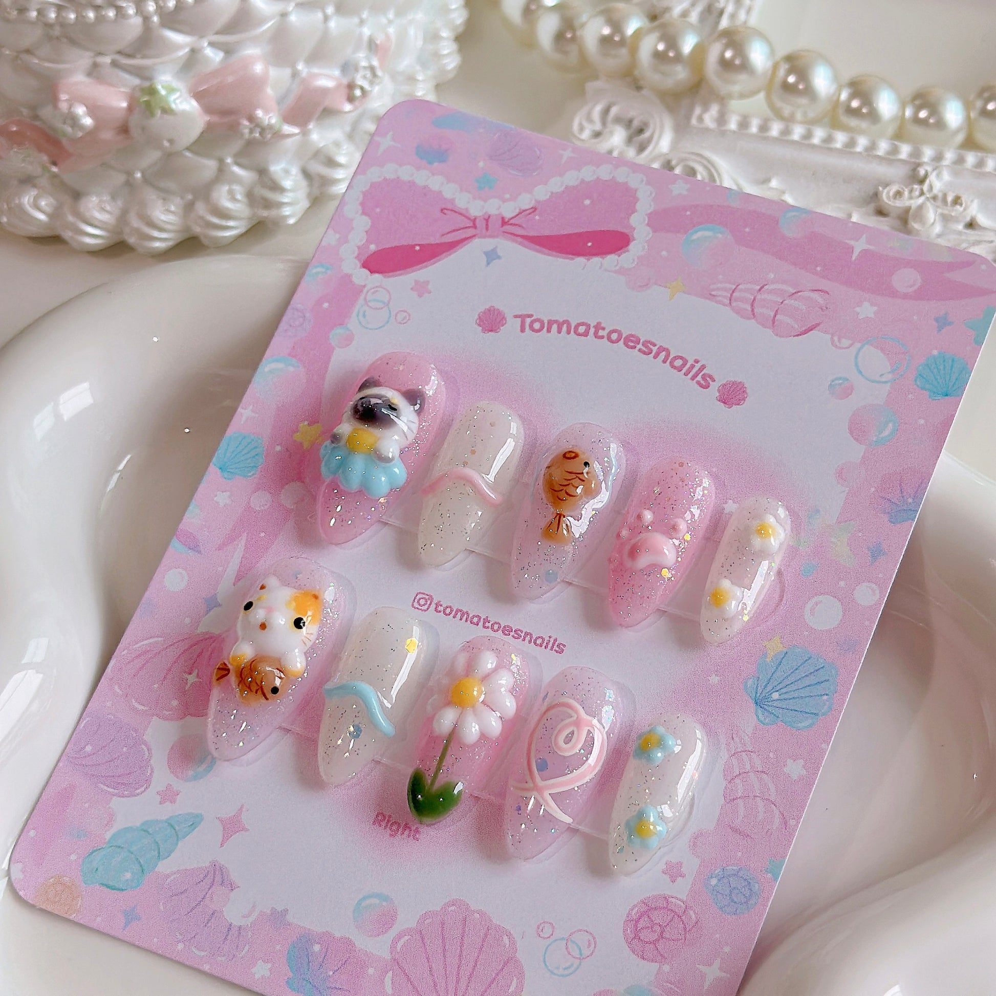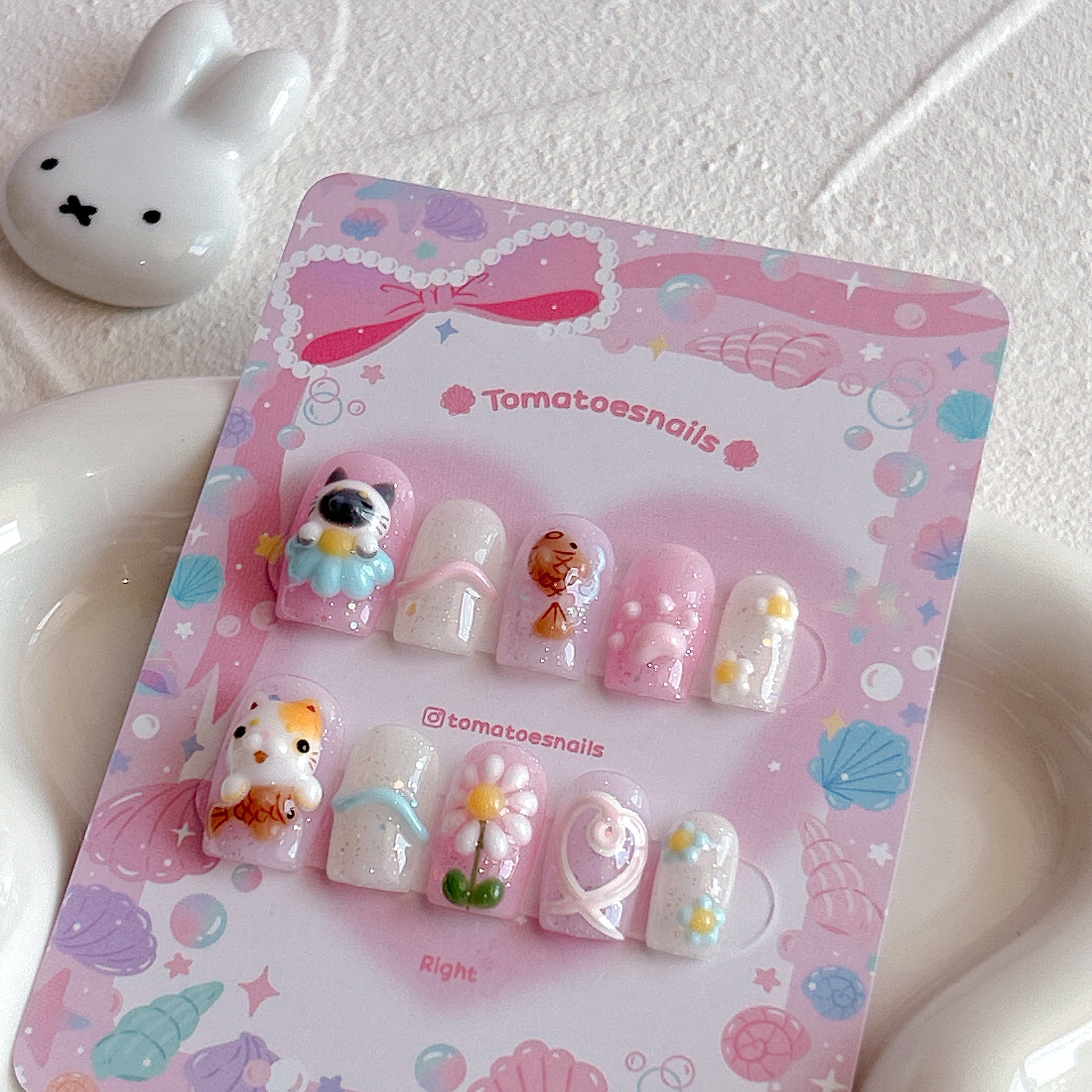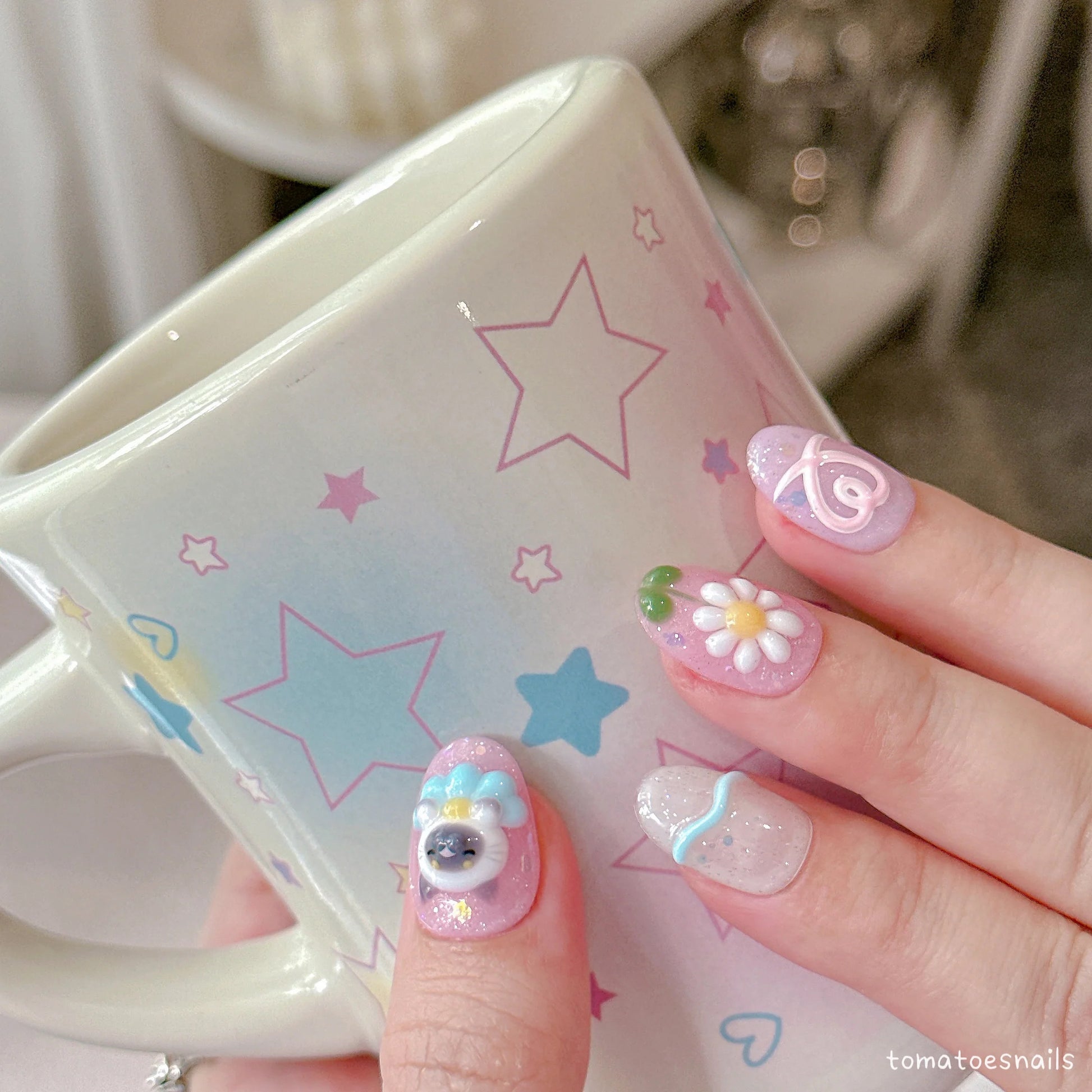 If you order a shorter nail length, some charms will need to be adjusted to make the design look pretty and fit on a smaller nail tip ʕ•́ᴥ•̀ʔっ.