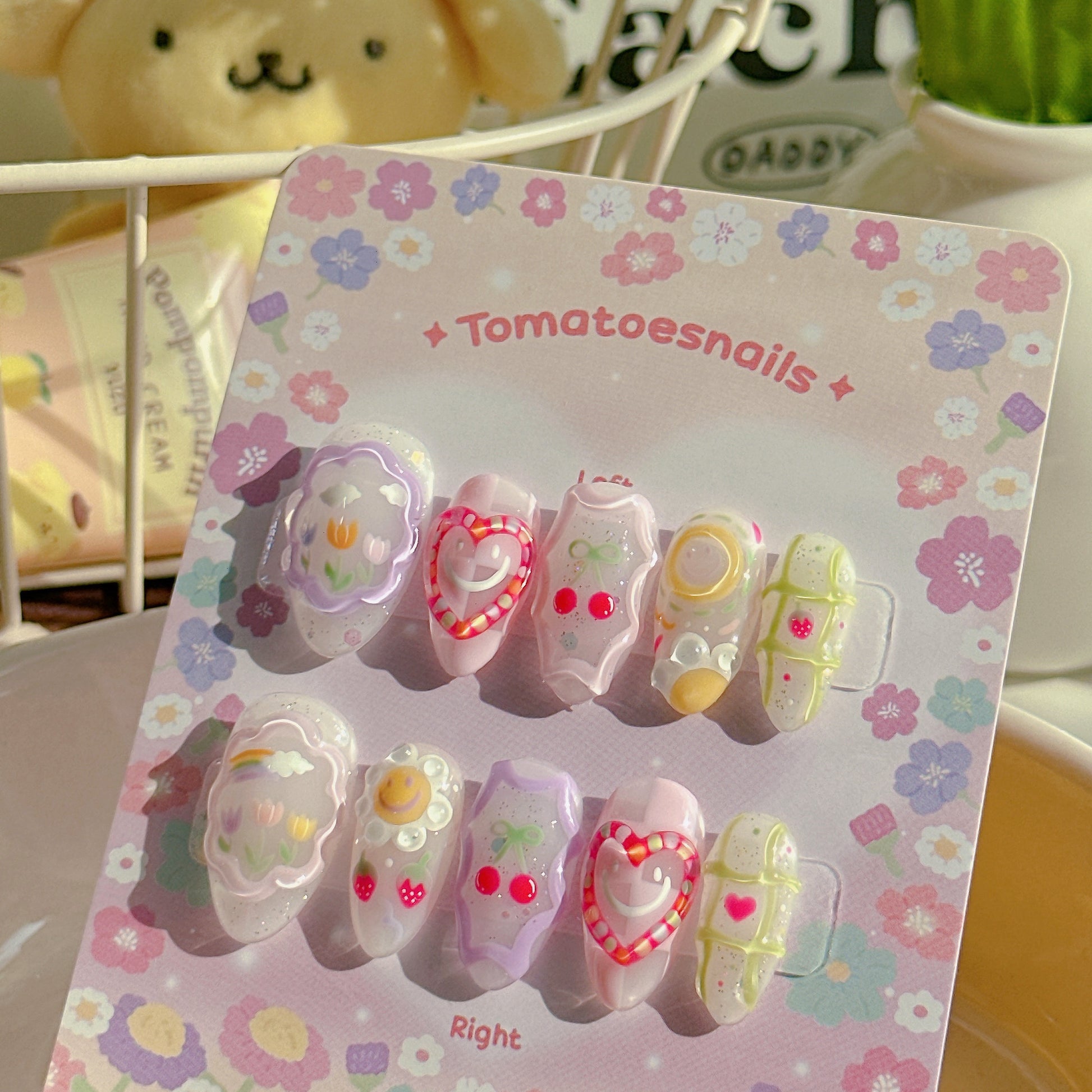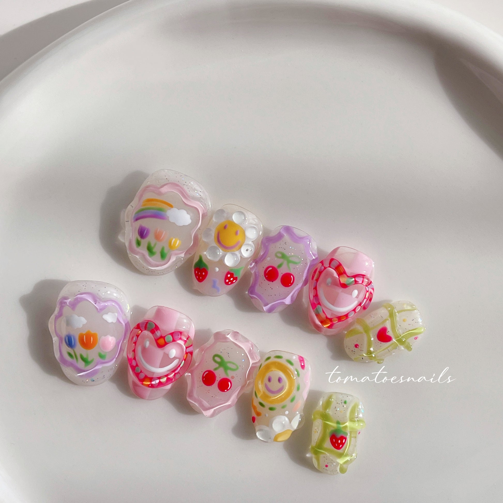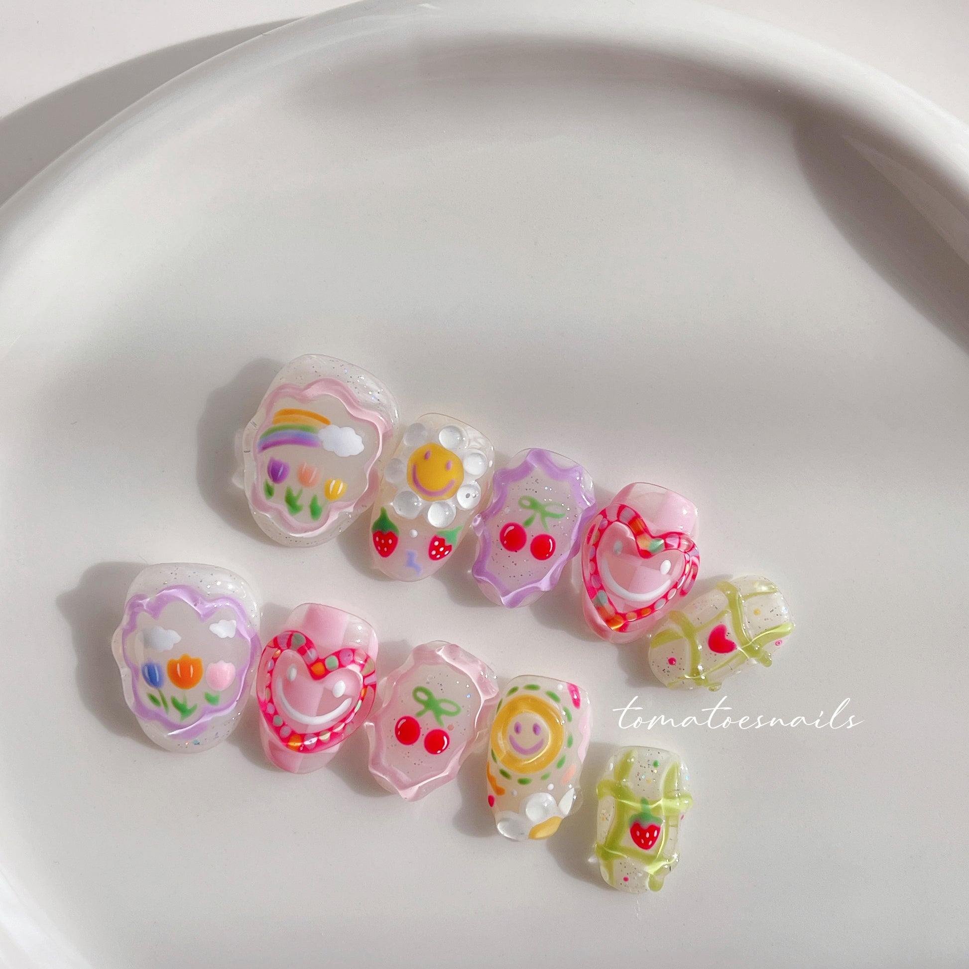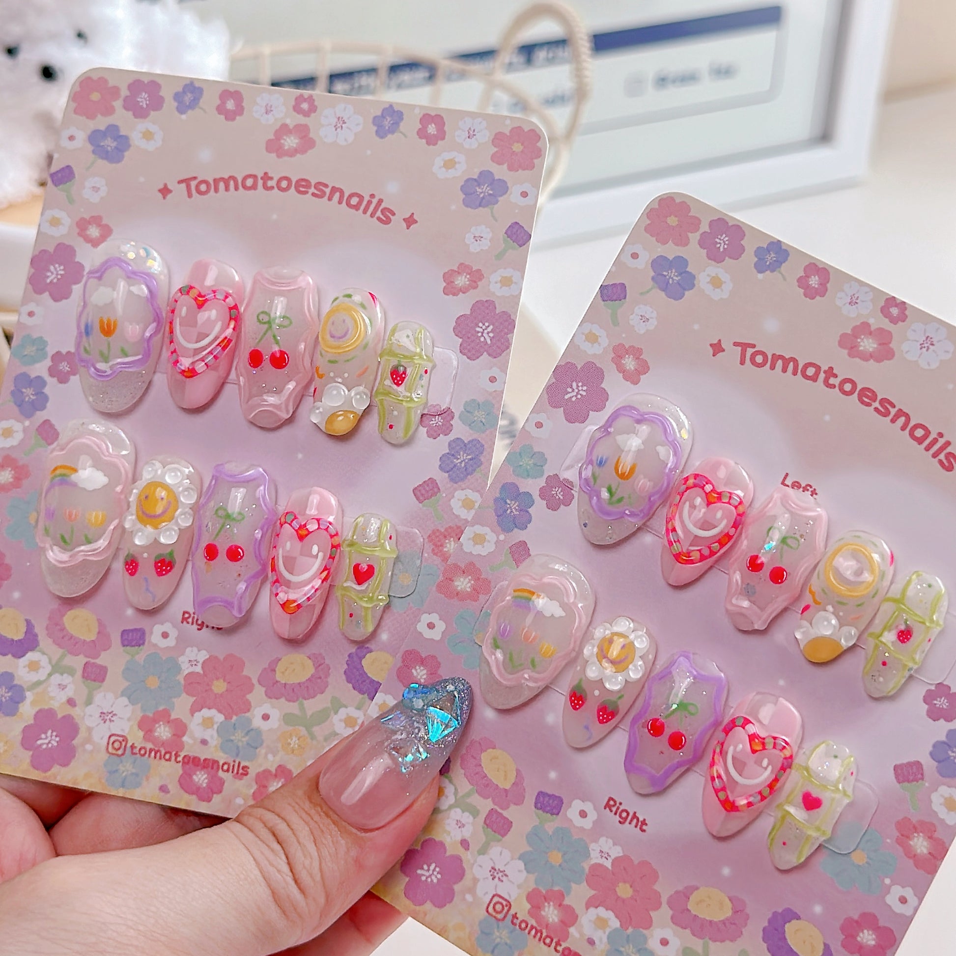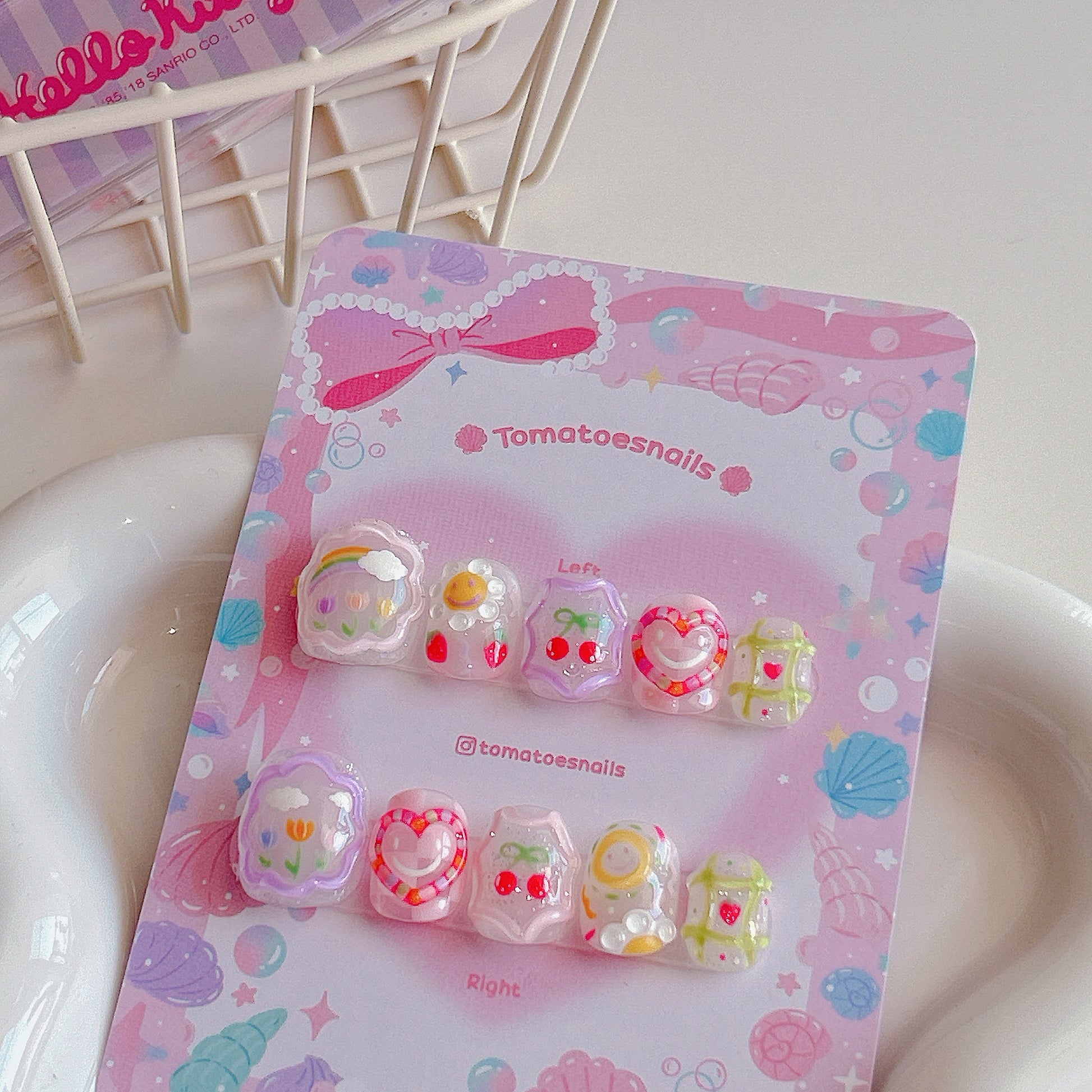 If you order a shorter nail length, some charms will need to be adjusted to make the design look pretty and fit on a smaller nail tip ʕ•́ᴥ•̀ʔっ.