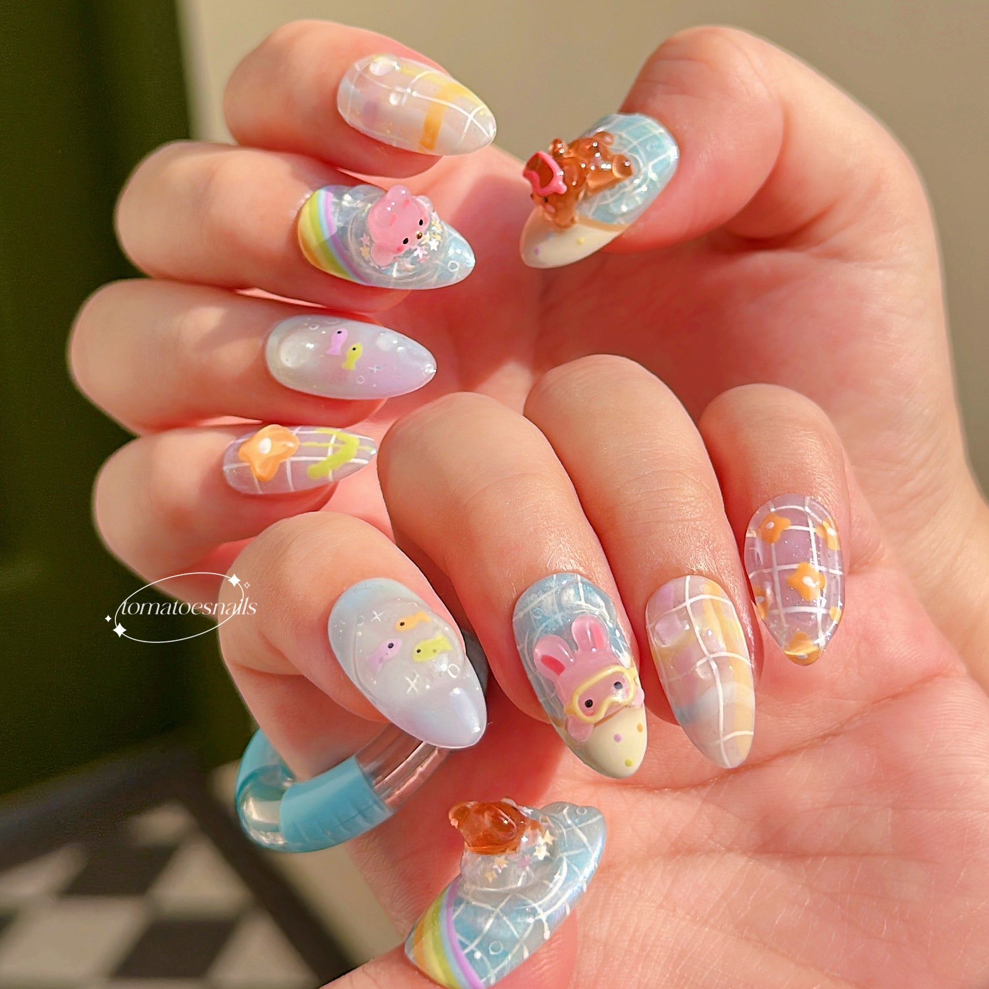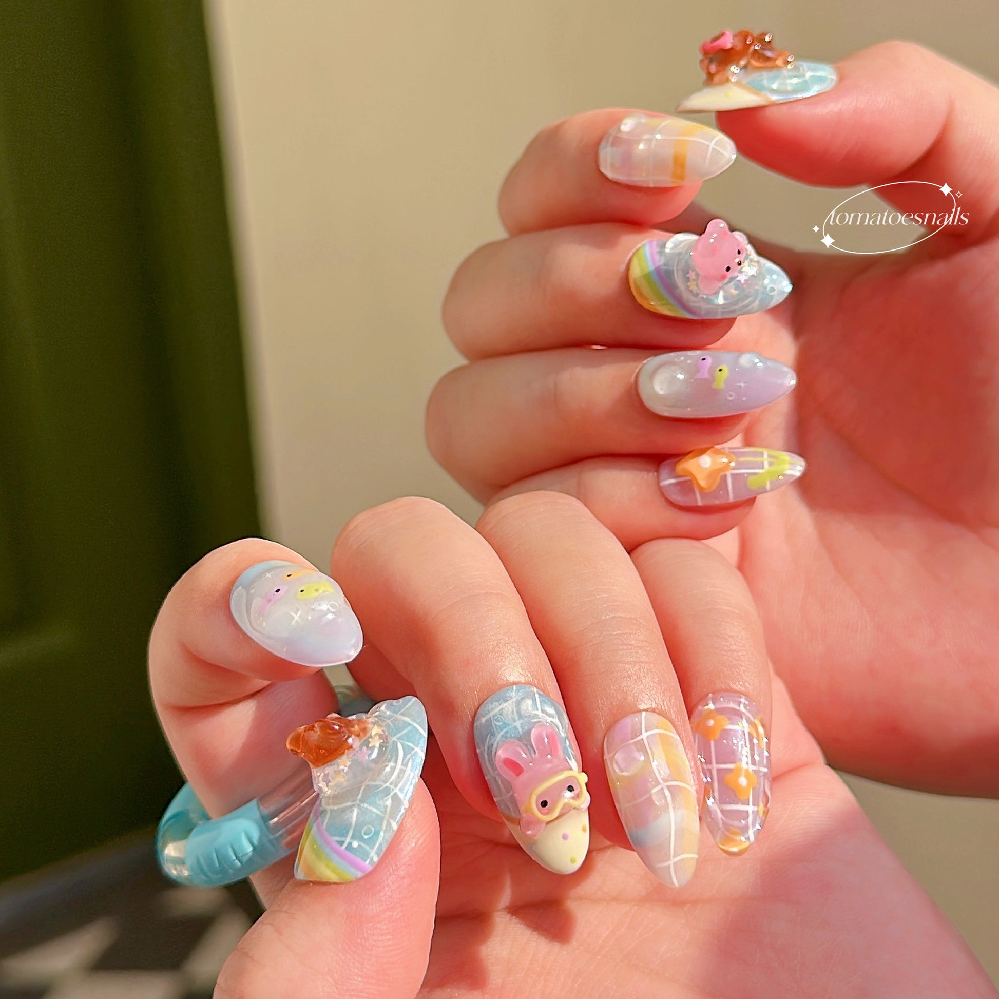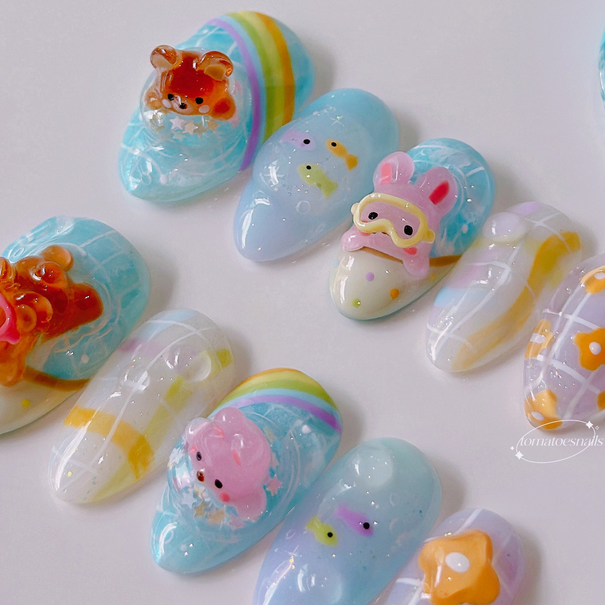 If you order a shorter nail length, some charms will need to be adjusted to make the design look pretty and fit on a smaller nail tip ʕ•́ᴥ•̀ʔっ.