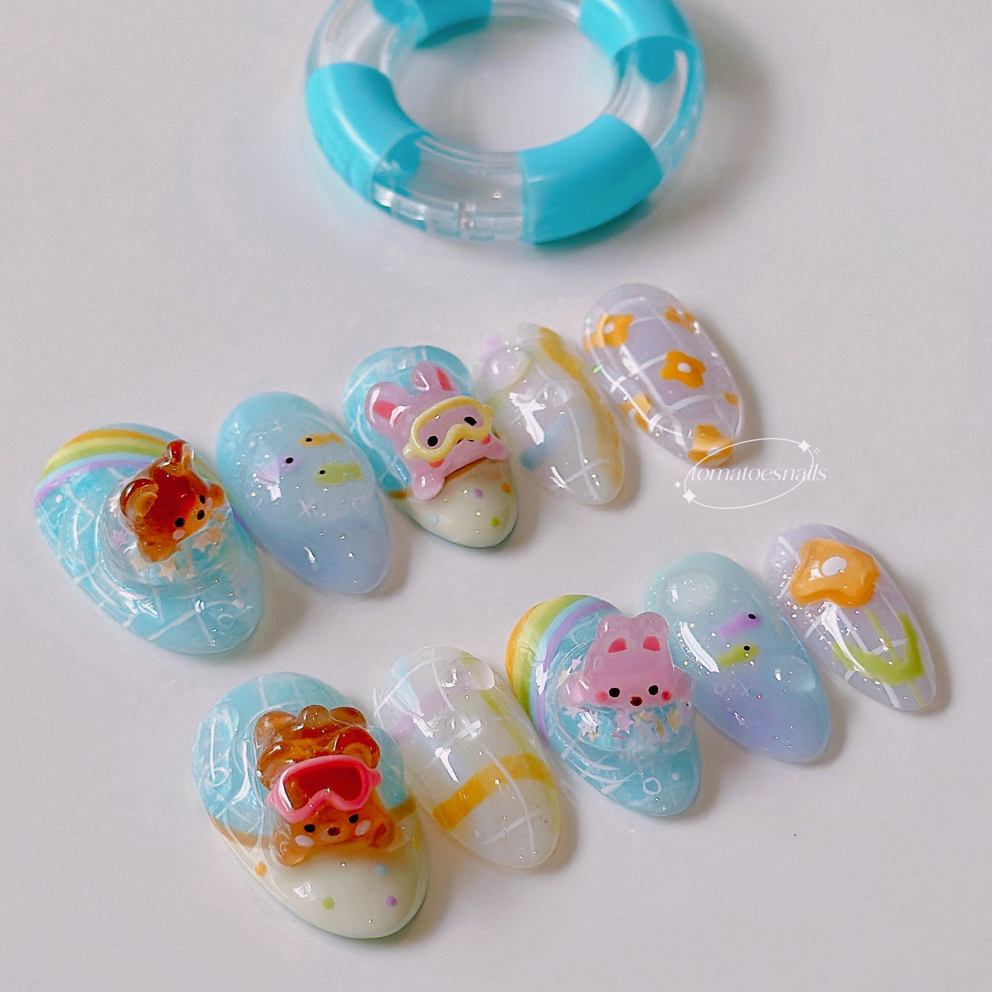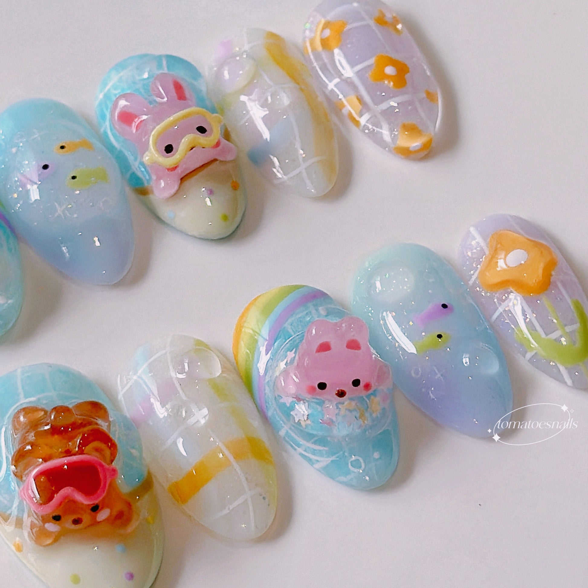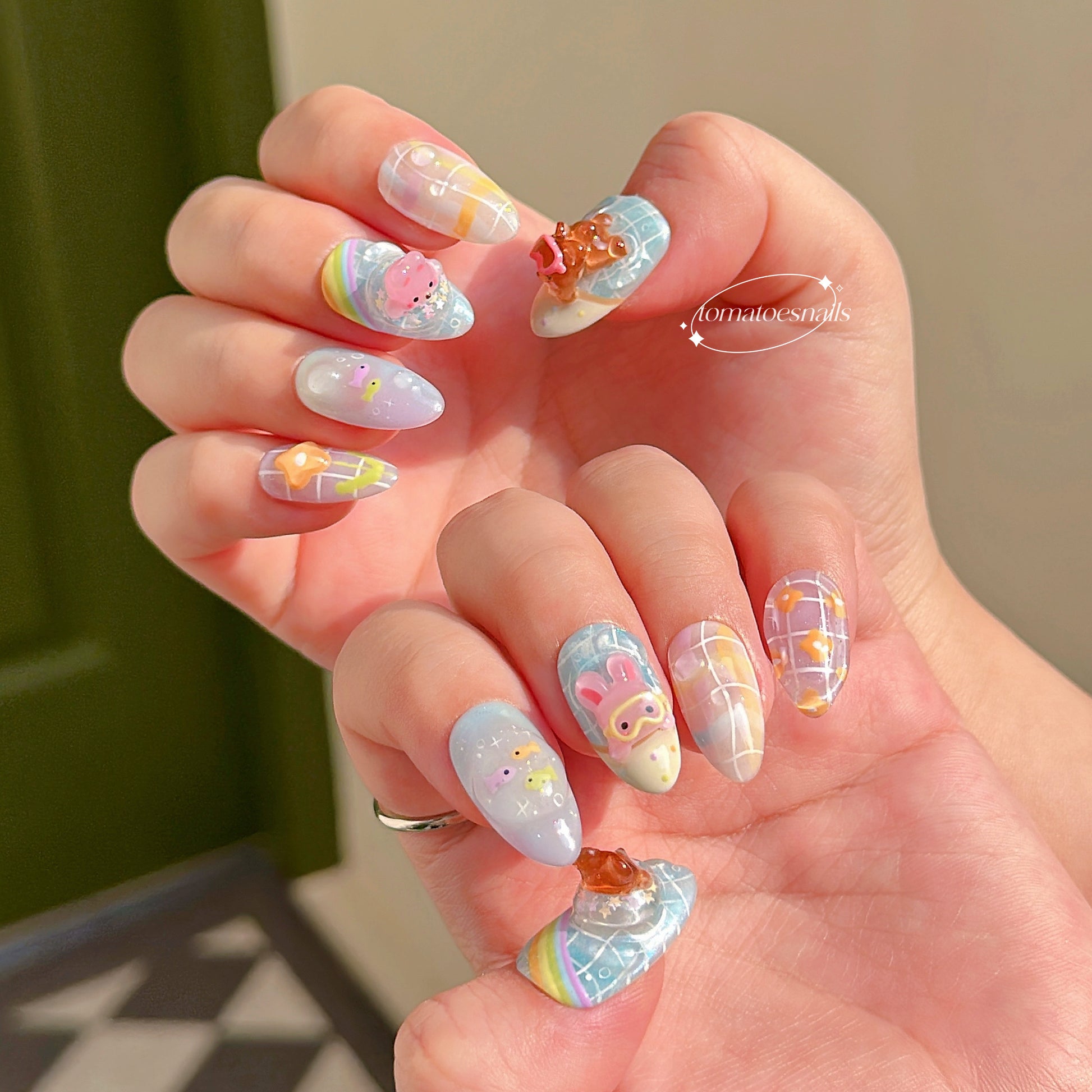 If you order a shorter nail length, some charms will need to be adjusted to make the design look pretty and fit on a smaller nail tip ʕ•́ᴥ•̀ʔっ.