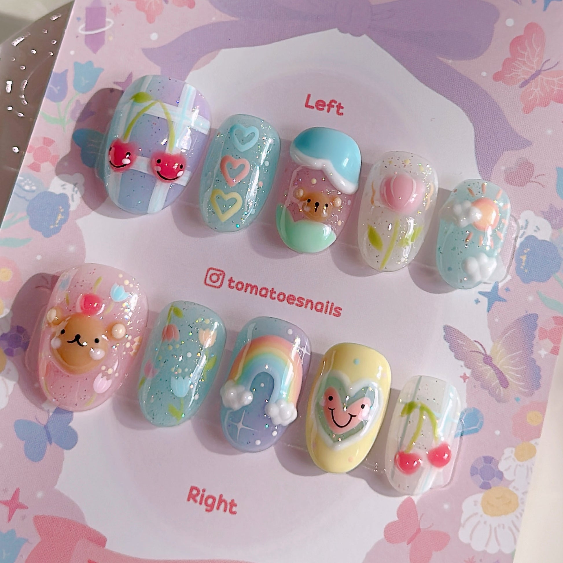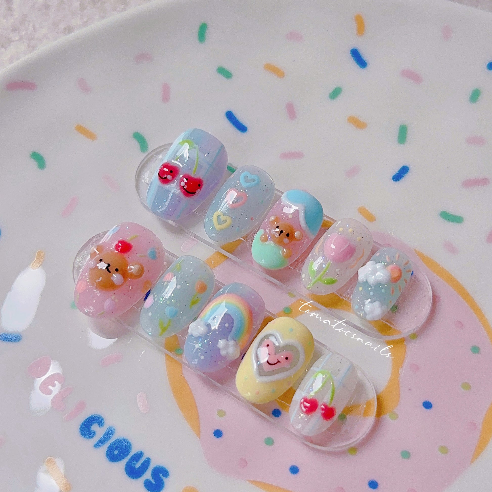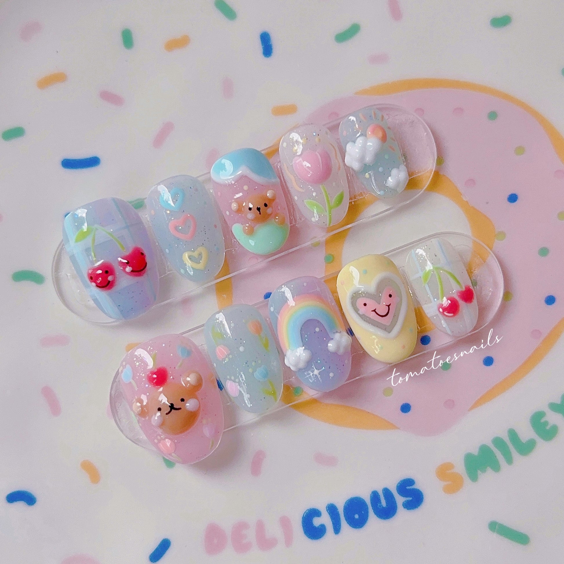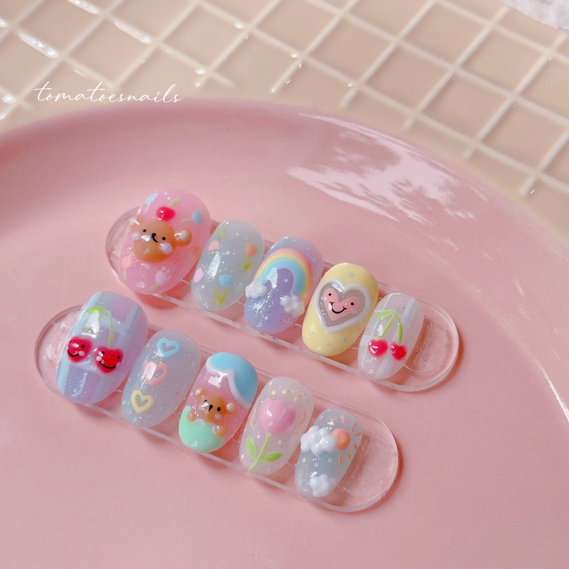 If you order a shorter nail length, some charms will need to be adjusted to make the design look pretty and fit on a smaller nail tip ʕ•́ᴥ•̀ʔっ.