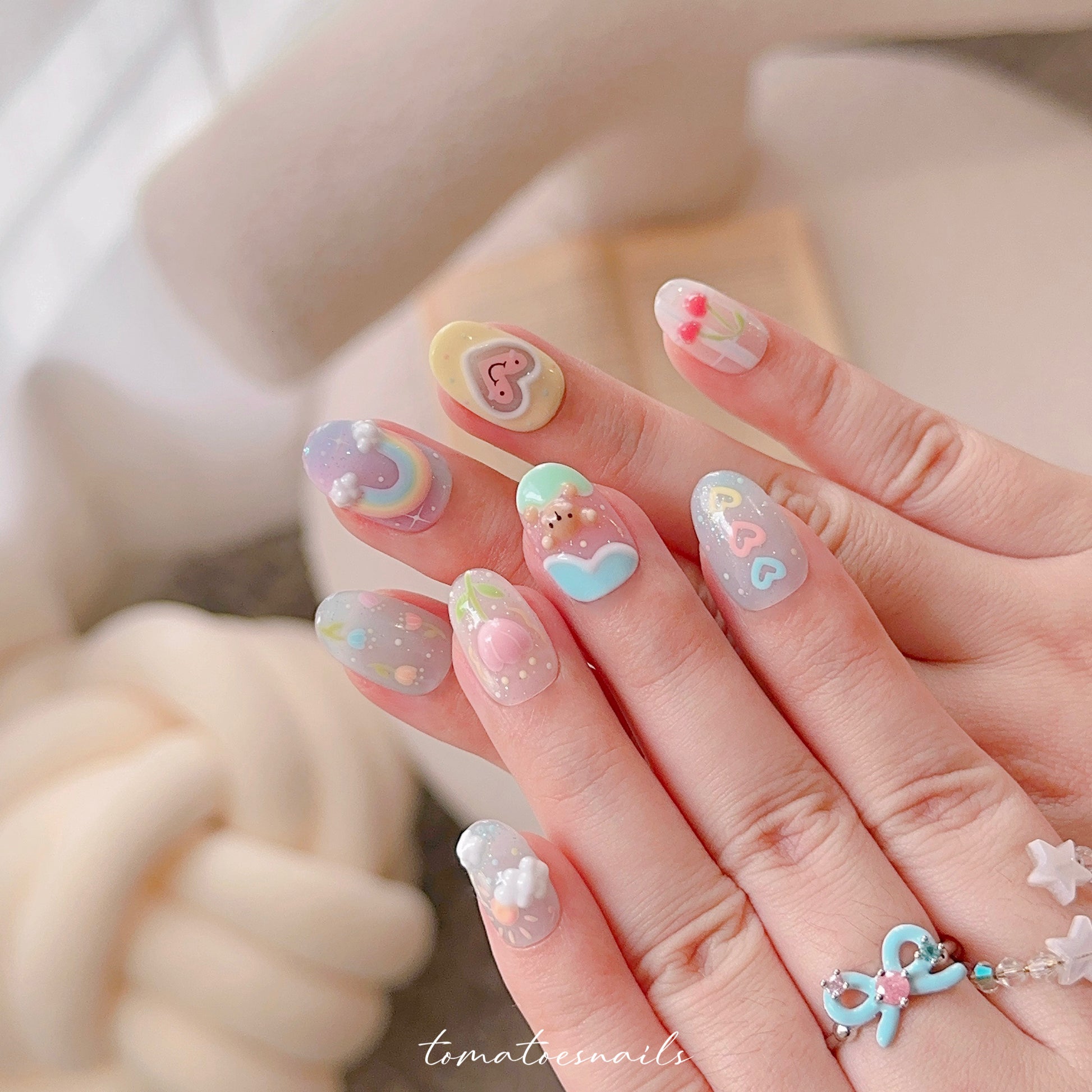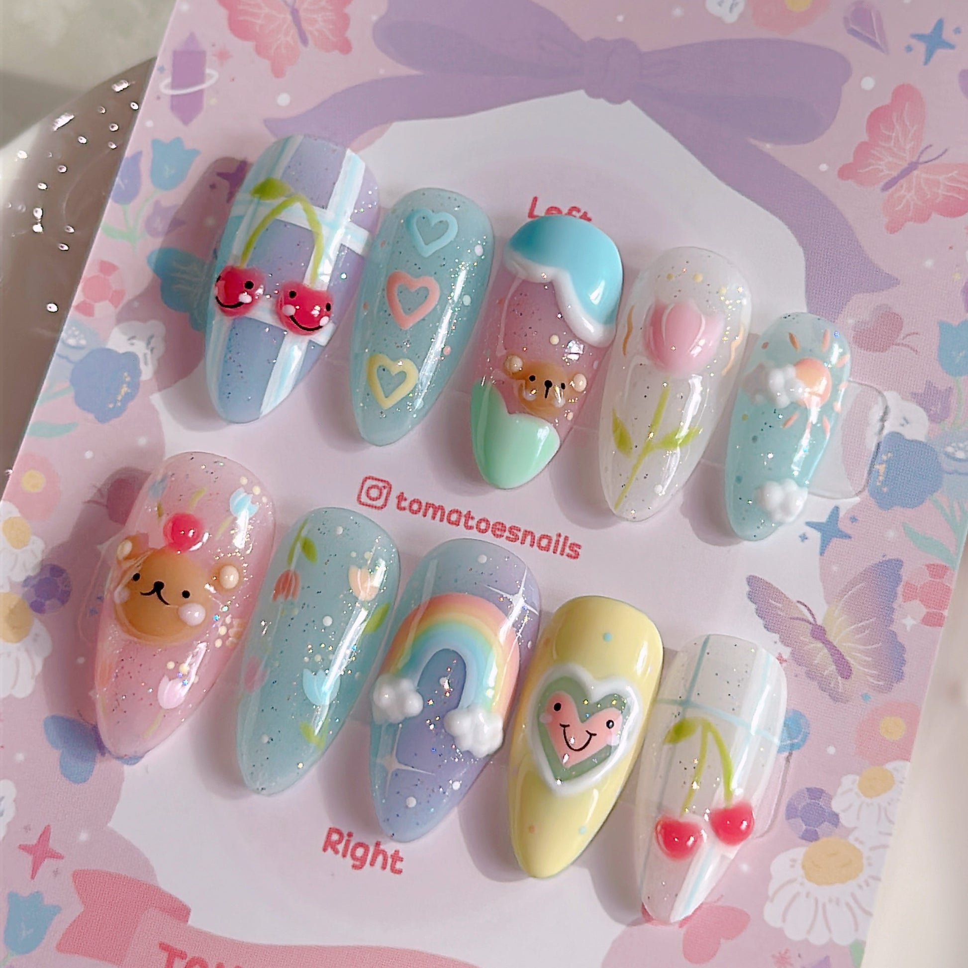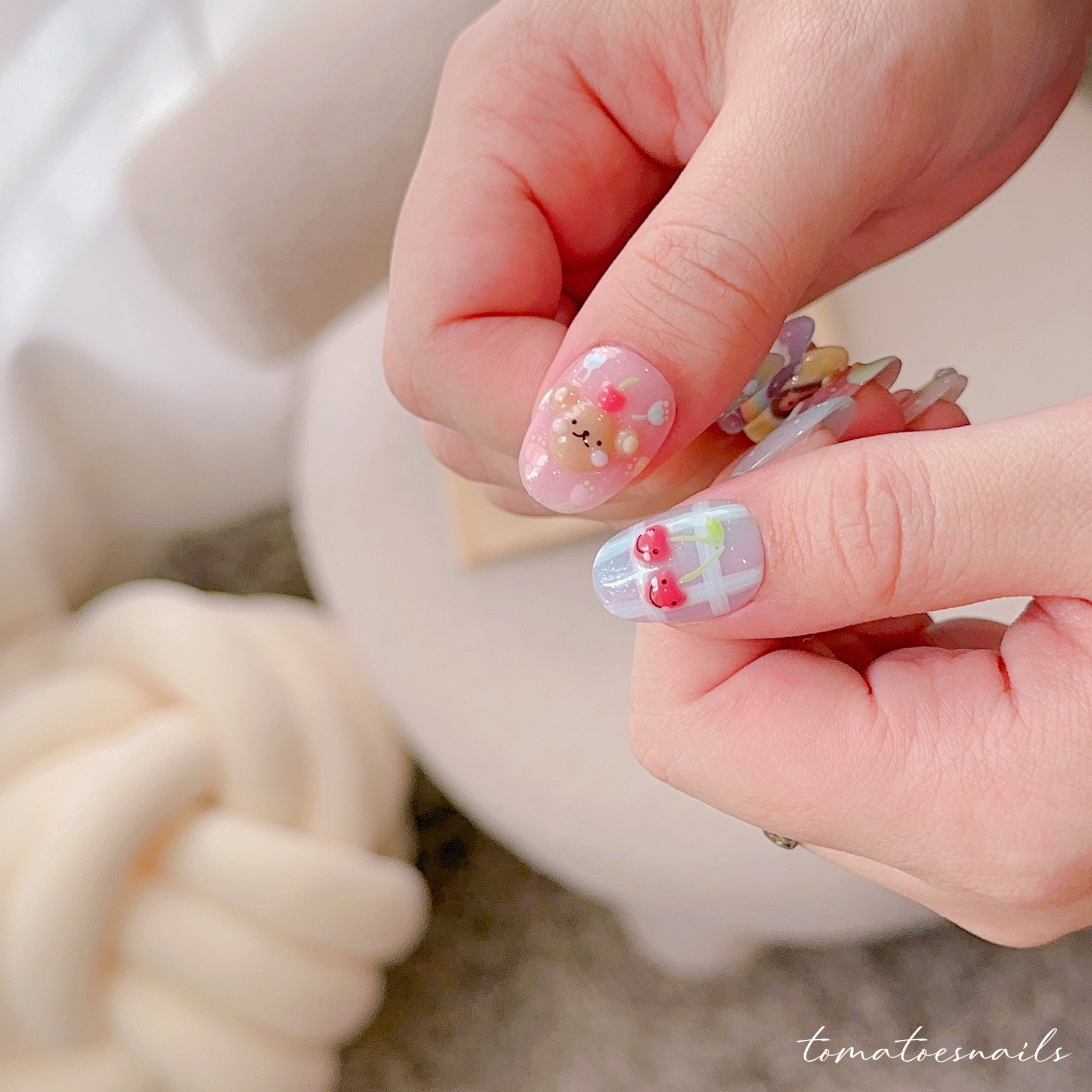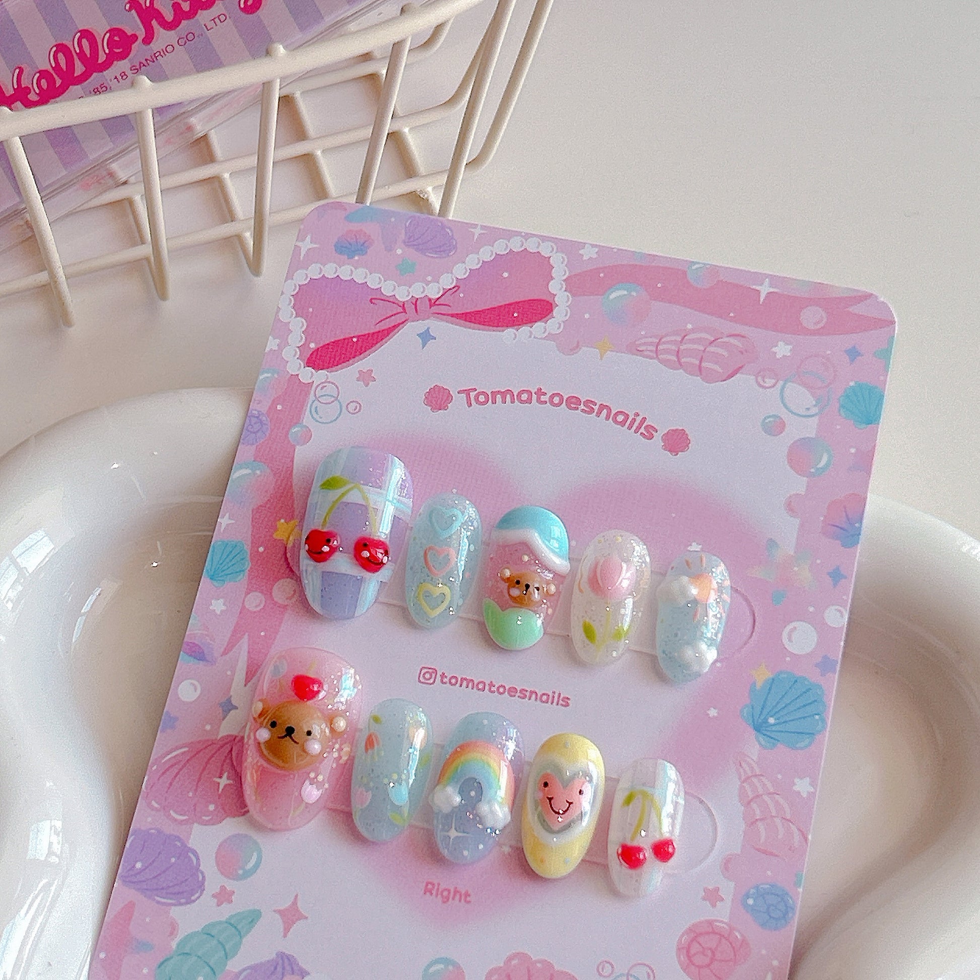 If you order a shorter nail length, some charms will need to be adjusted to make the design look pretty and fit on a smaller nail tip ʕ•́ᴥ•̀ʔっ.