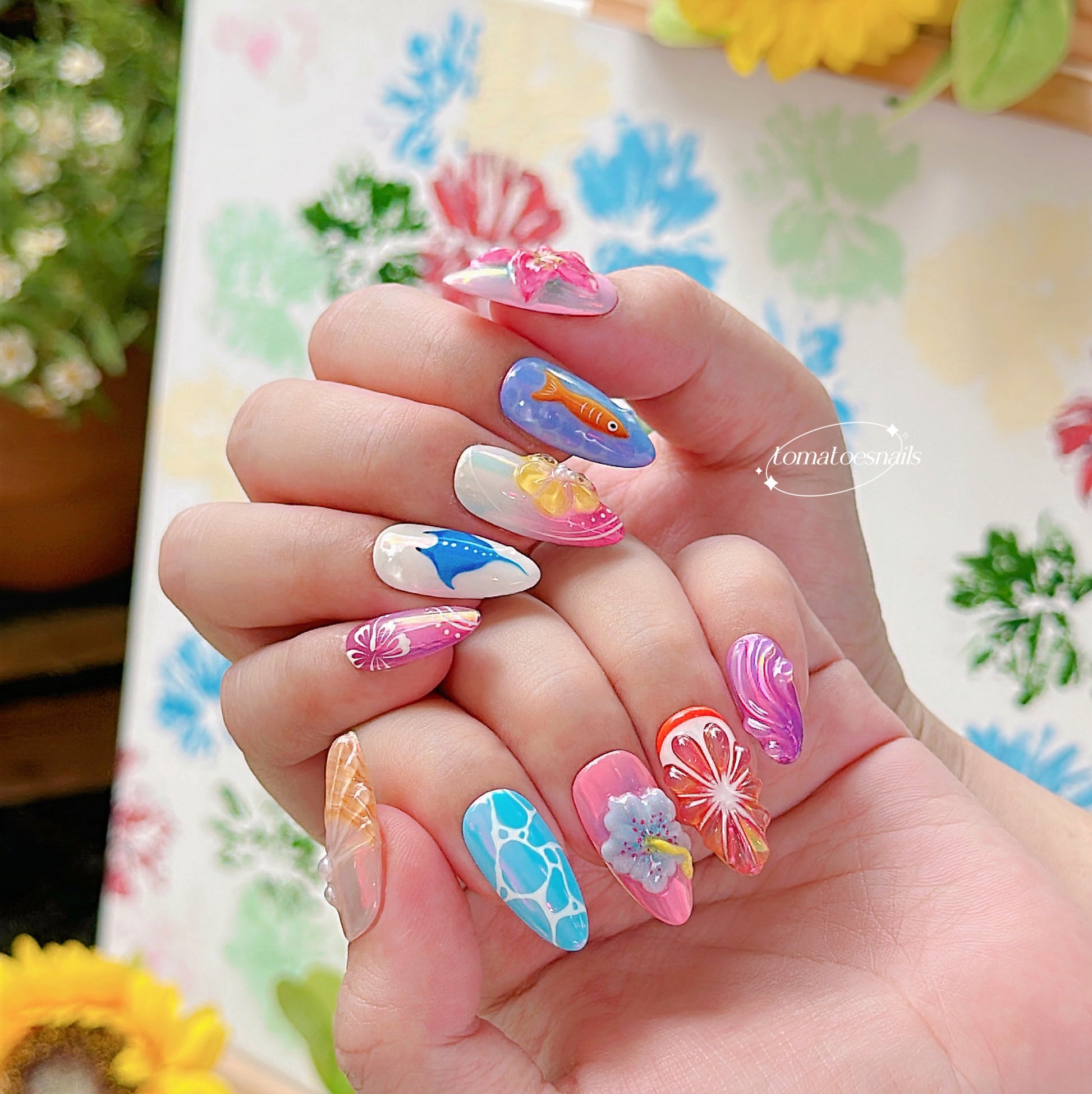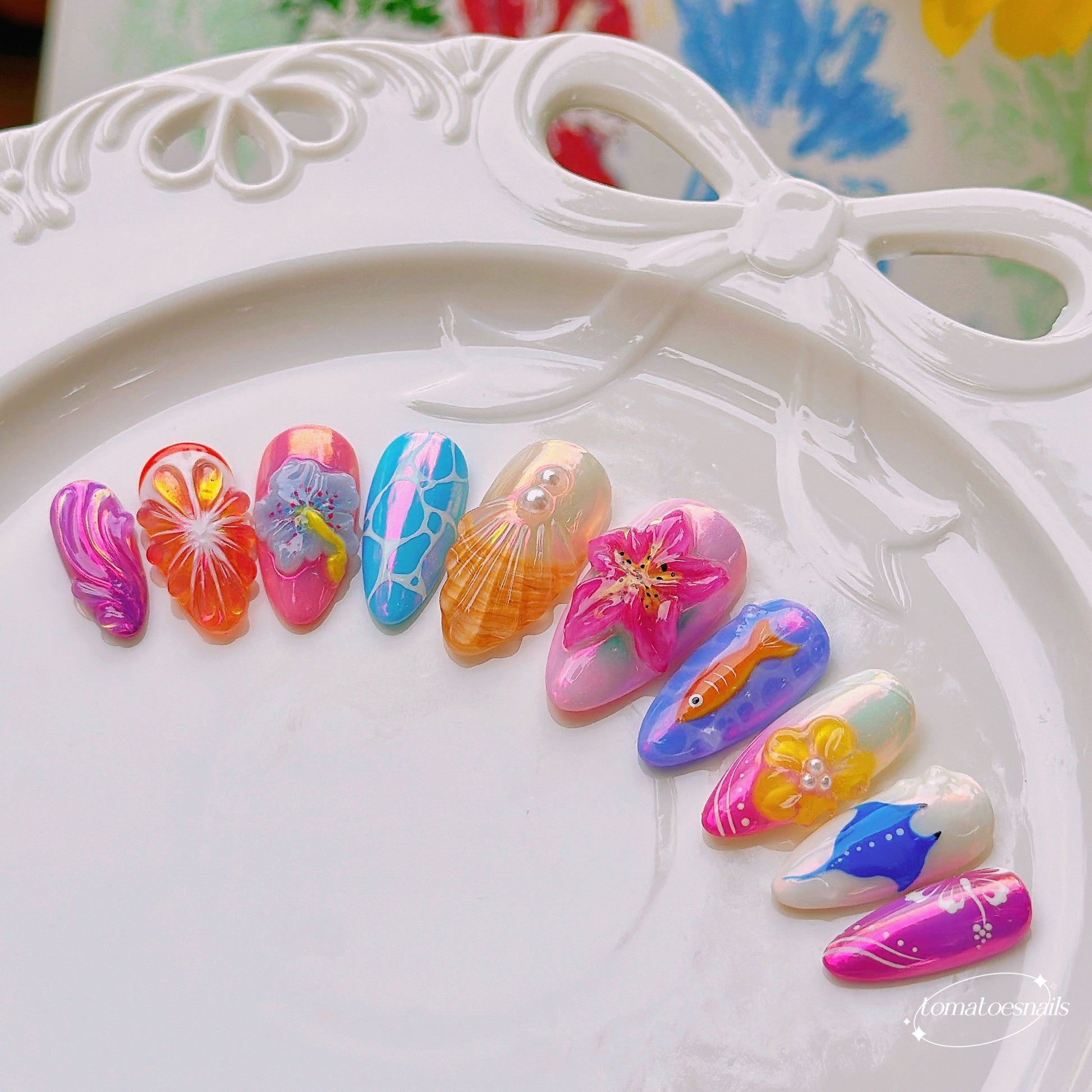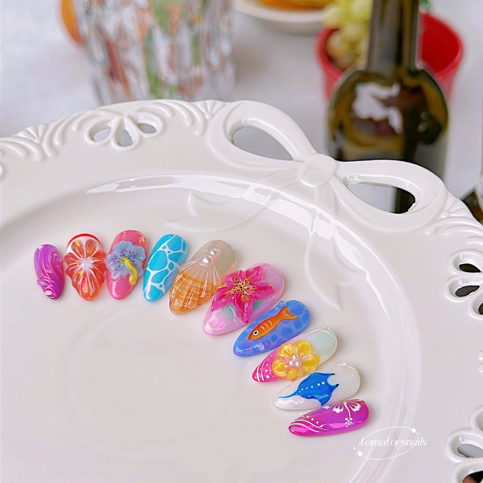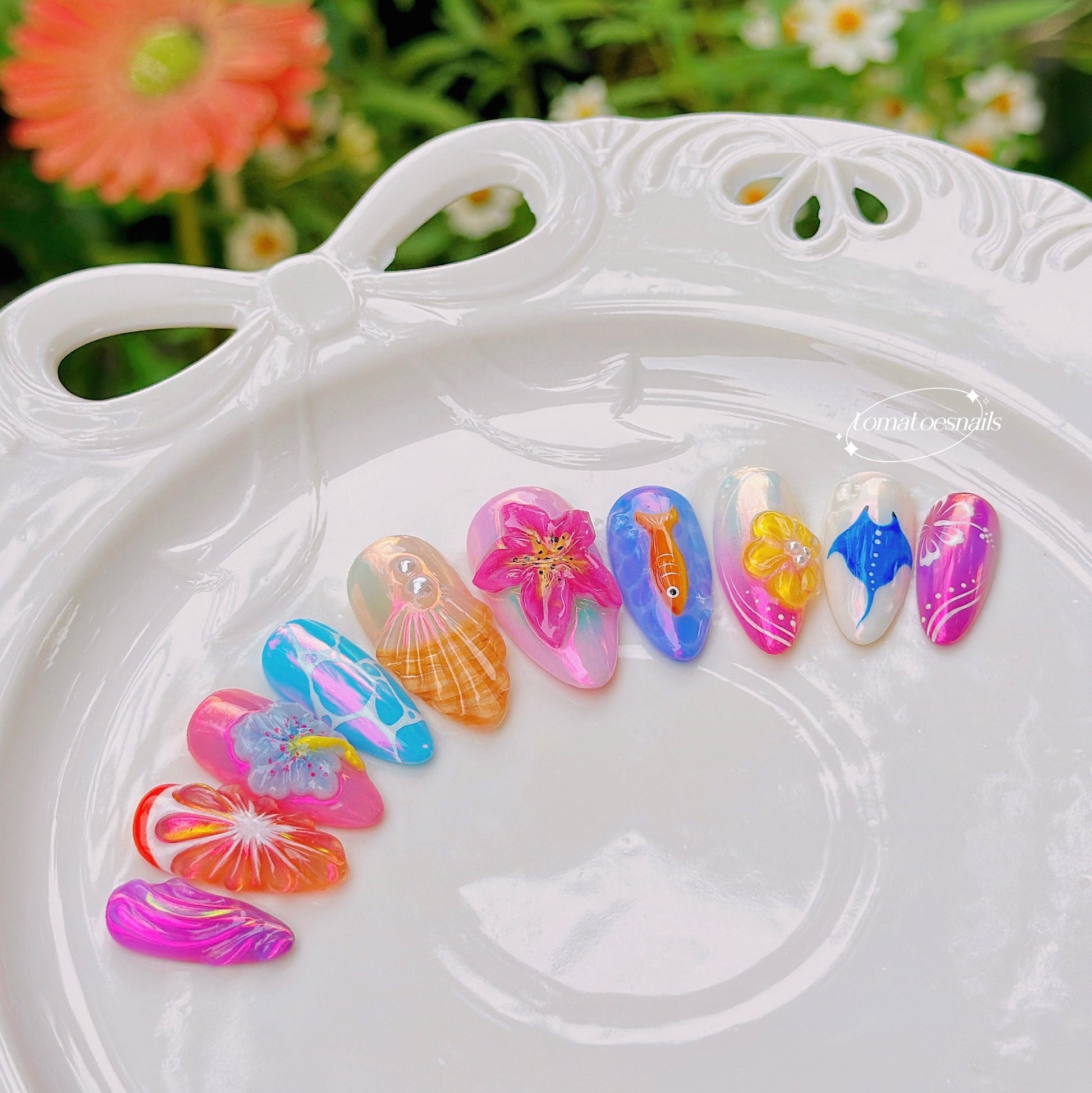 If you order a shorter nail length, some charms will need to be adjusted to make the design look pretty and fit on a smaller nail tip ʕ•́ᴥ•̀ʔっ.