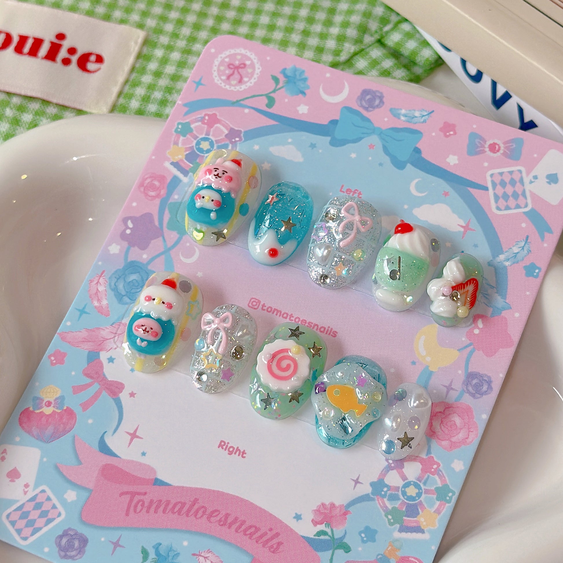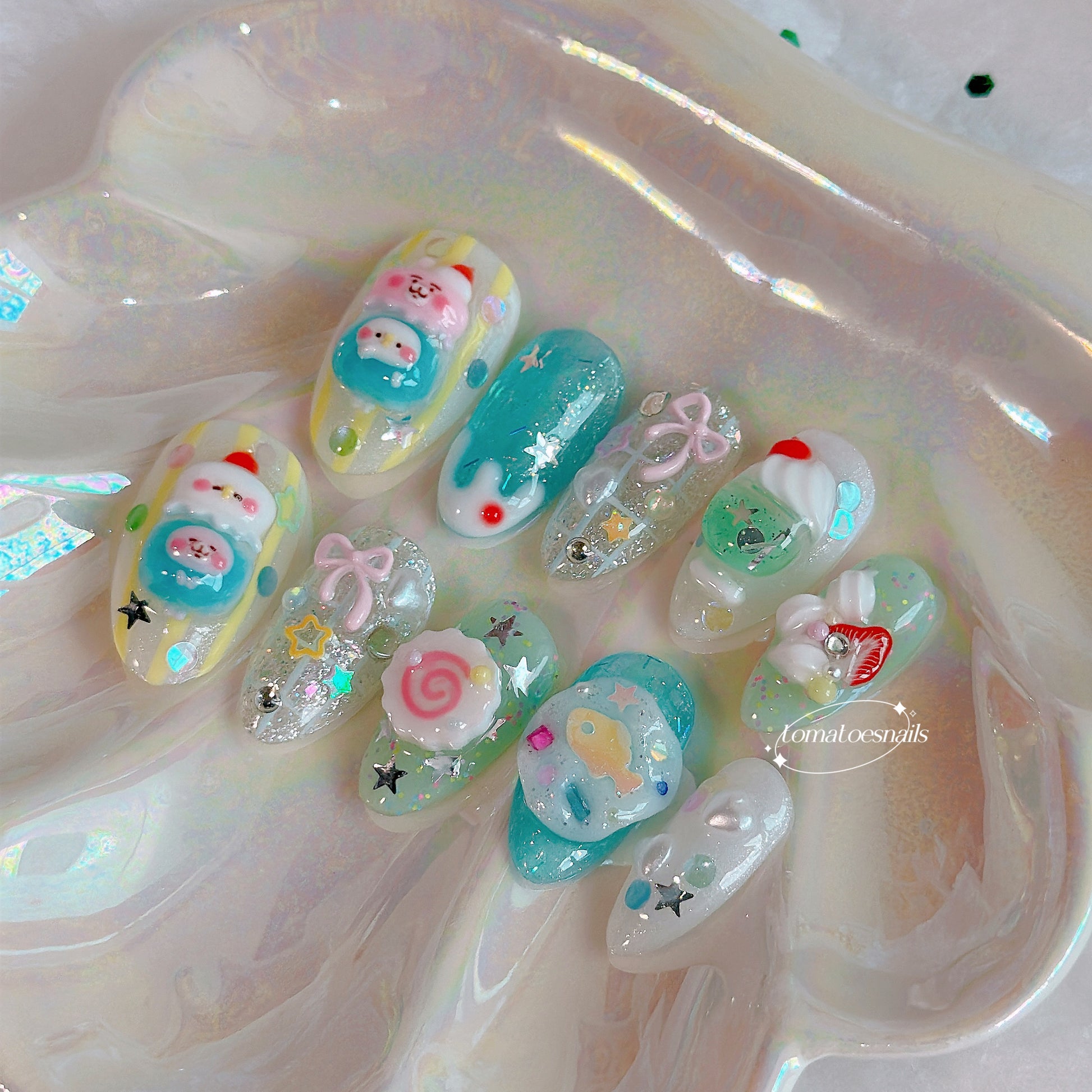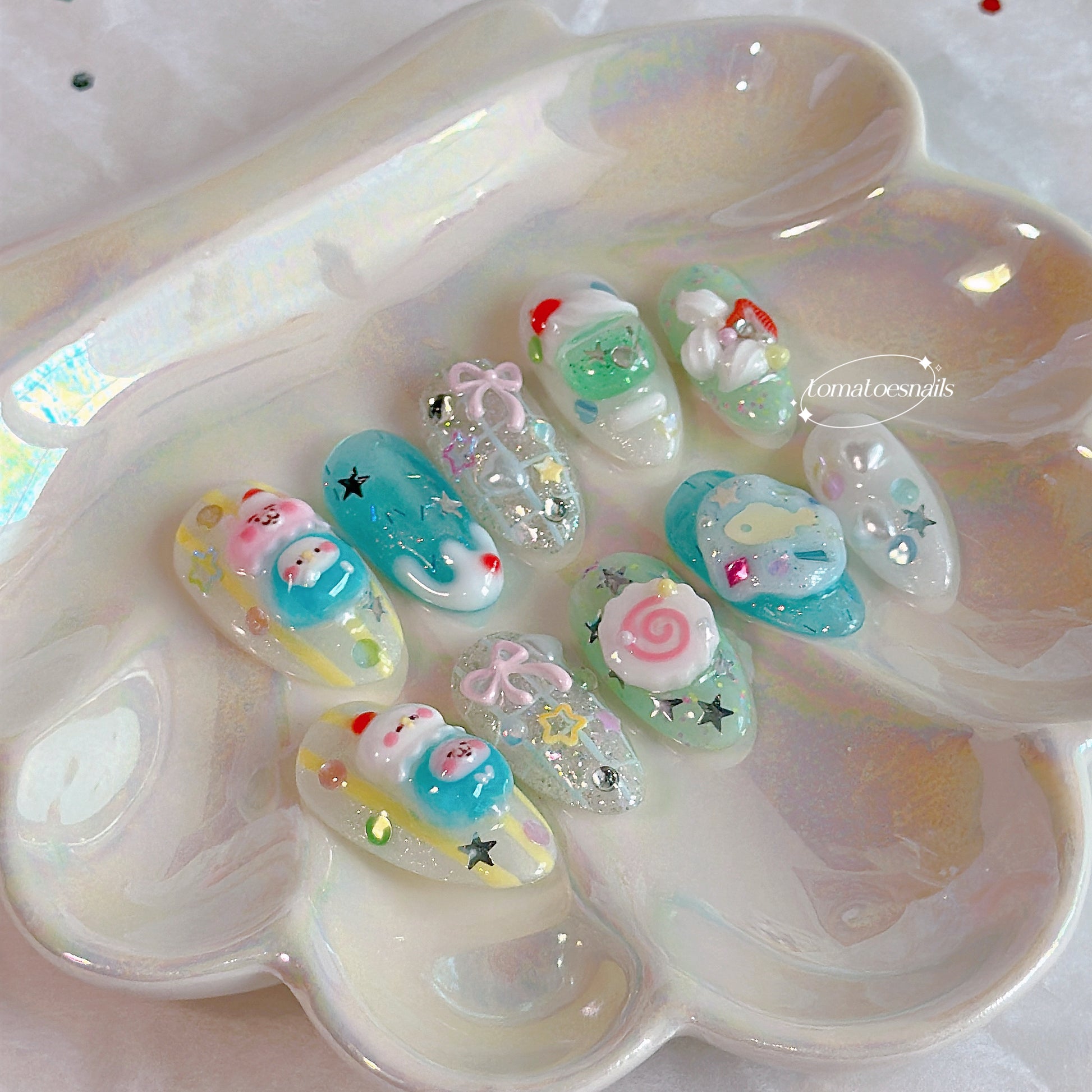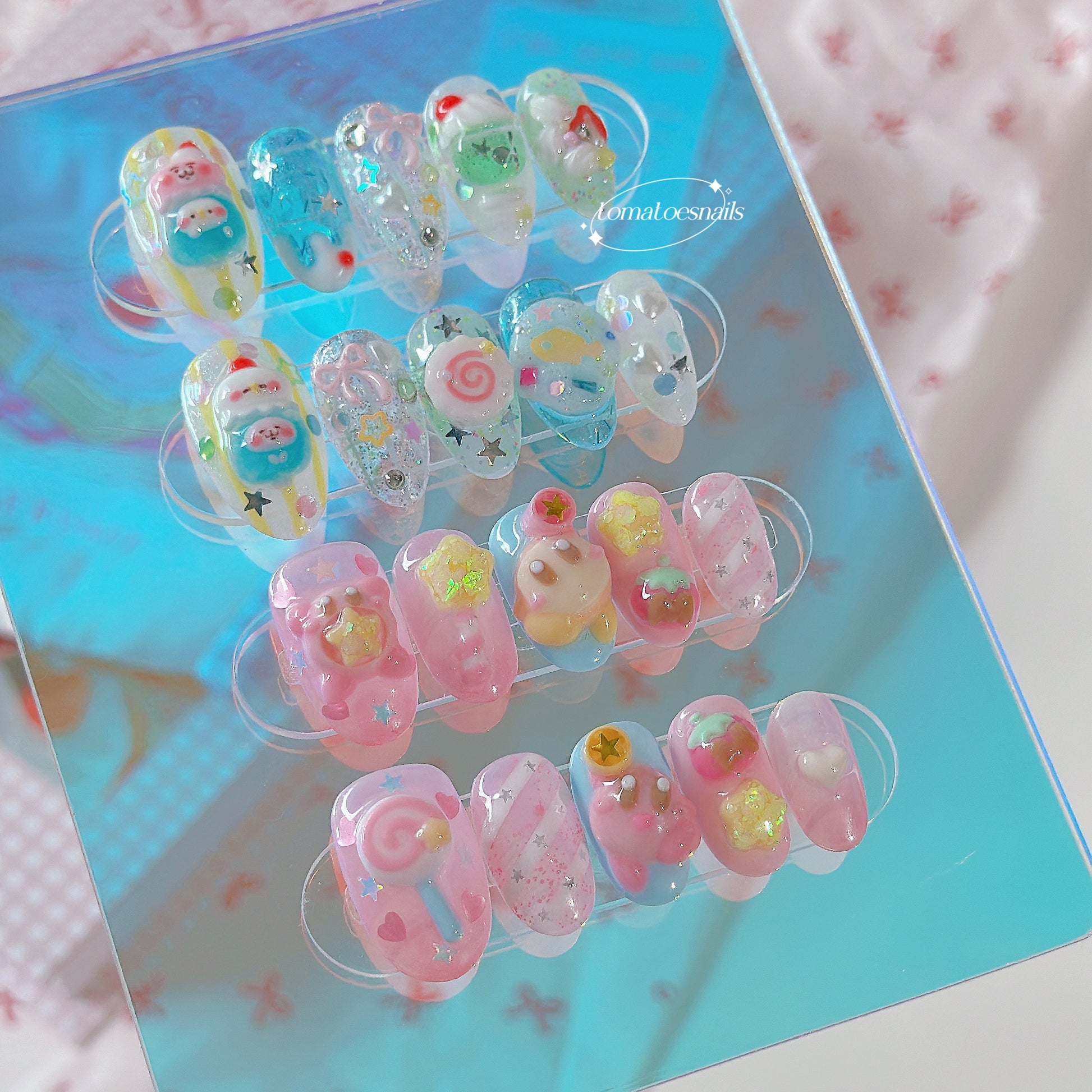 If you order a shorter nail length, some charms will need to be adjusted to make the design look pretty and fit on a smaller nail tip ʕ•́ᴥ•̀ʔっ.