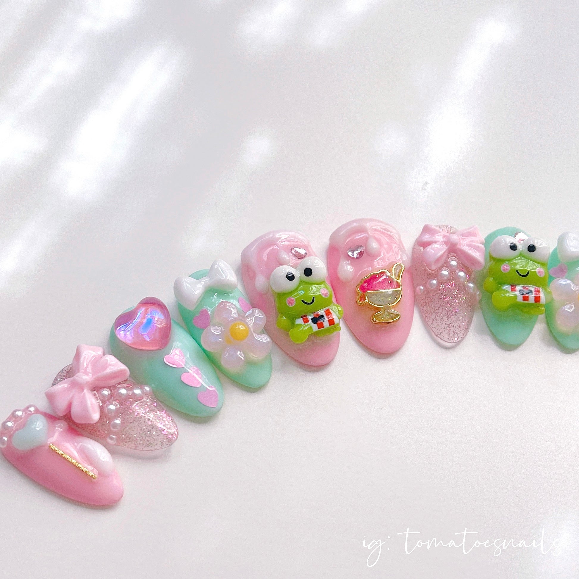 If you order a shorter nail length, some charms will need to be adjusted to make the design look pretty and fit on a smaller nail tip ʕ•́ᴥ•̀ʔっ.