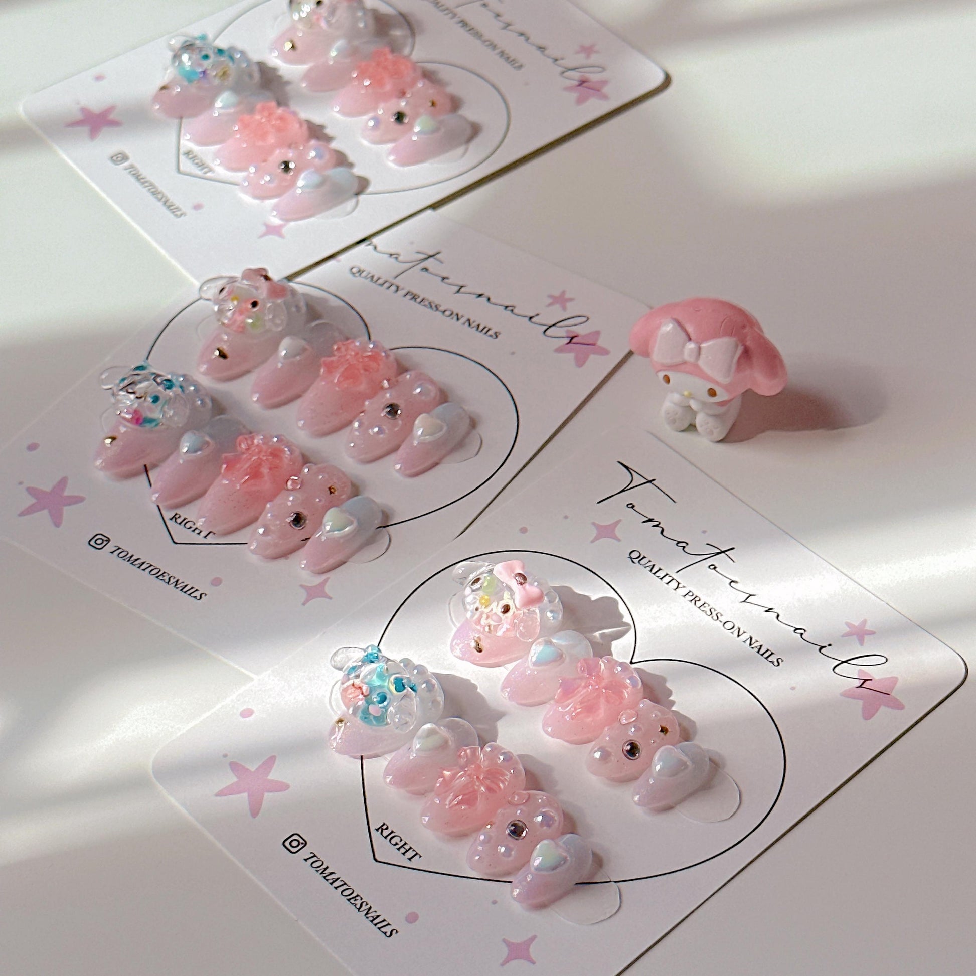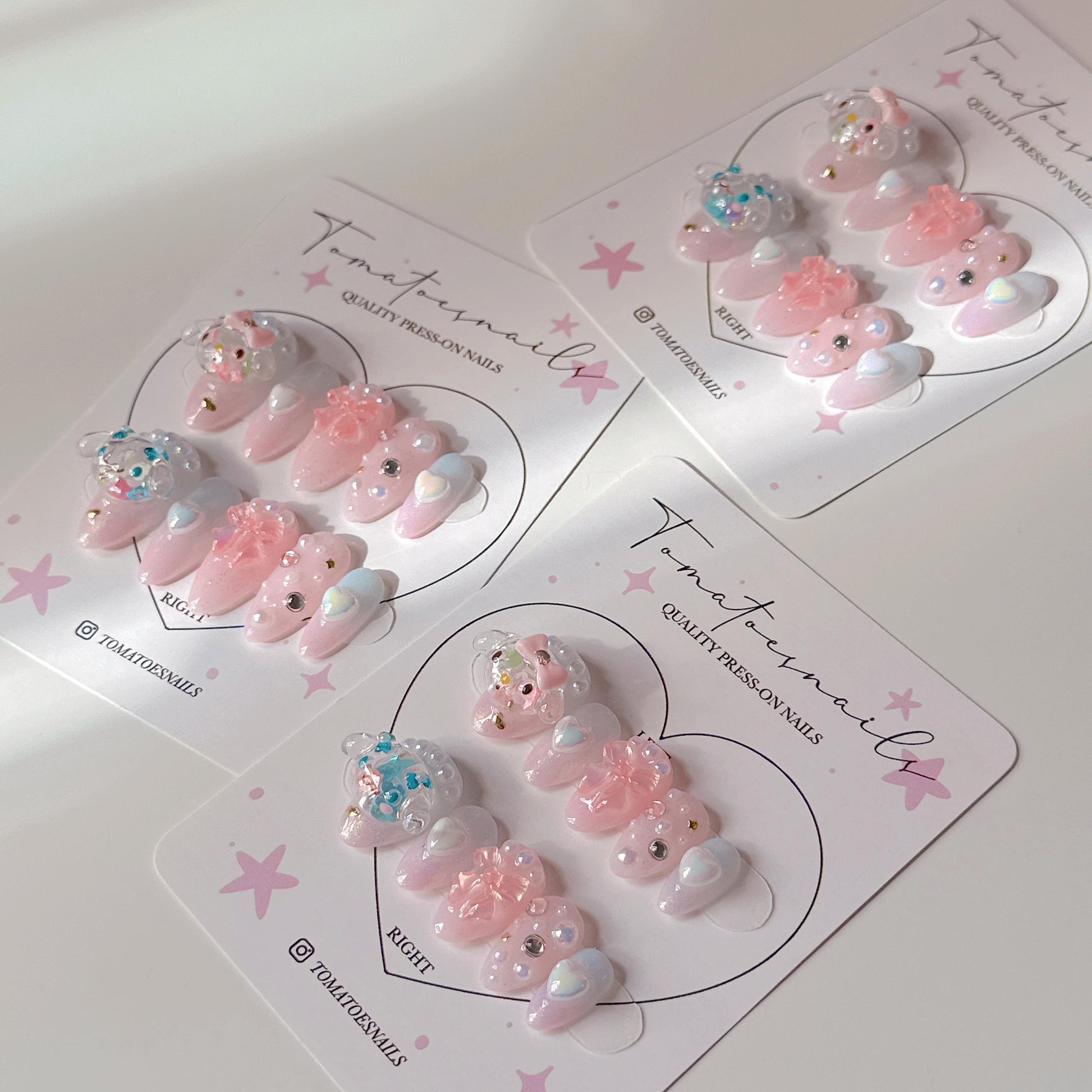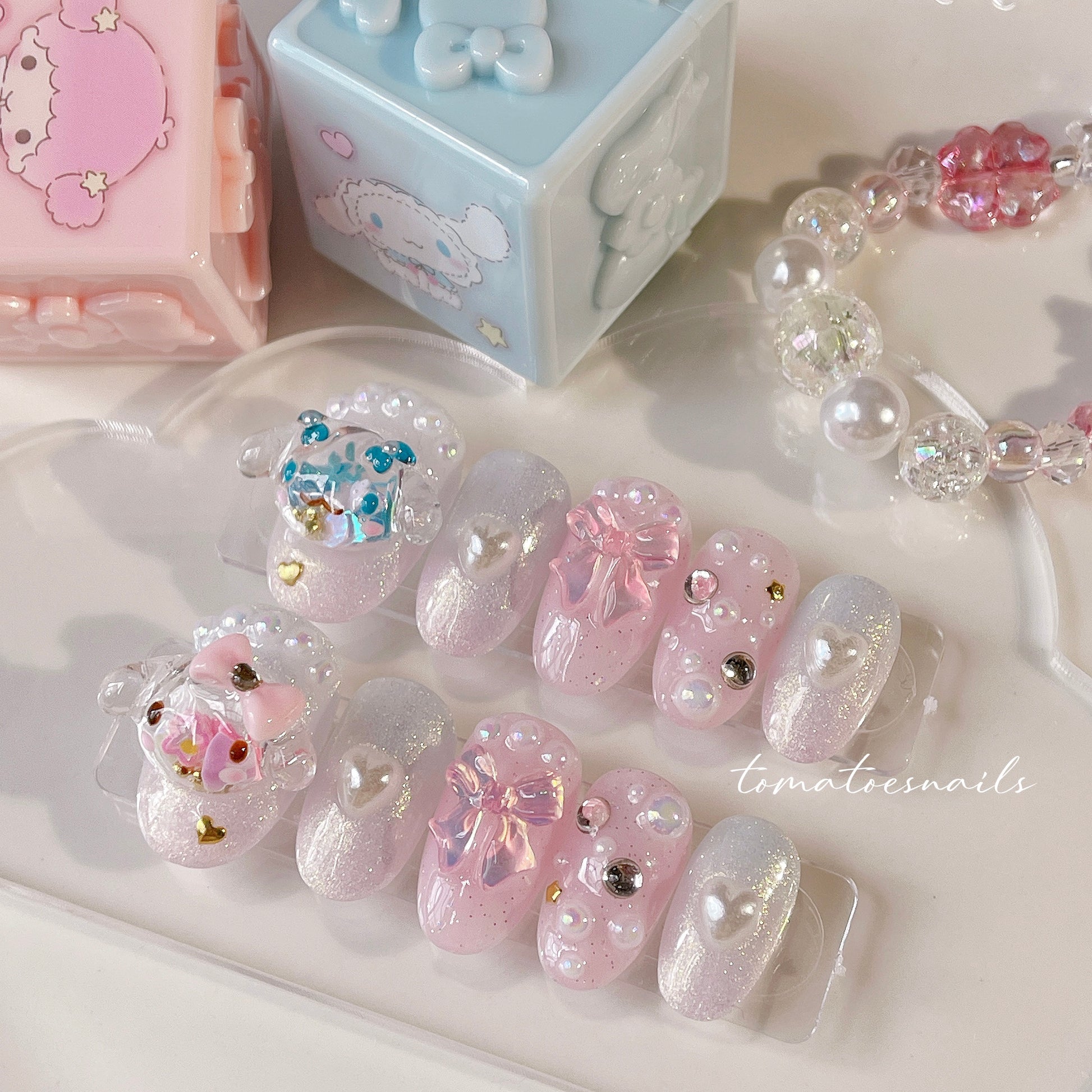If you order a shorter nail length, some charms will need to be adjusted to make the design look pretty and fit on a smaller nail tip ʕ•́ᴥ•̀ʔっ.