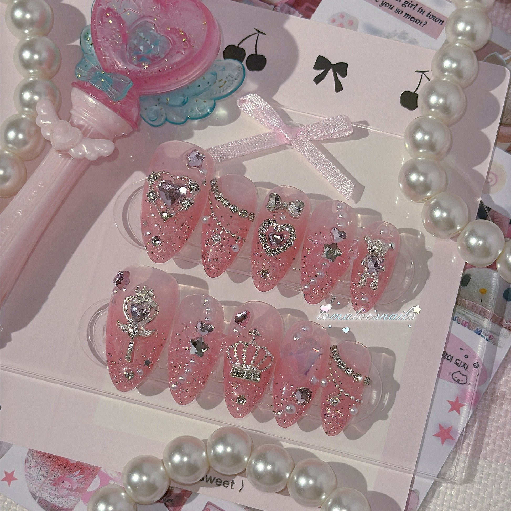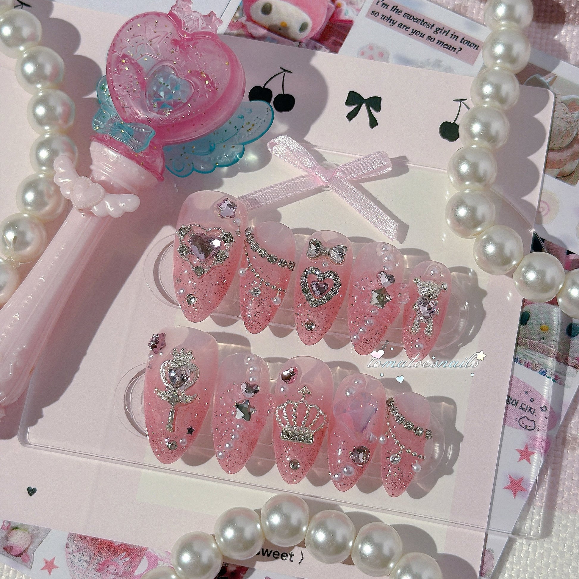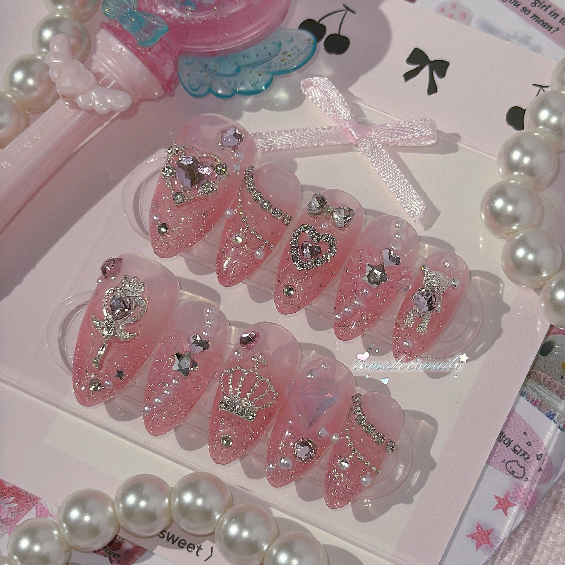 If you order a shorter nail length, some charms will need to be adjusted to make the design look pretty and fit on a smaller nail tip ʕ•́ᴥ•̀ʔっ.