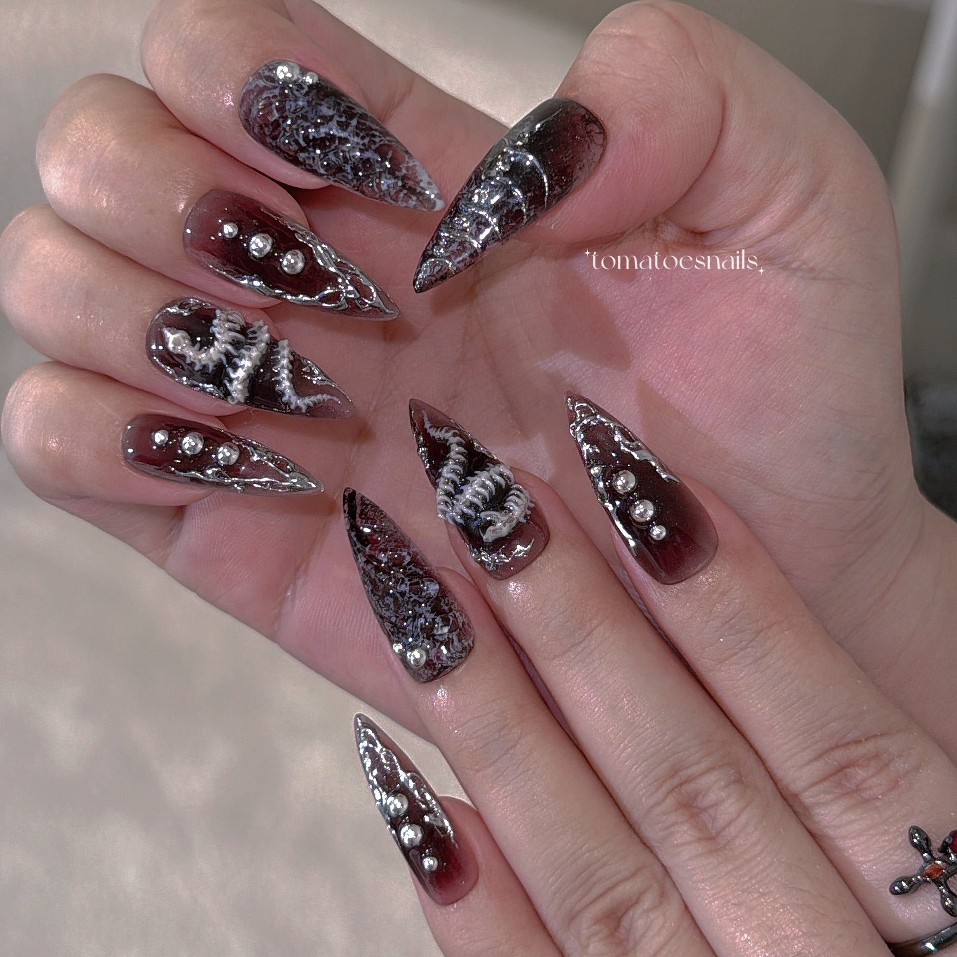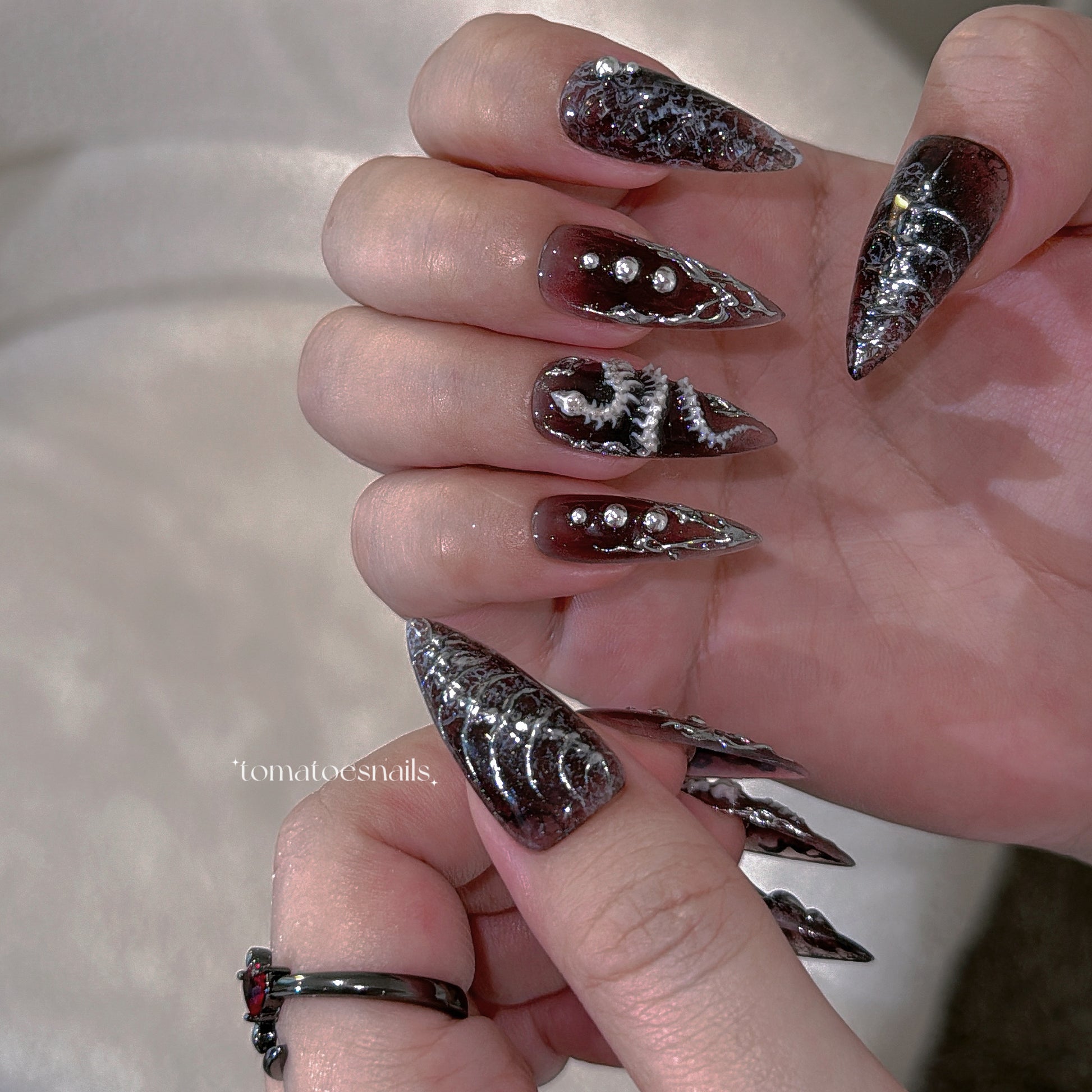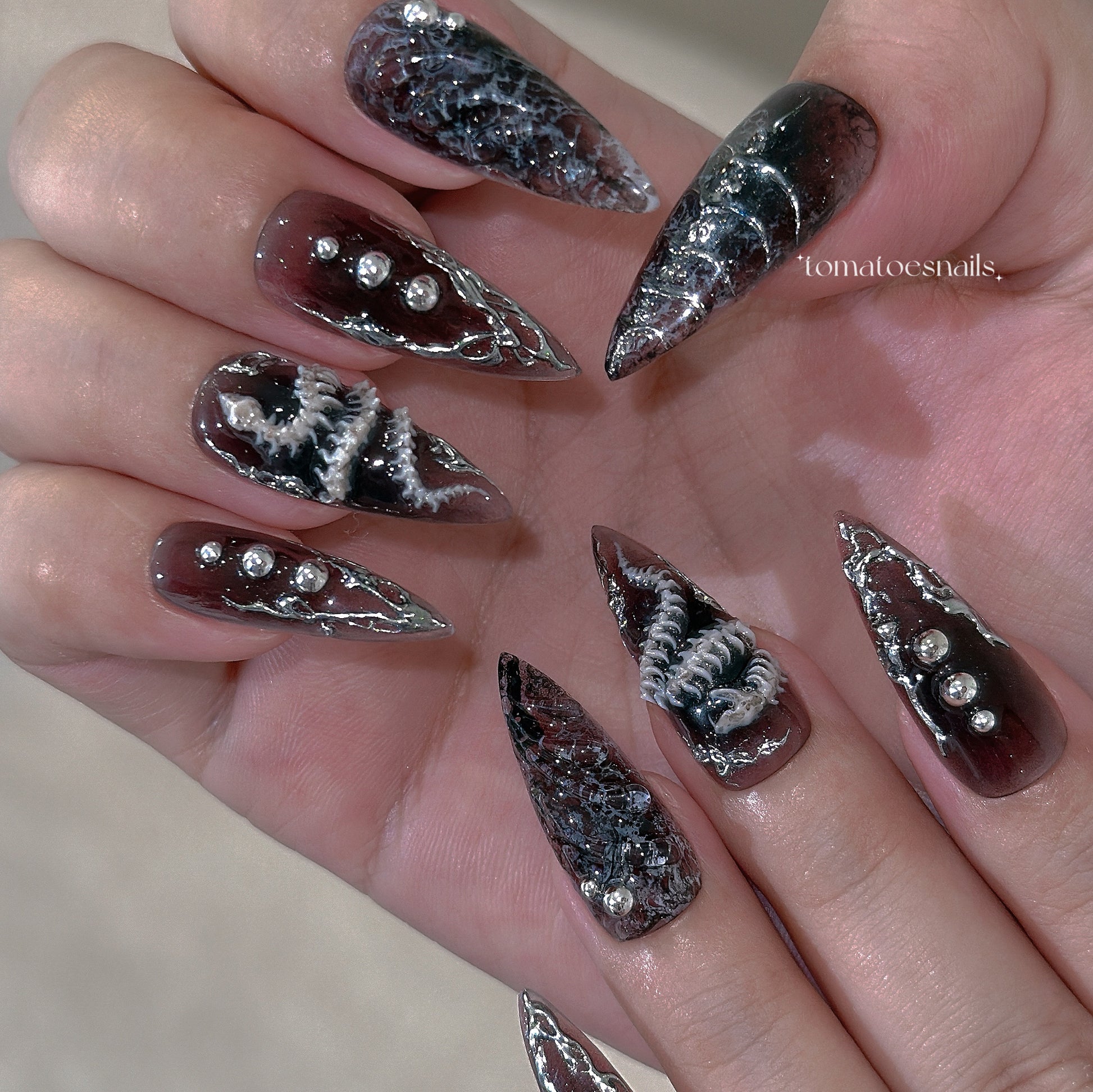 ☆ CUSTOM SIZE: Please leave a note of your own measurements if you don't have my sizing kit in millimeters; for example: Left & Right = thumb 15/index 11/mid 12/ring 11/pinky 8 mm. OR nail size numbers according to the standard chart (e.g., 1/5/4/5/8)
