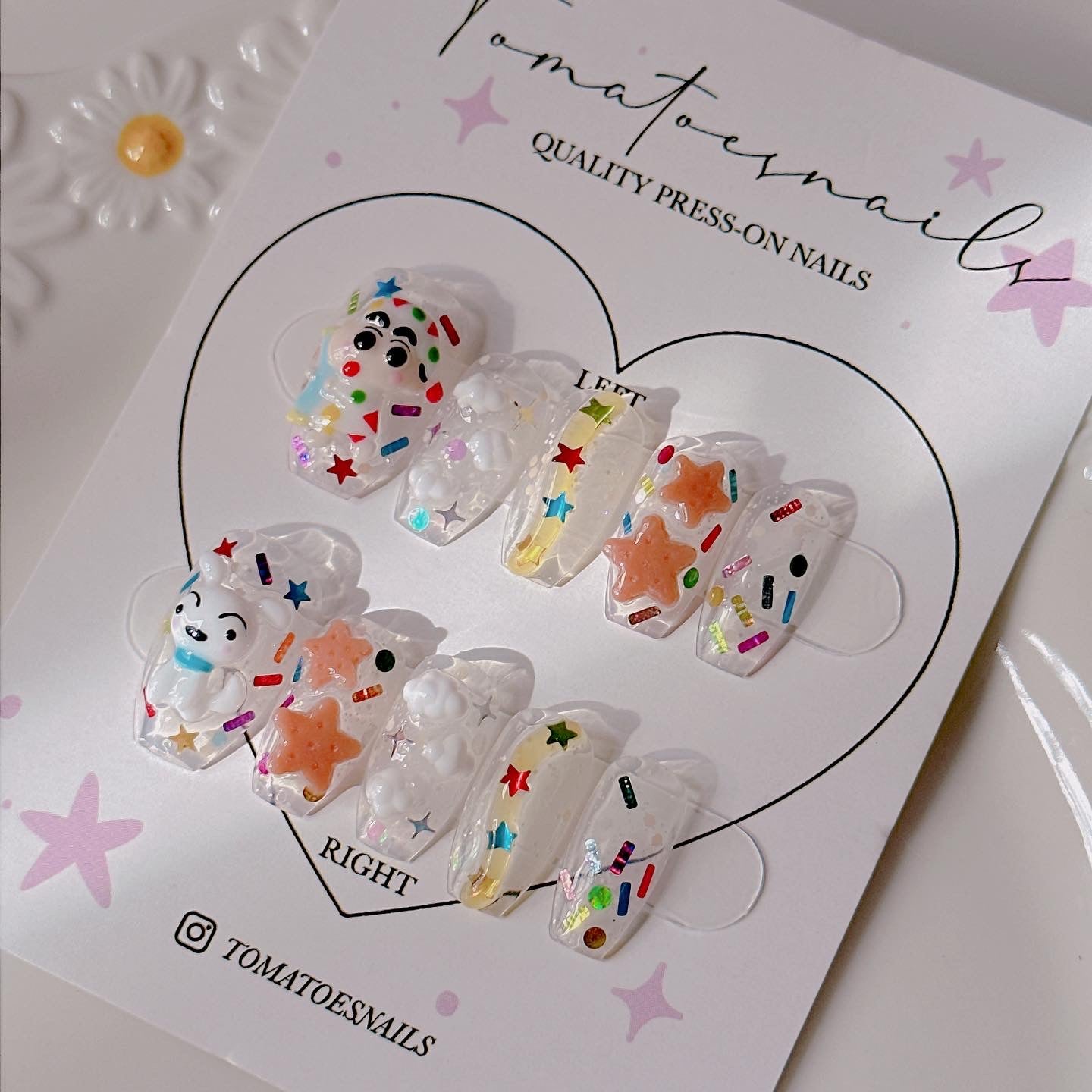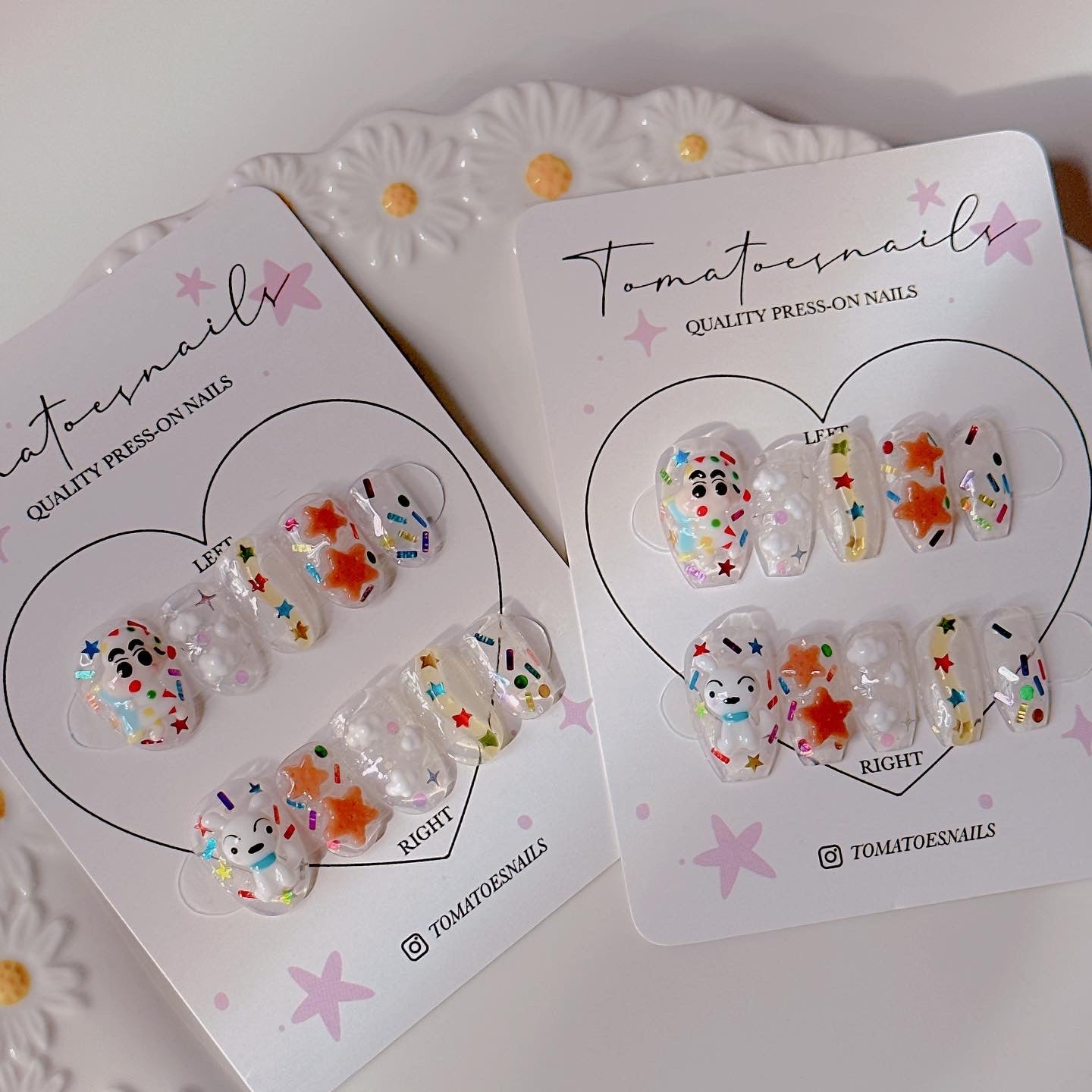 If you order a shorter nail length, some charms will need to be adjusted to make the design look pretty and fit on a smaller nail tip ʕ•́ᴥ•̀ʔっ.