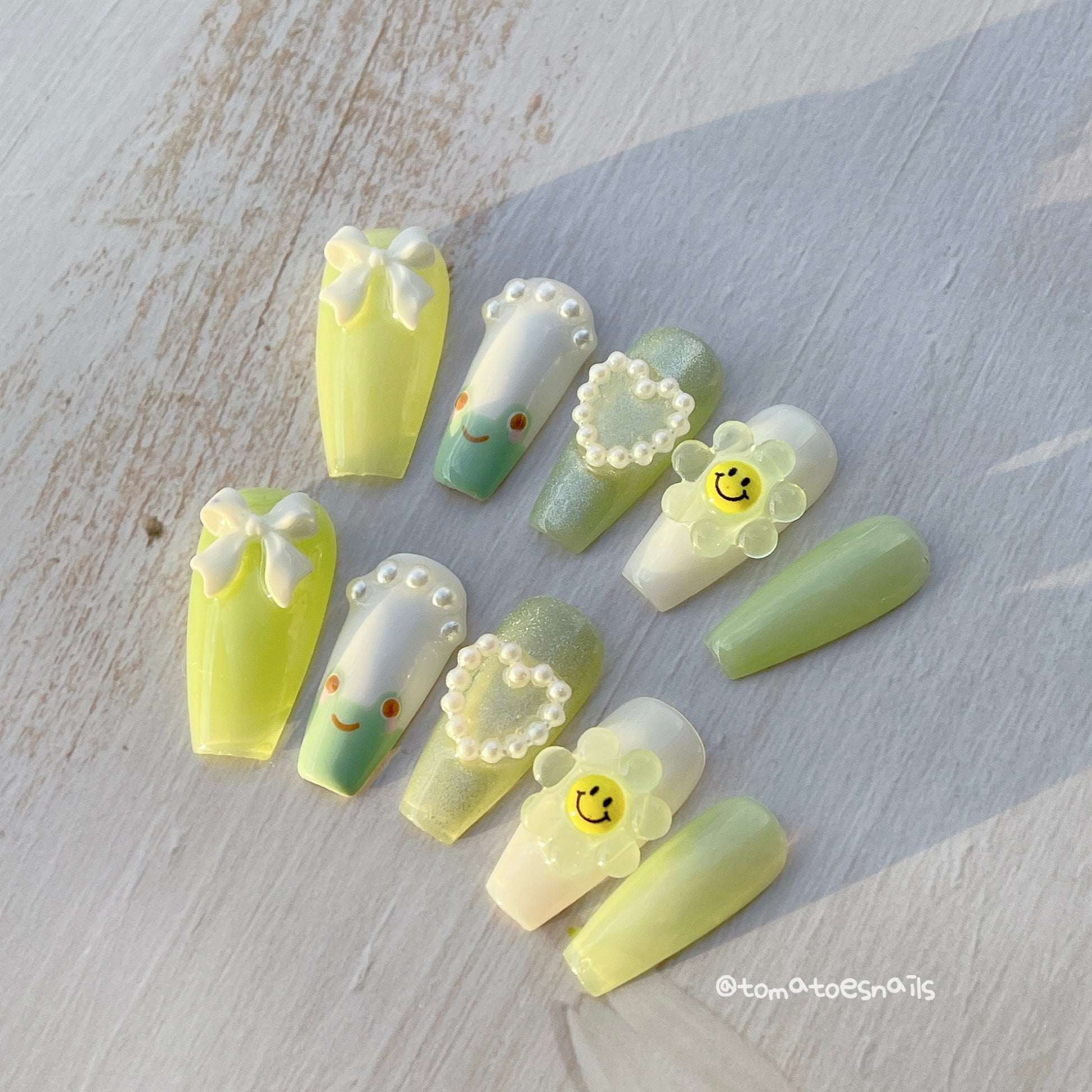 If you order a shorter nail length, some charms will need to be adjusted to make the design look pretty and fit on a smaller nail tip ʕ•́ᴥ•̀ʔっ.