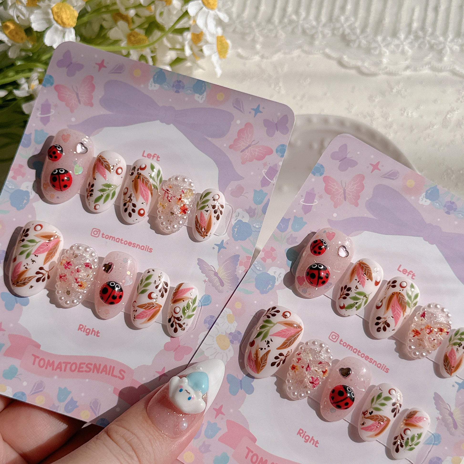 ☆ CUSTOM SIZE: Please leave a note of your own measurements if you don't have my sizing kit in millimeters; for example: Left & Right = thumb 15/index 11/mid 12/ring 11/pinky 8 mm. OR nail size numbers according to the standard chart (e.g., 1/5/4/5/8)