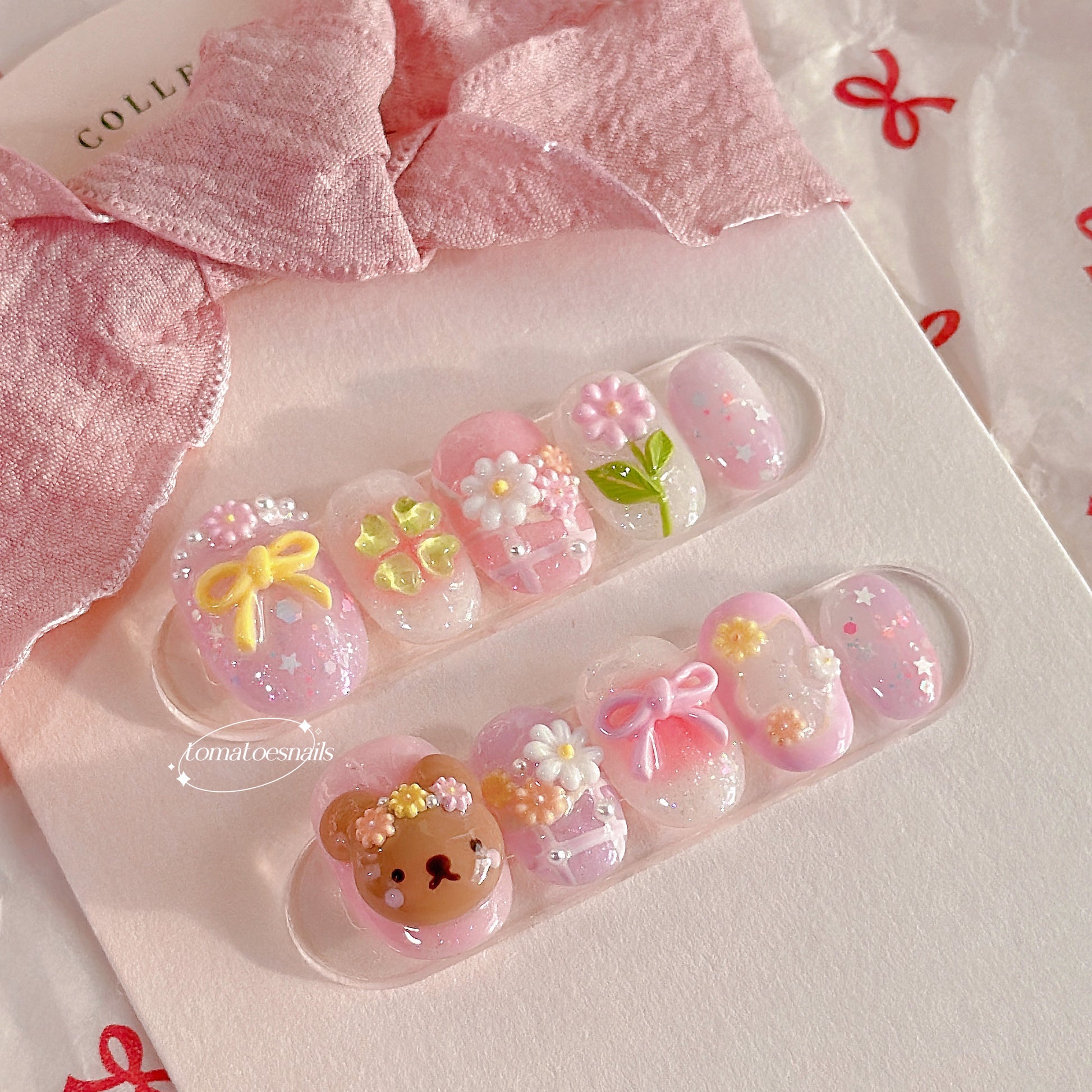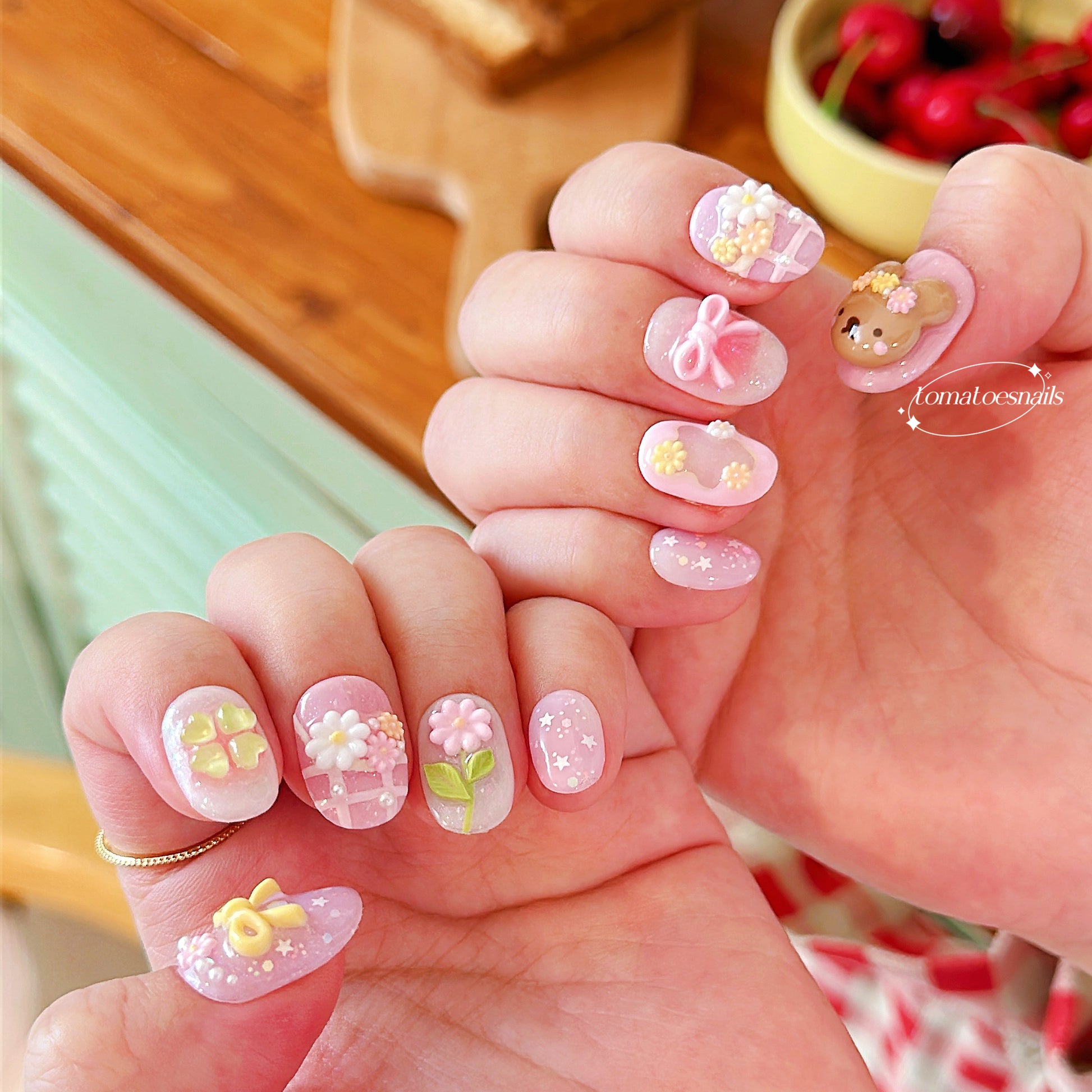 If you order a shorter nail length, some charms will need to be adjusted to make the design look pretty and fit on a smaller nail tip ʕ•́ᴥ•̀ʔっ.