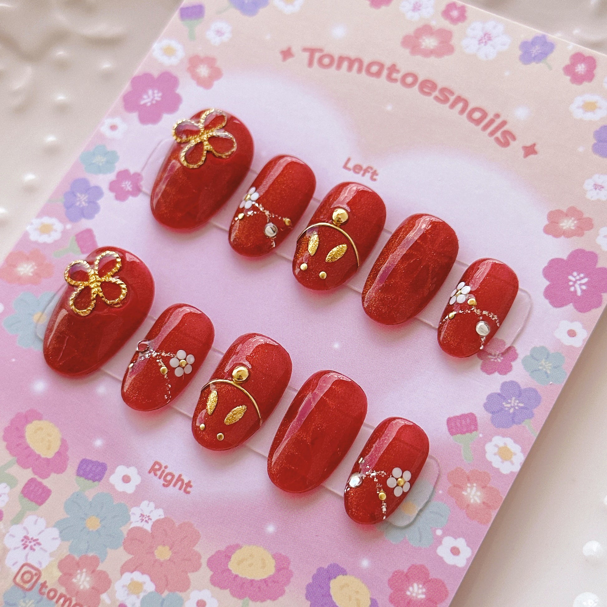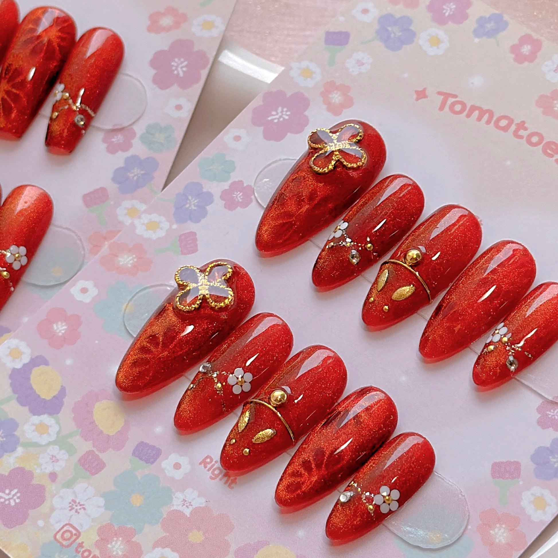 ☆ CUSTOM SIZE: Please leave a note of your own measurements if you don't have my sizing kit in millimeters; for example: Left & Right = thumb 15/index 11/mid 12/ring 11/pinky 8 mm. OR nail size numbers according to the standard chart (e.g., 1/5/4/5/8)