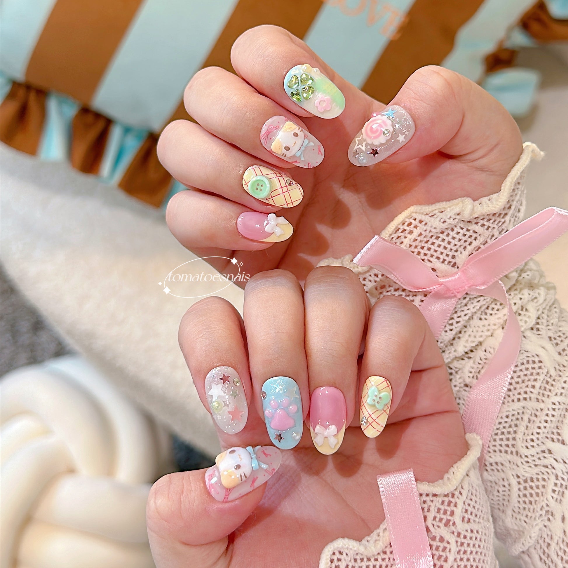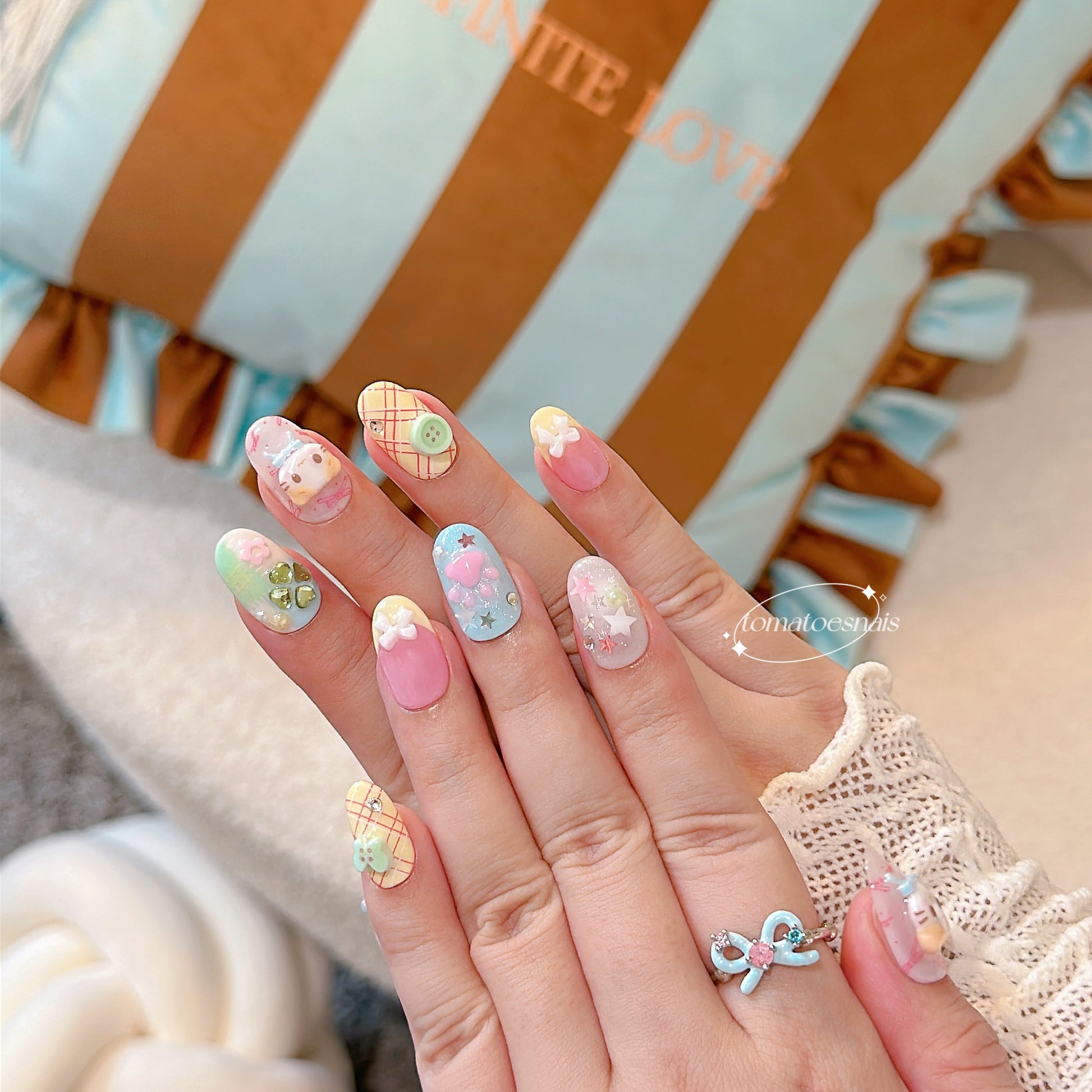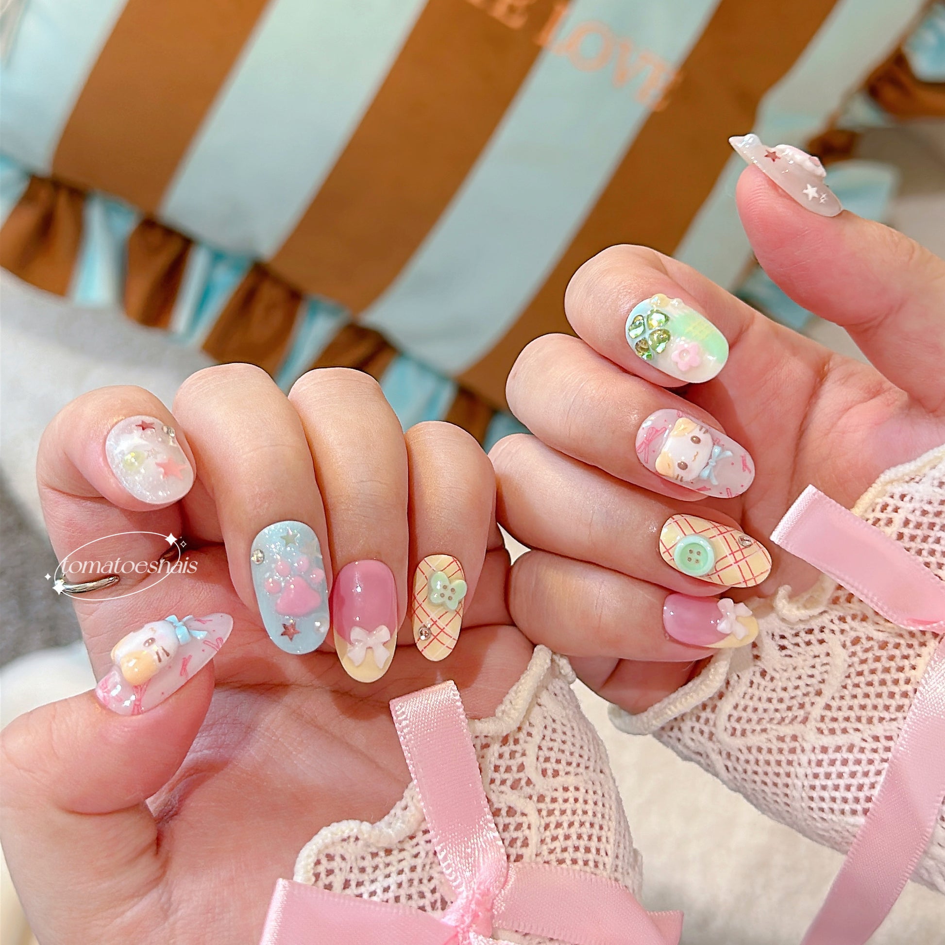 If you order a shorter nail length, some charms will need to be adjusted to make the design look pretty and fit on a smaller nail tip ʕ•́ᴥ•̀ʔっ.