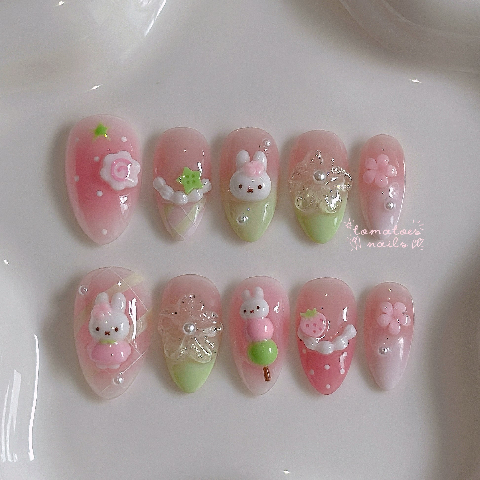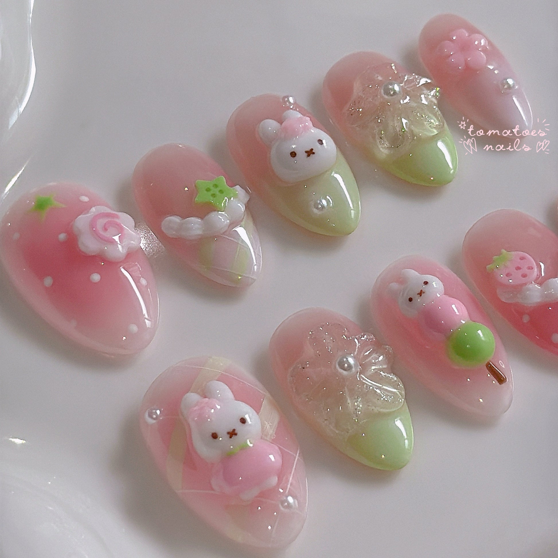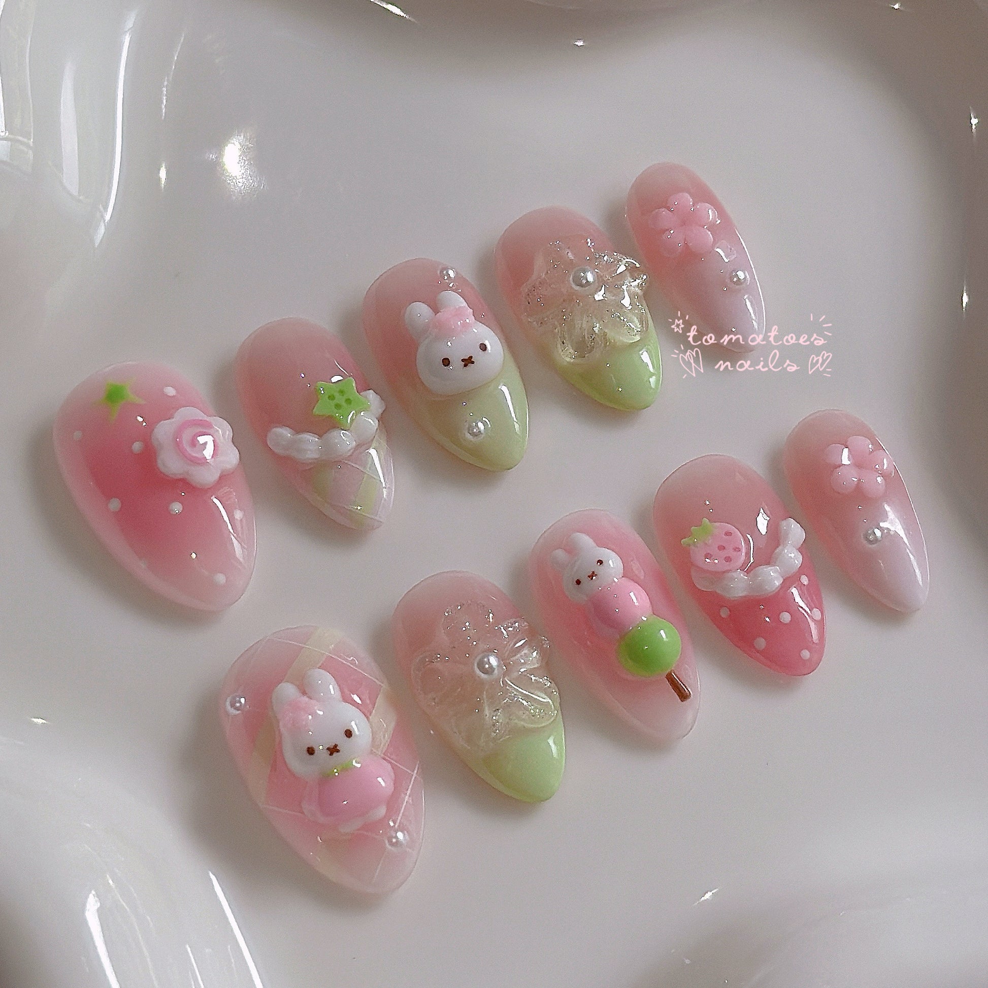 If you order a shorter nail length, some charms will need to be adjusted to make the design look pretty and fit on a smaller nail tip ʕ•́ᴥ•̀ʔっ.