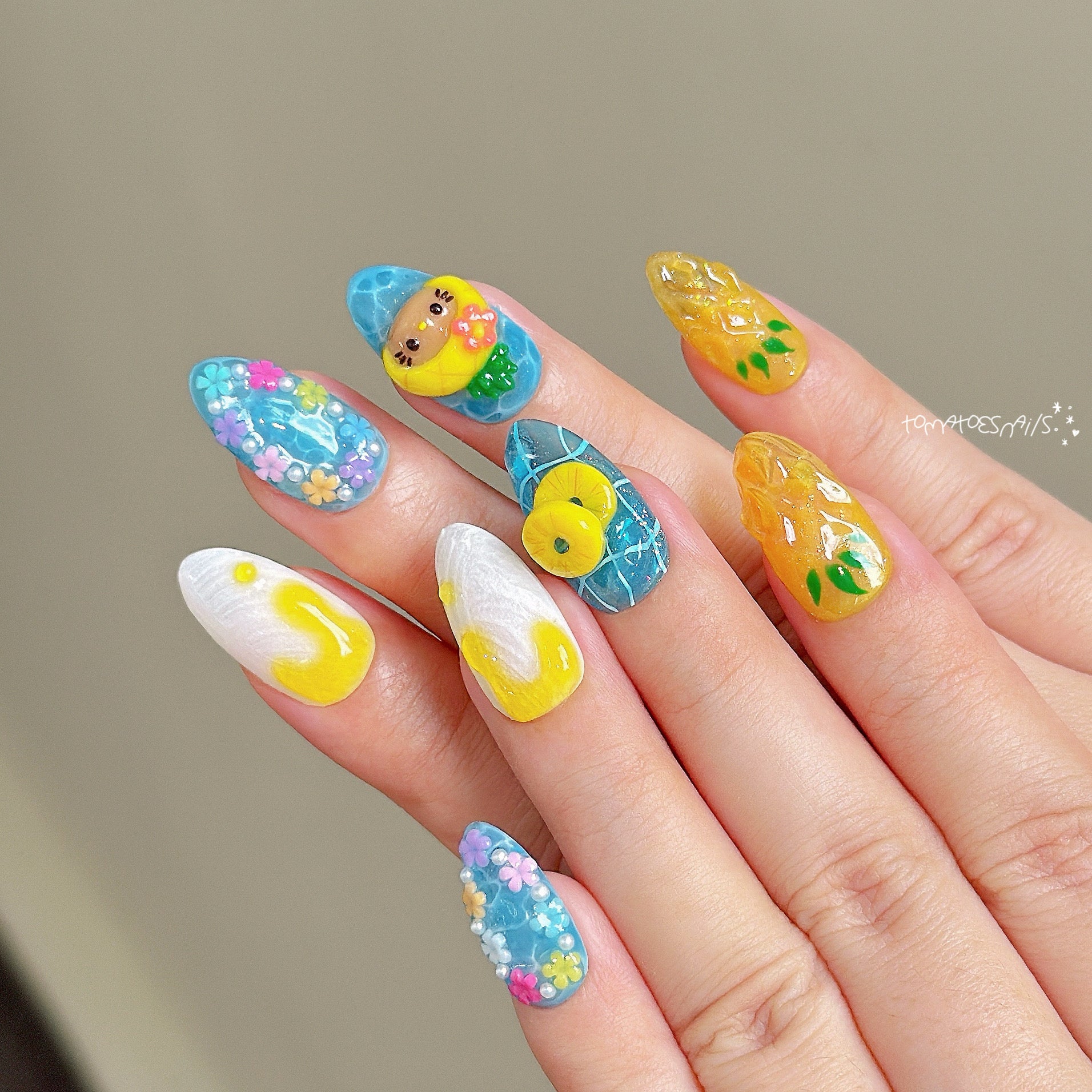 If you order a shorter nail length, some charms will need to be adjusted to make the design look pretty and fit on a smaller nail tip ʕ•́ᴥ•̀ʔっ.