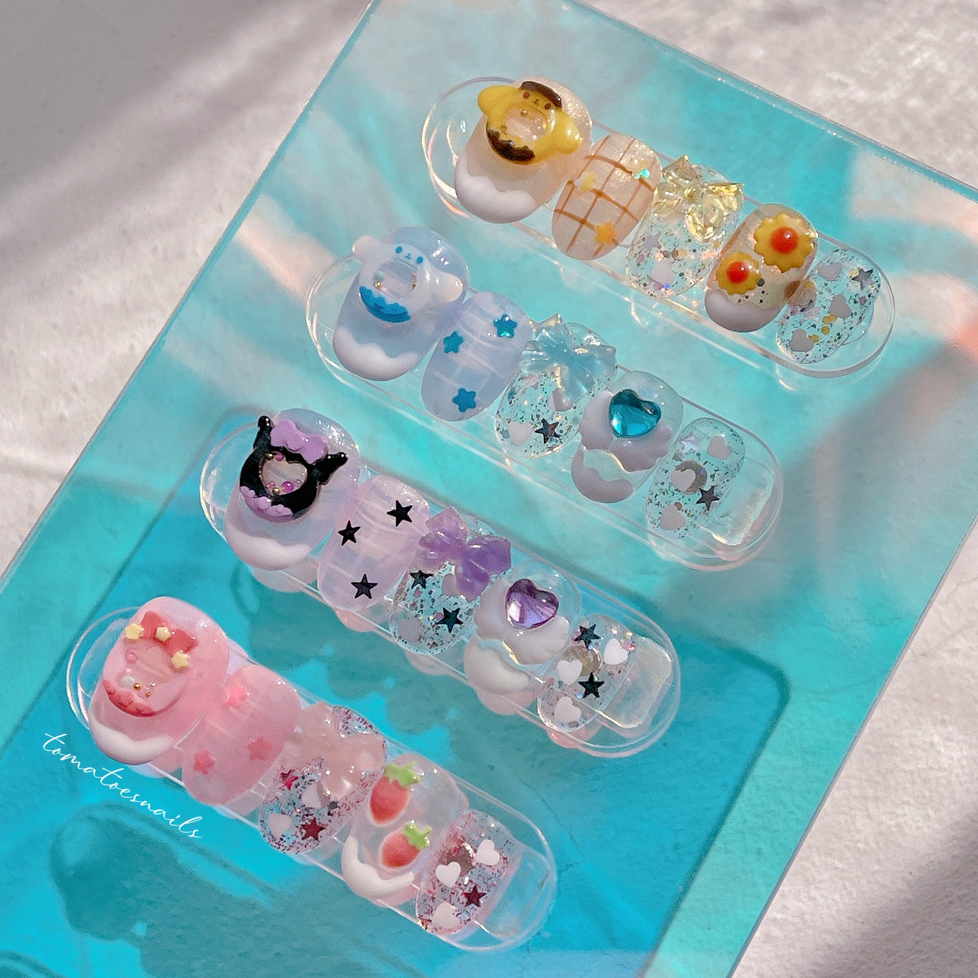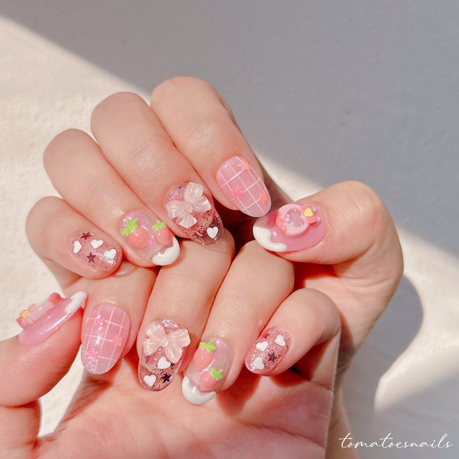 If you order a shorter nail length, some charms will need to be adjusted to make the design look pretty and fit on a smaller nail tip ʕ•́ᴥ•̀ʔっ.