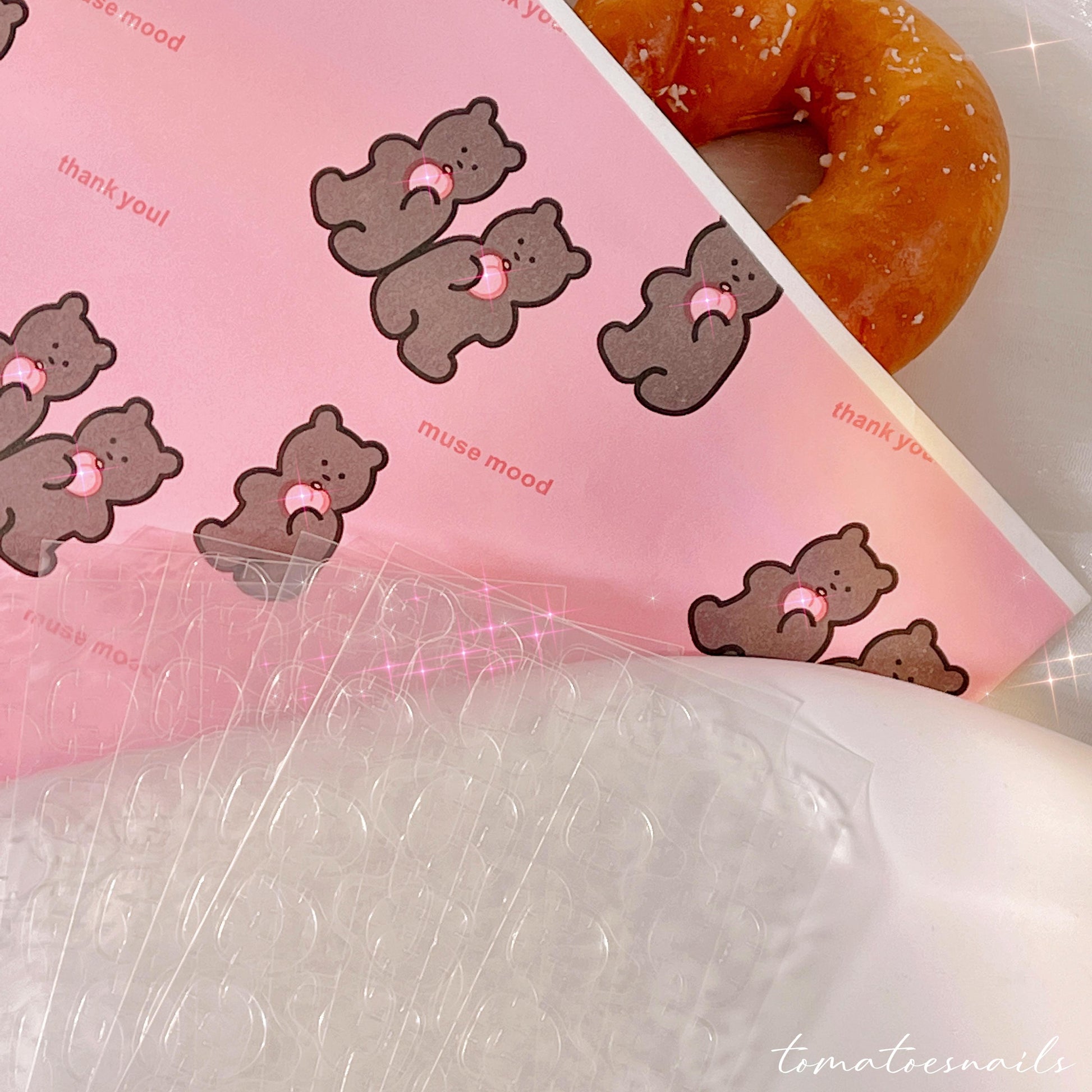 Simply just match the size of the sticker to your press-on, peel sticker out and place it near the cuticle line of the press-on then just press it on your natural nails, hold for 5 seconds and you are good to go!♡