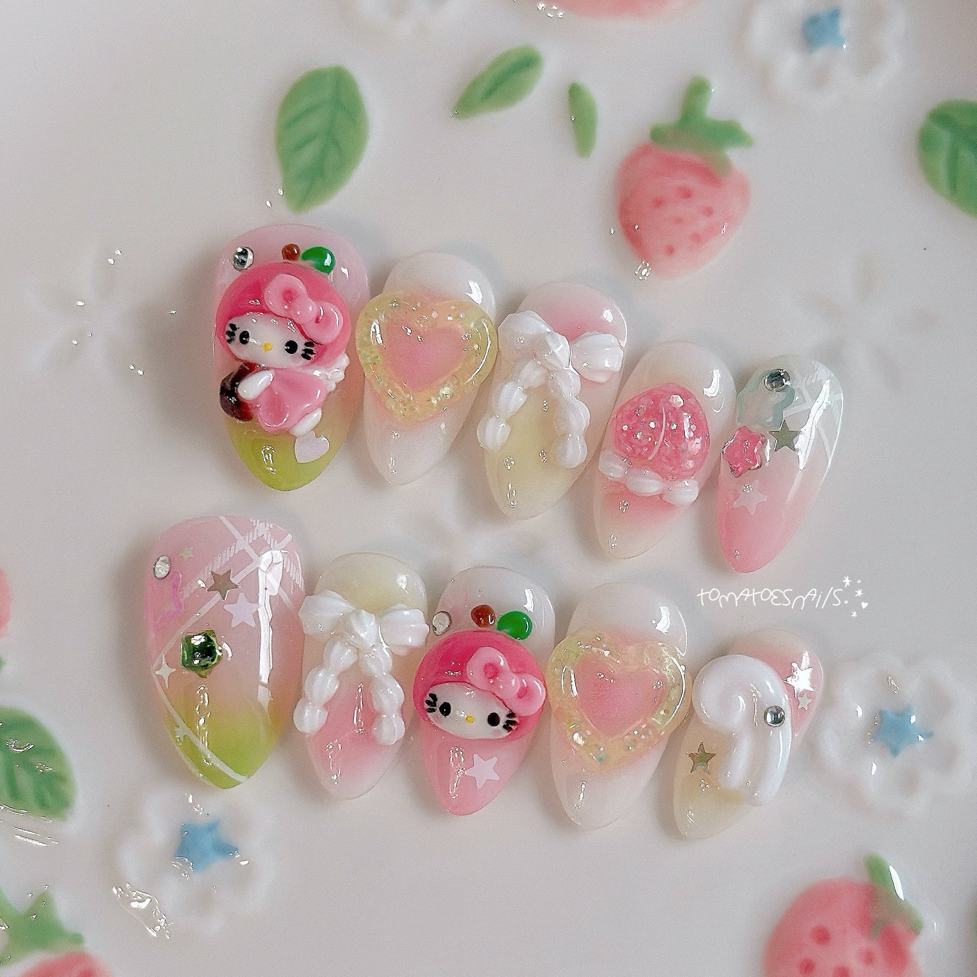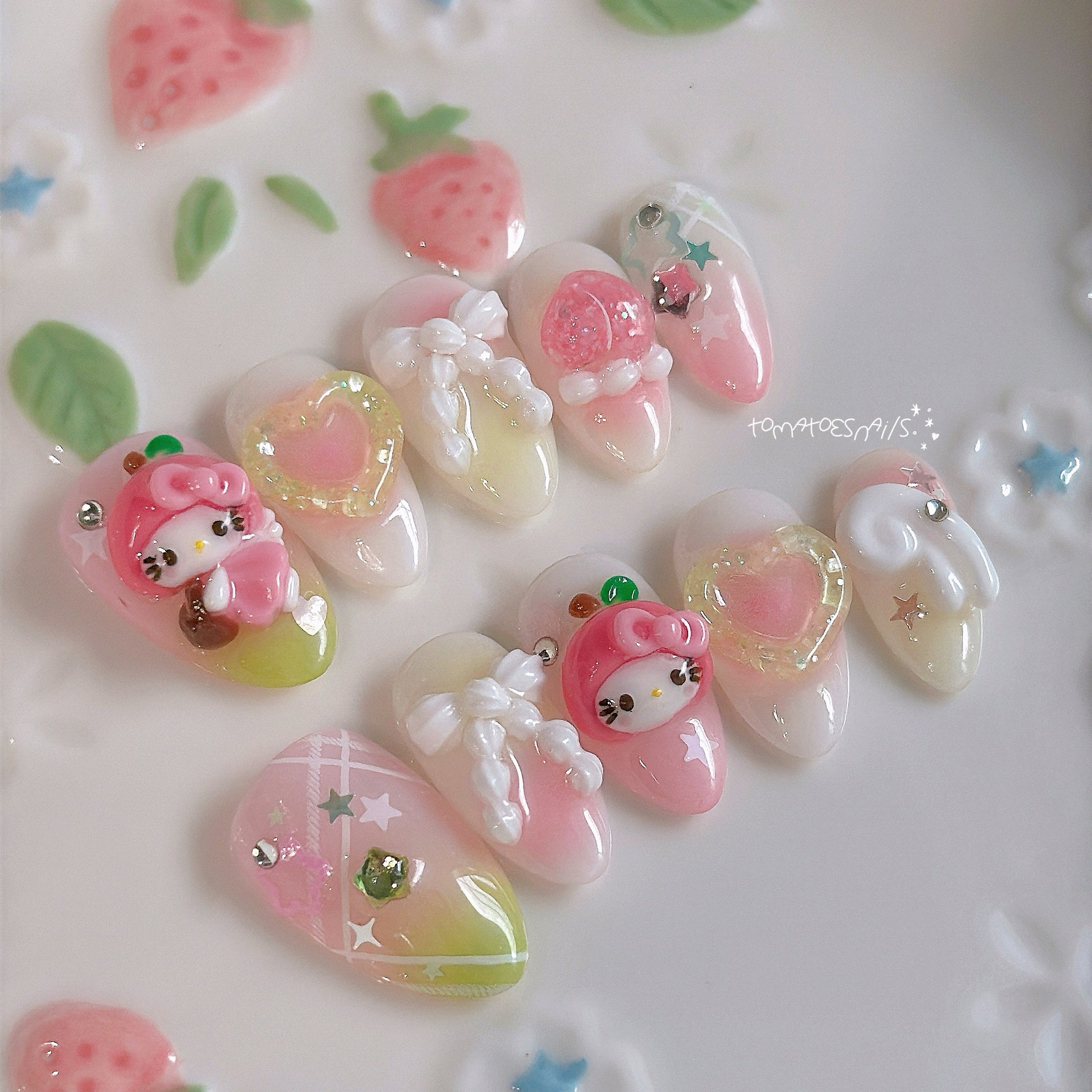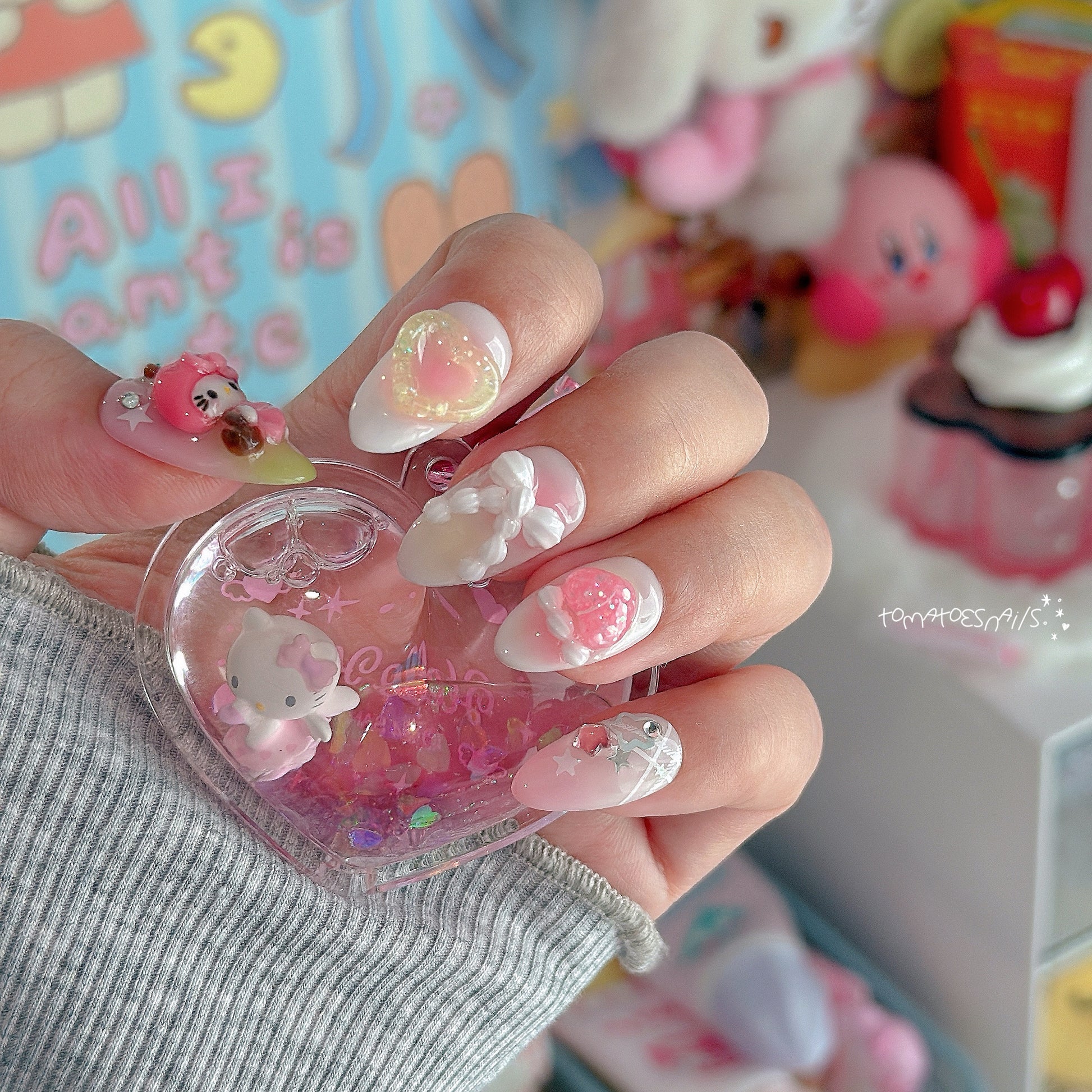 If you order a shorter nail length, some charms will need to be adjusted to make the design look pretty and fit on a smaller nail tip ʕ•́ᴥ•̀ʔっ.