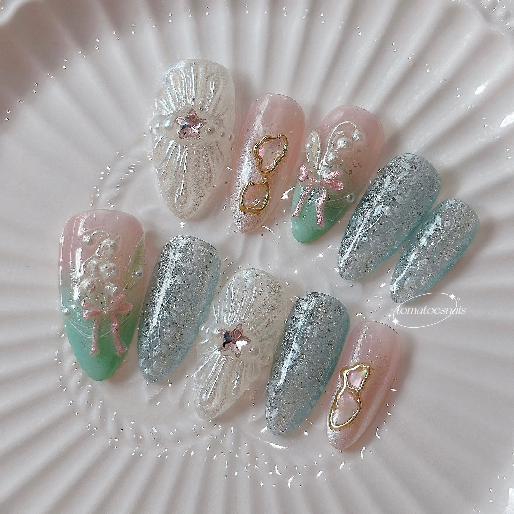 If you order a shorter nail length, some charms will need to be adjusted to make the design look pretty and fit on a smaller nail tip ʕ•́ᴥ•̀ʔっ.