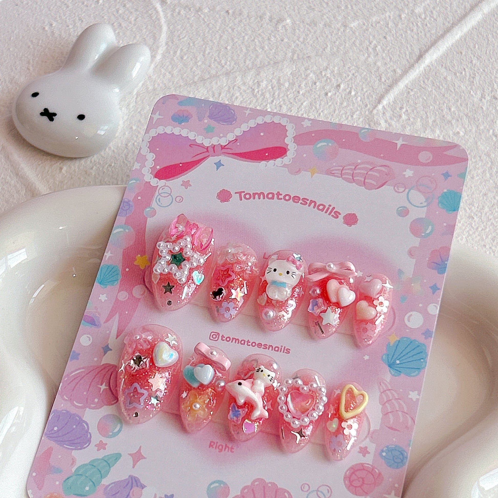 If you order a shorter nail length, some charms will need to be adjusted to make the design look pretty and fit on a smaller nail tip ʕ•́ᴥ•̀ʔっ.